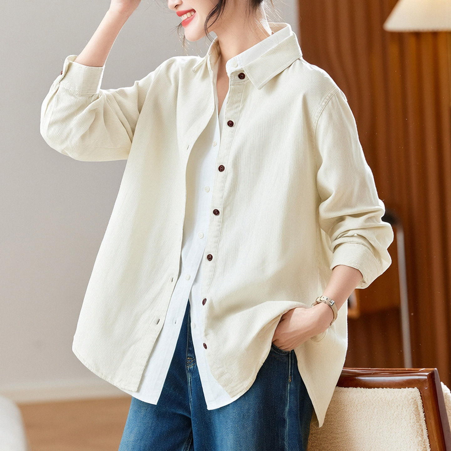 면 코듀로이 셔츠 긴팔 2025 가을 겨울 신상 심플 기모 두꺼운 여성용 셔츠스토어 가기