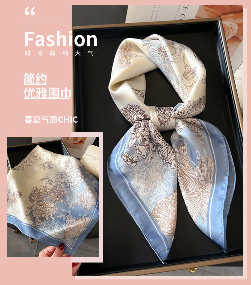신선하고 우아한 꽃 작은 사각형 실크 스카프 스카프 봄과 여름 인쇄 목 스카프 전문 스카프