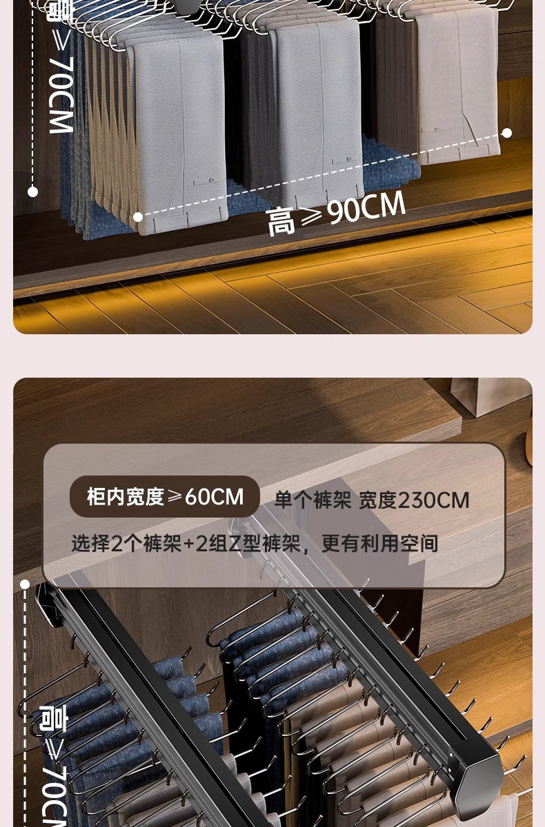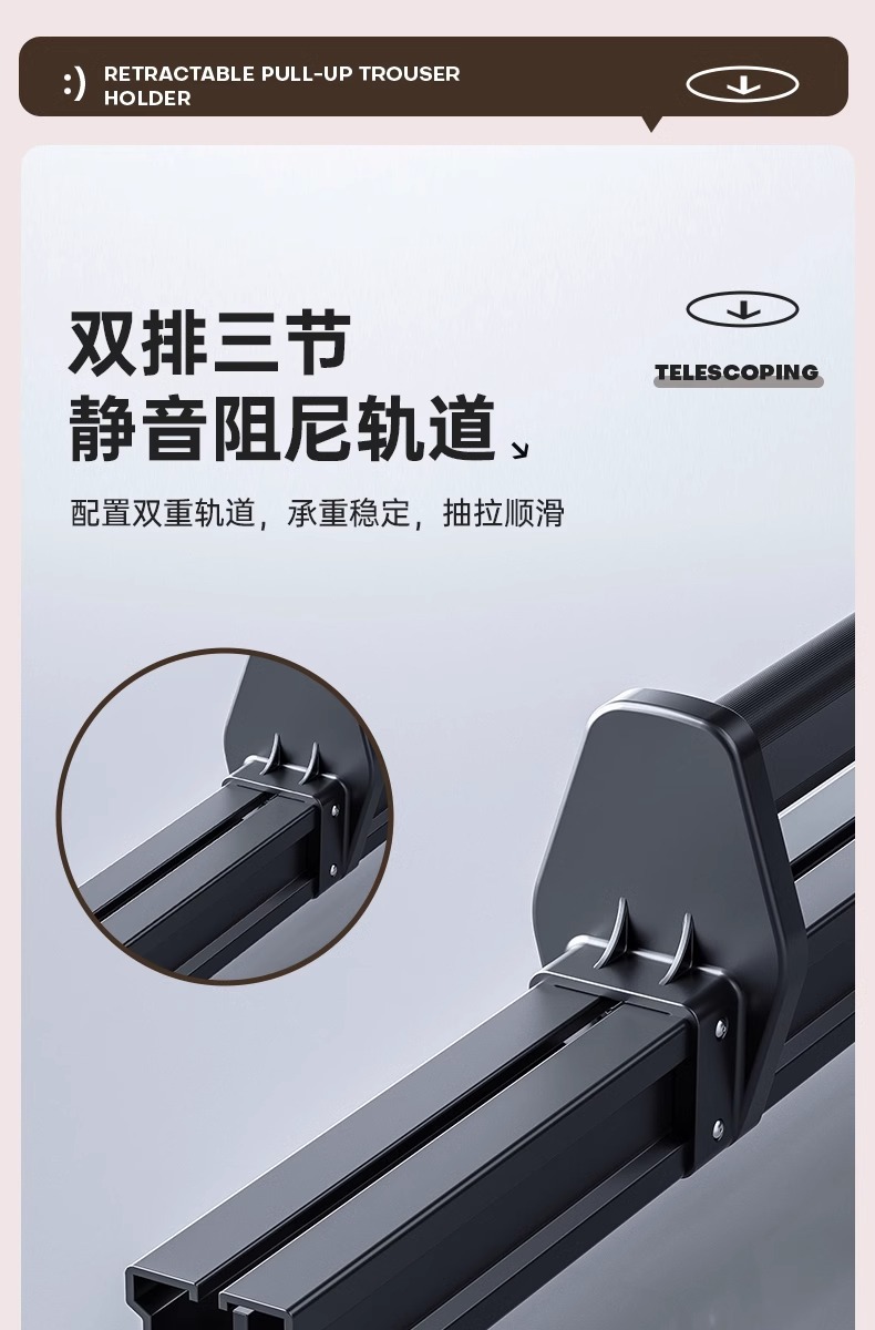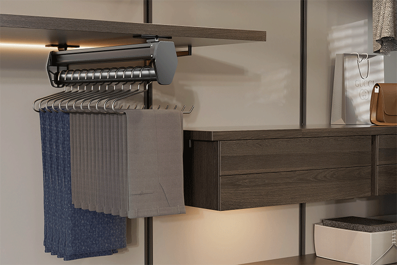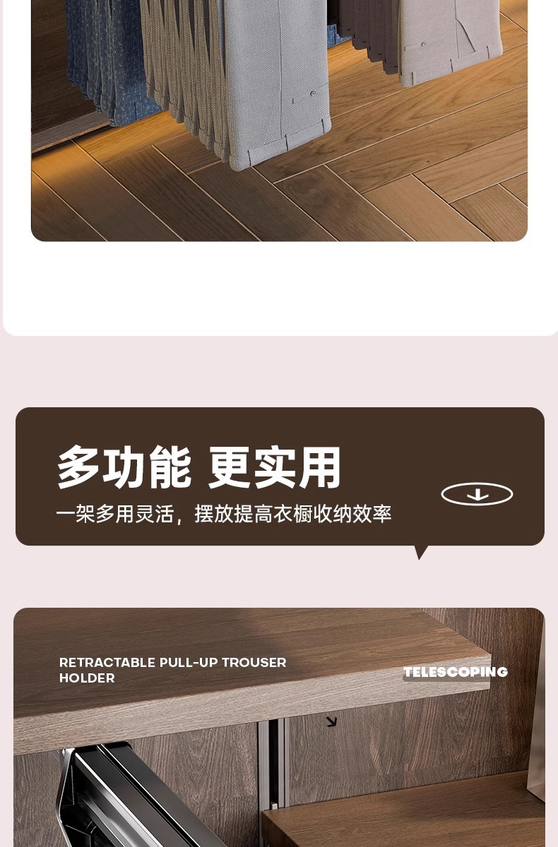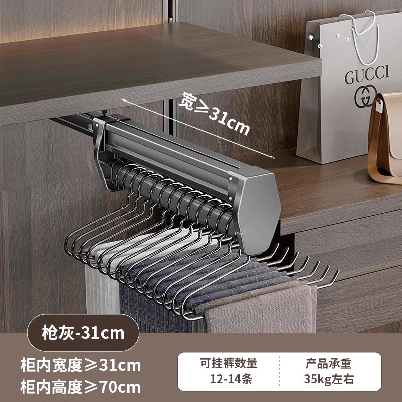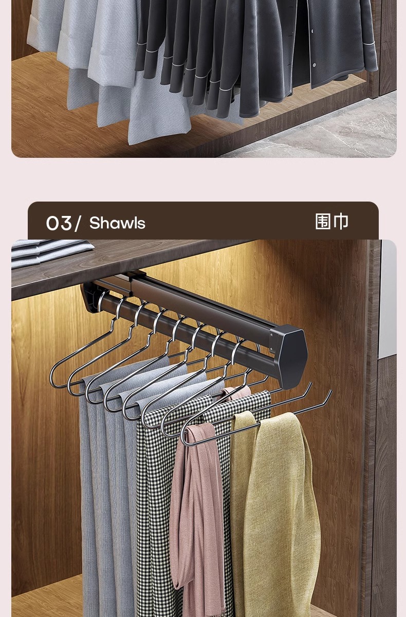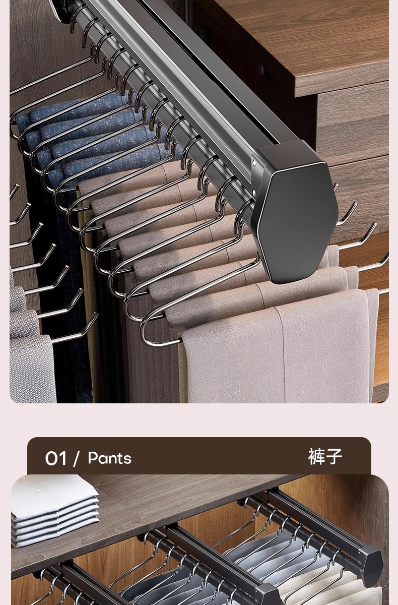 공장 공급 바지 랙 다기능 옷장 의류 풀아웃 트랙 스토리지 랙 옷장 내장 텔레스코픽 바지 보관스토어 가기