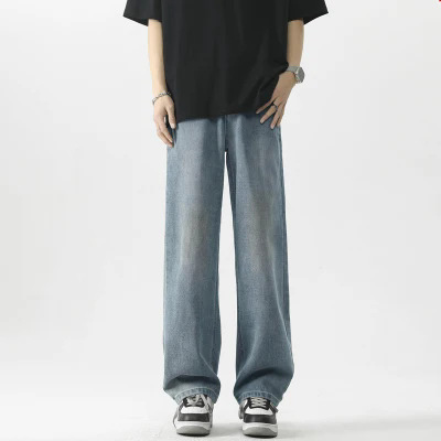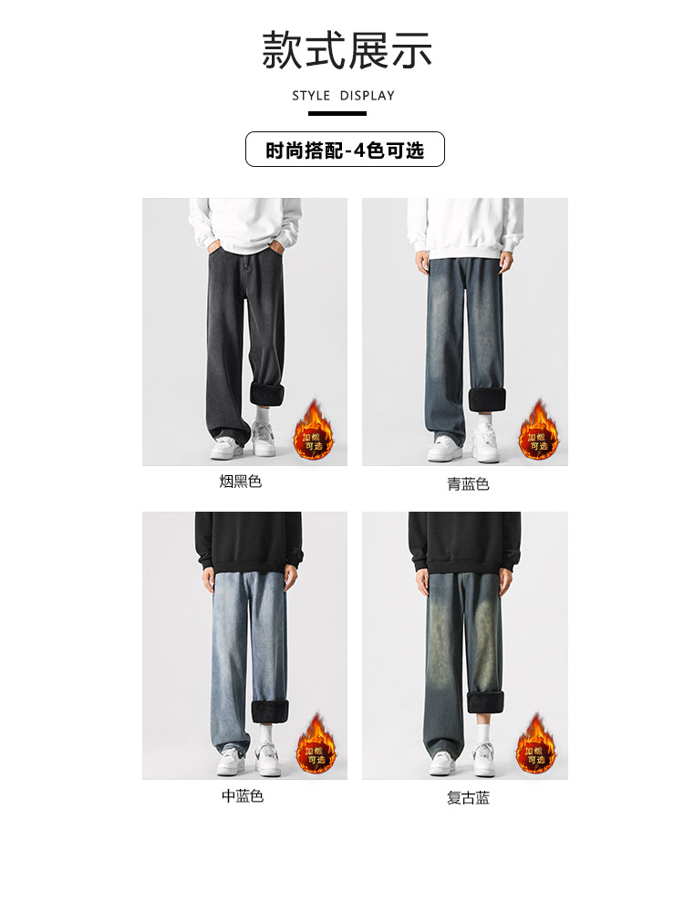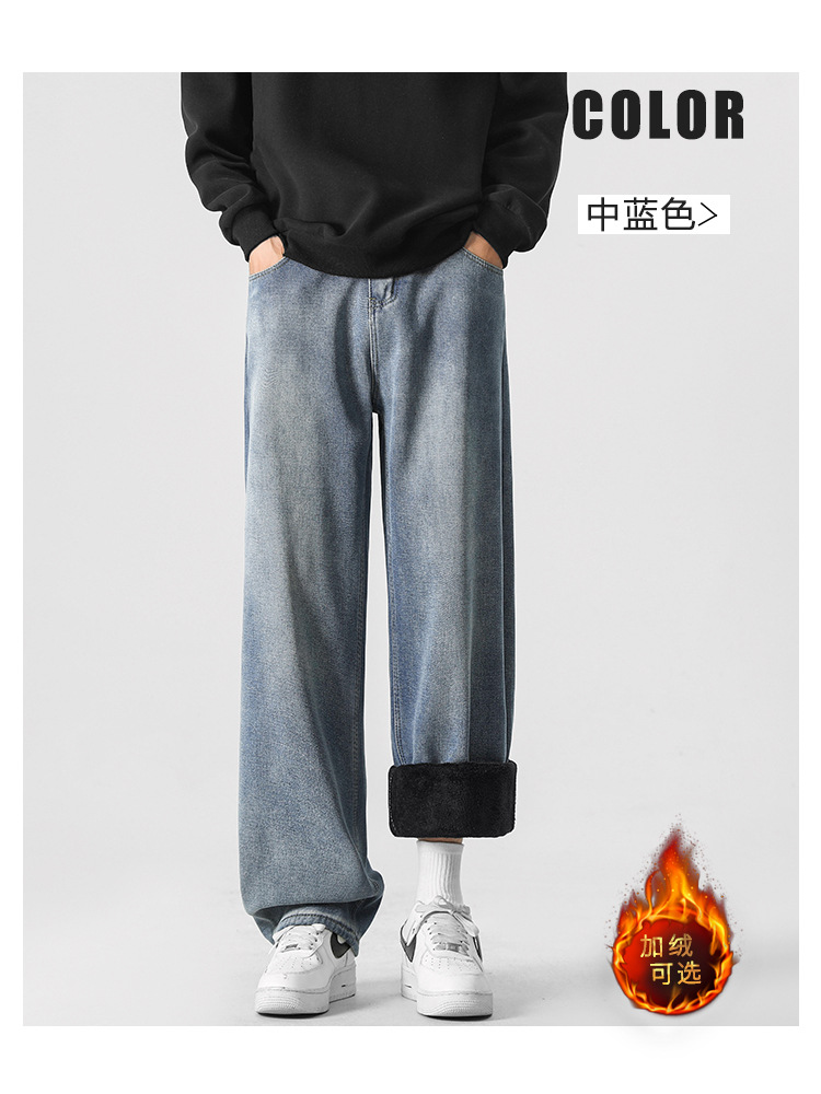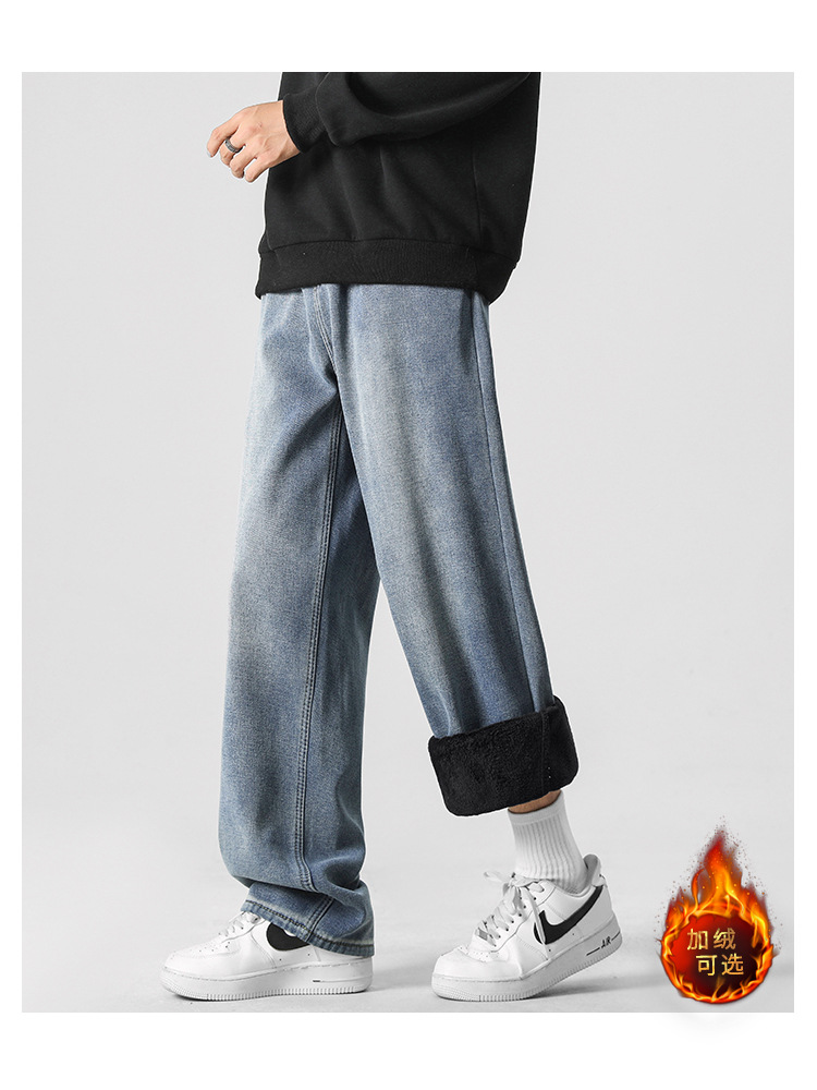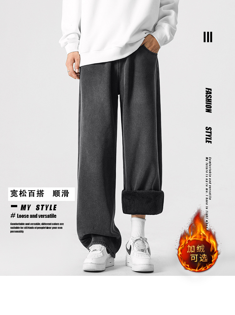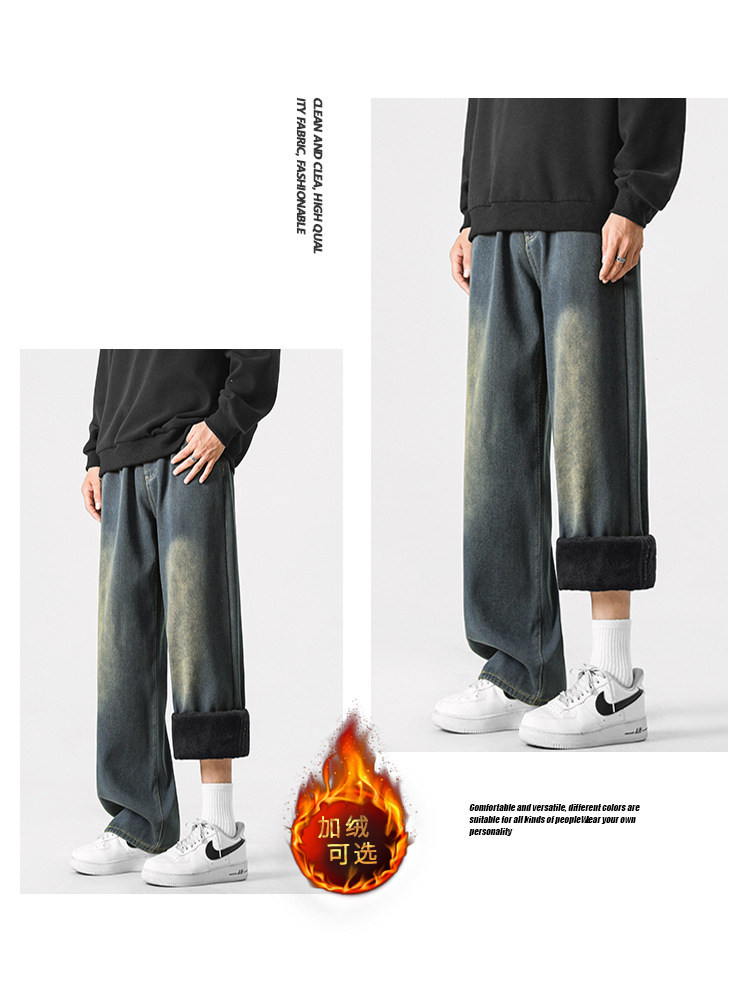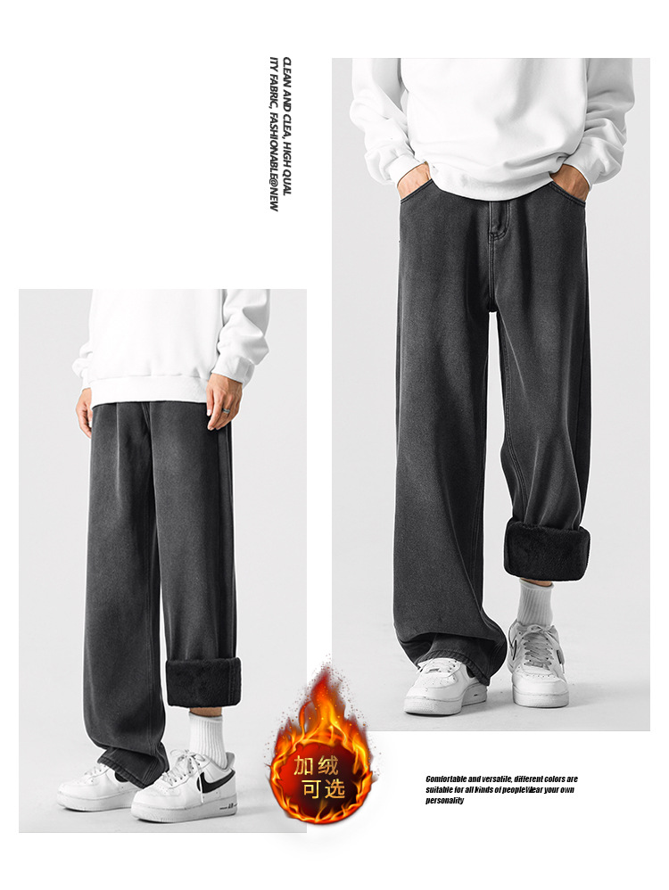 남성용 가을과 겨울 청바지 남성용 하이 스트리트 아메리칸 빈티지 캐주얼 바지 남성용 스트레이트 두꺼운 와이드 레그 롱 바지스토어 가기