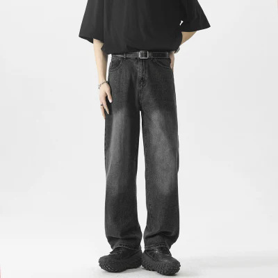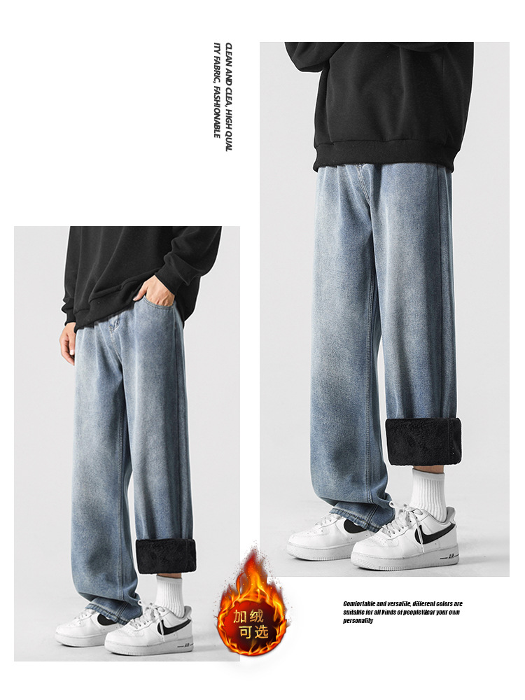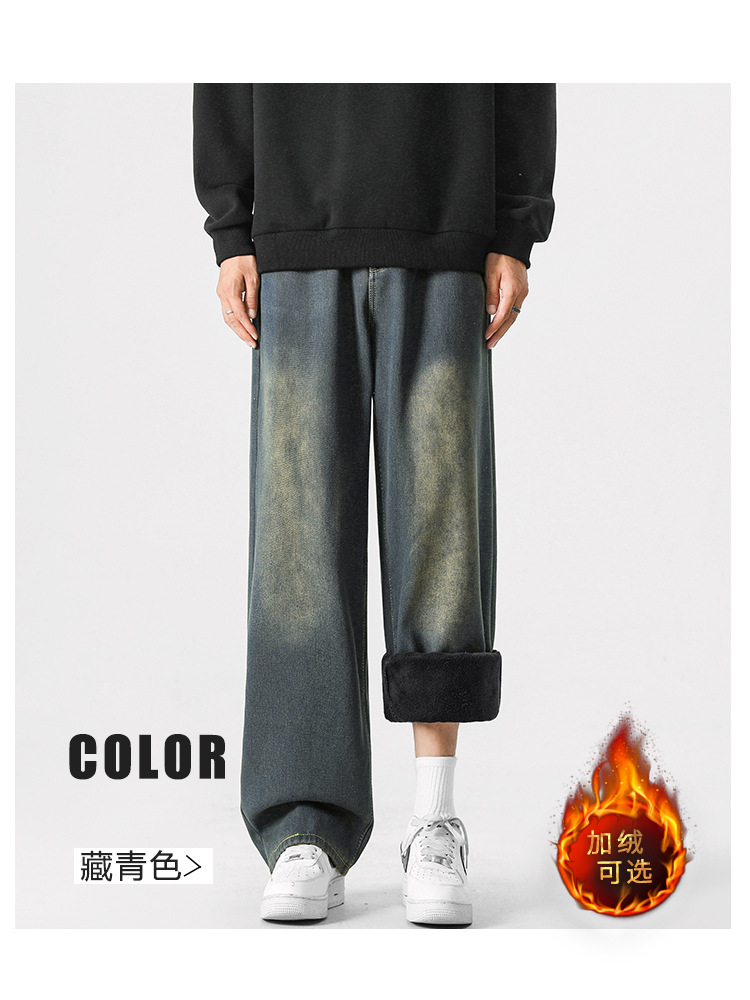 남성용 가을과 겨울 청바지 남성용 하이 스트리트 아메리칸 빈티지 캐주얼 바지 남성용 스트레이트 두꺼운 와이드 레그 롱 바지