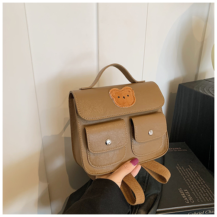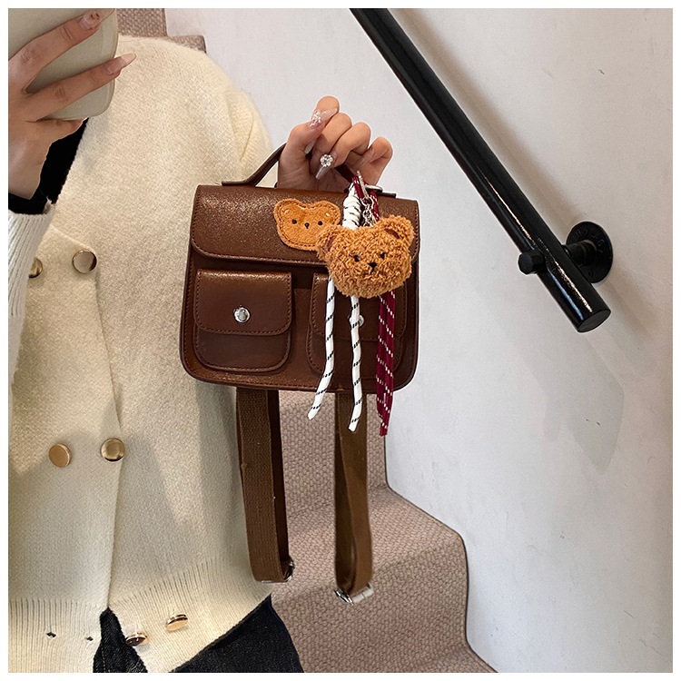 어린이 배낭 한국식 곰 사이버 연예인 레트로 PU 배낭 패션 영국식 부모-자식 작은 배낭