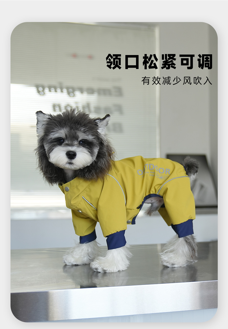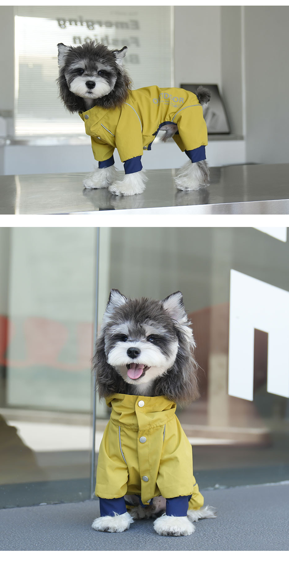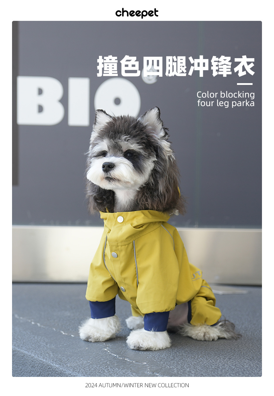 애완 동물 사계절 비옷 야외 방풍 및 방수 대비 색상 4 다리 재킷 슈나우저 강아지 옷 도매스토어 가기