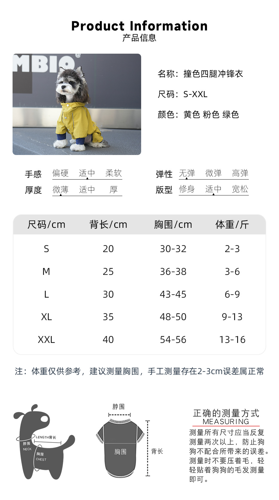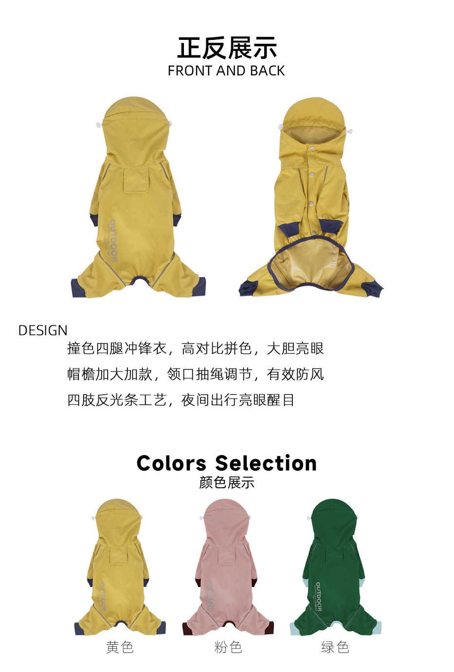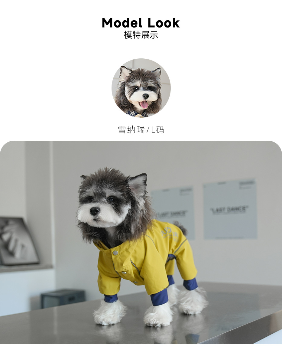 애완 동물 사계절 비옷 야외 방풍 및 방수 대비 색상 4 다리 재킷 슈나우저 강아지 옷 도매스토어 가기