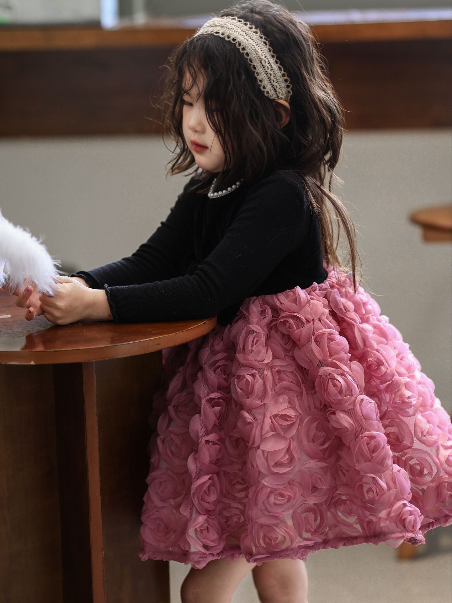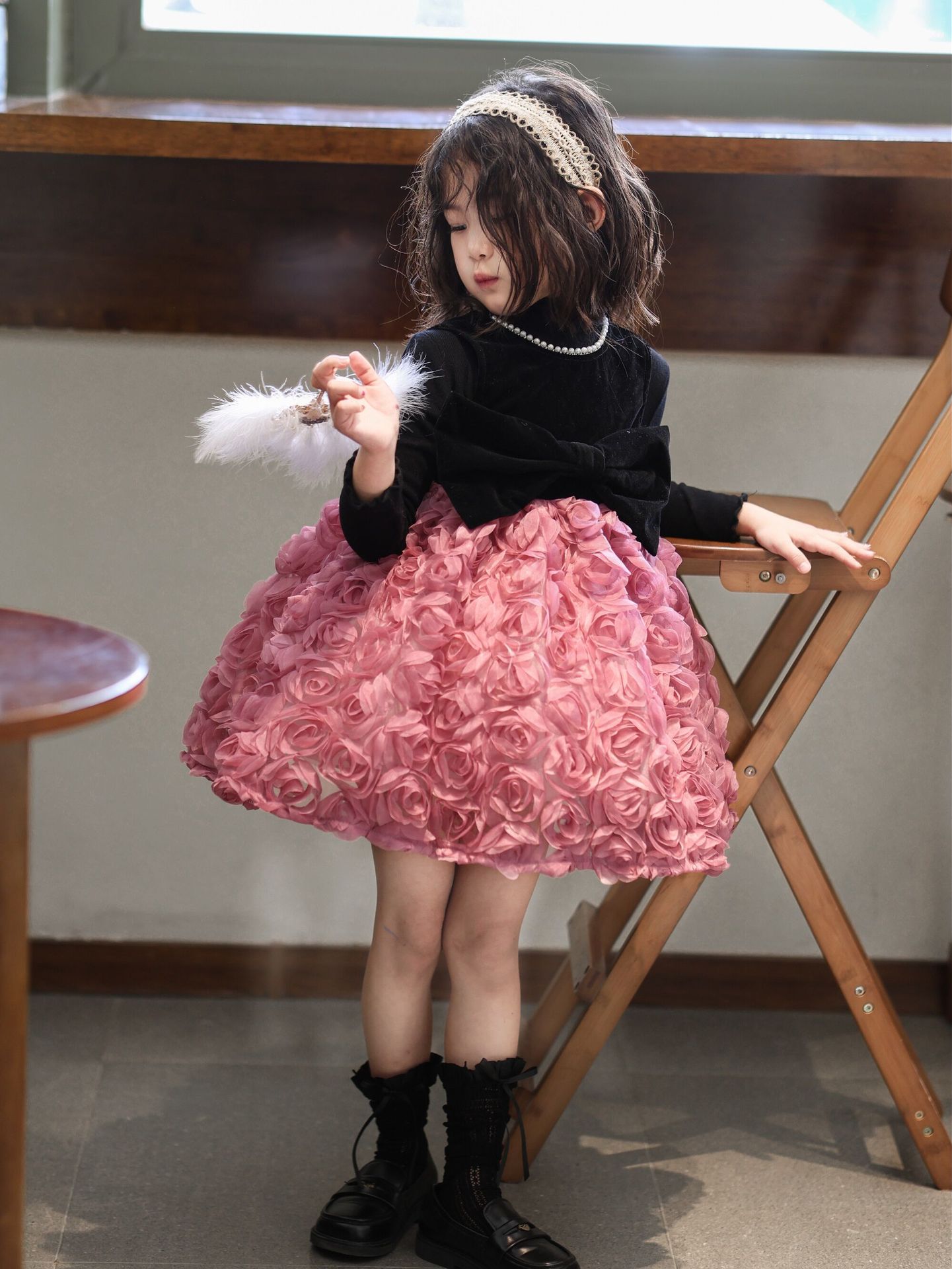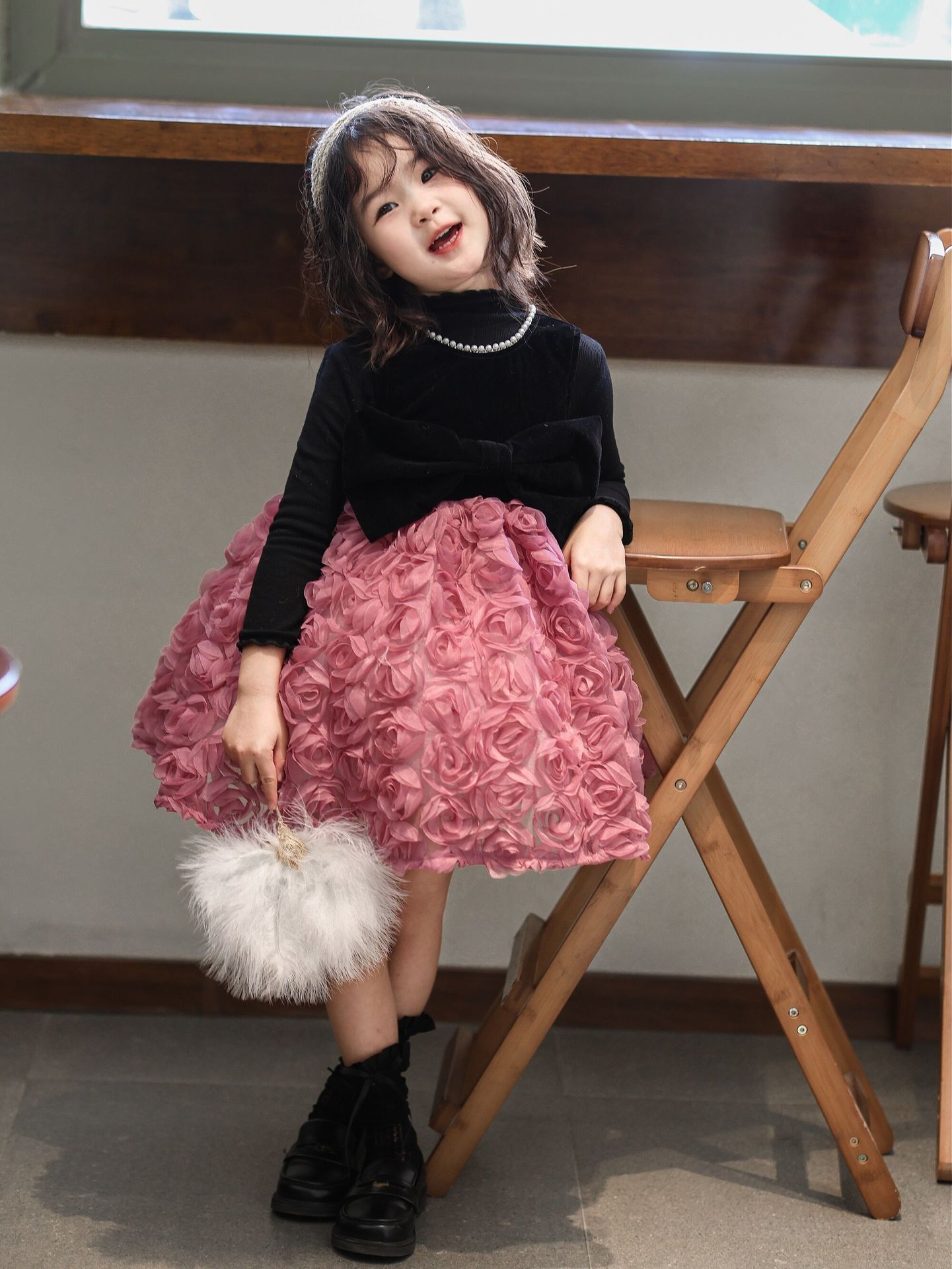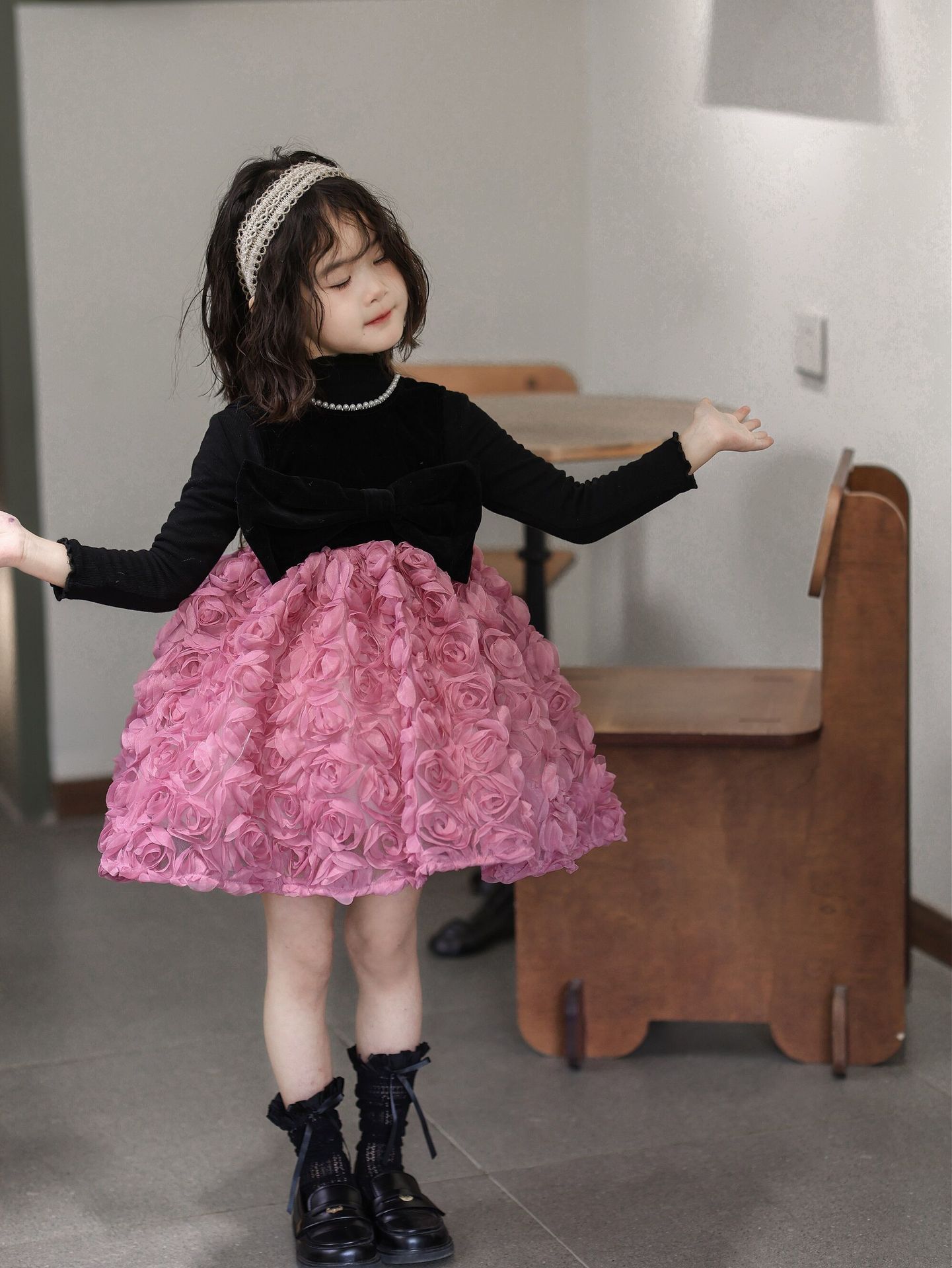 2025 가을 겨울 신상 여아 생일 공주 드레스 우아한 민소매 드레스 여아용 플러스 벨벳 장미꽃 망사 드레스스토어 가기