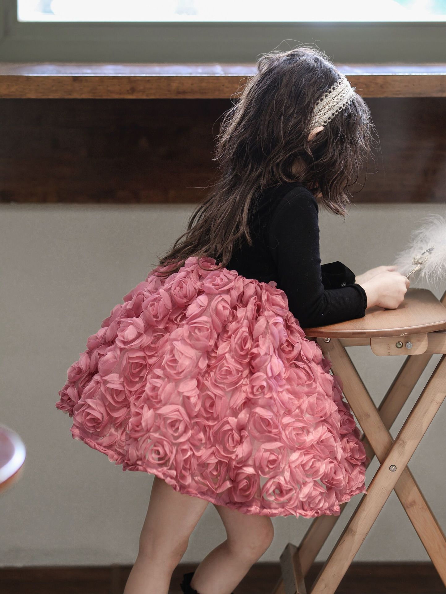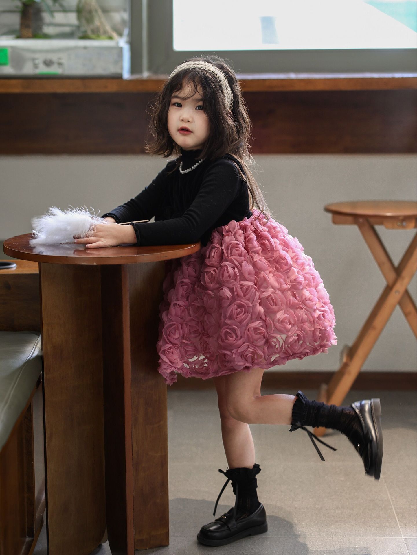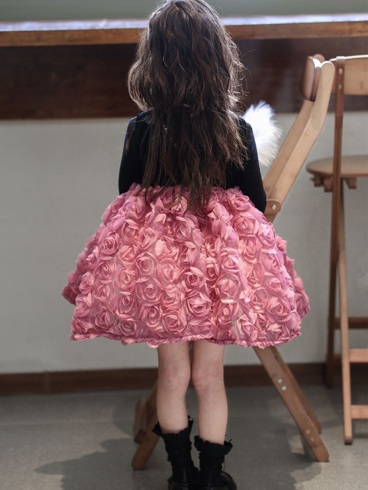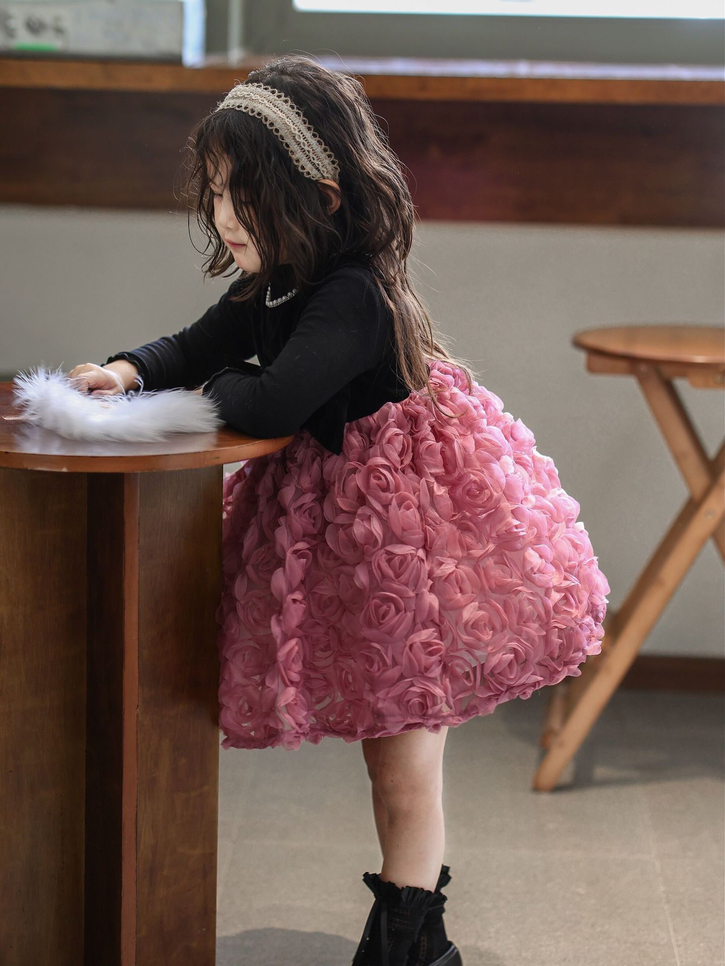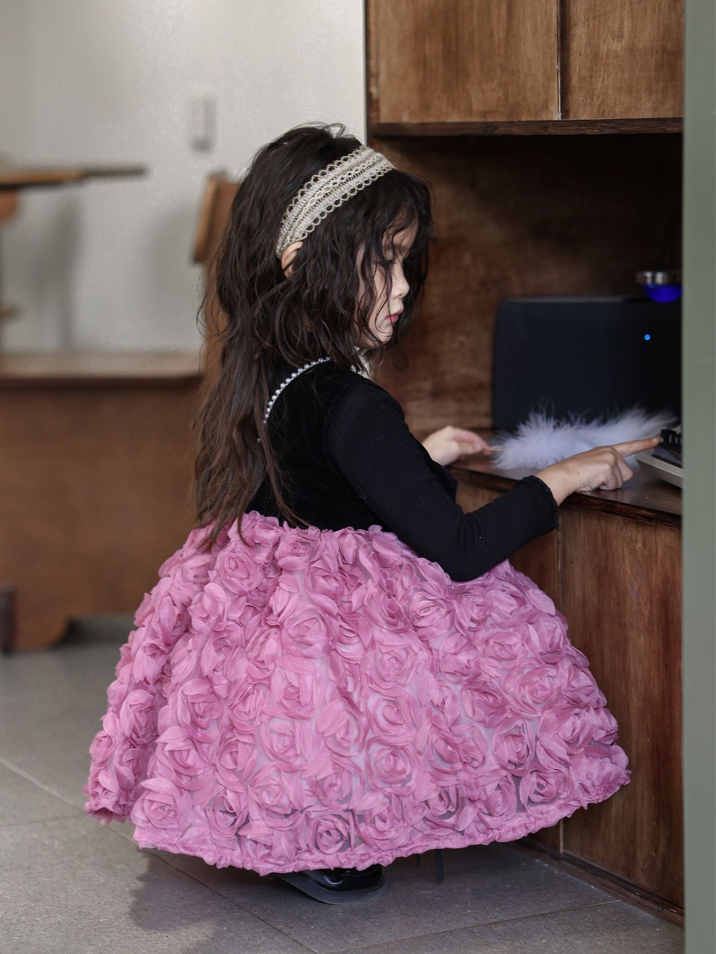 2025 가을 겨울 신상 여아 생일 공주 드레스 우아한 민소매 드레스 여아용 플러스 벨벳 장미꽃 망사 드레스스토어 가기