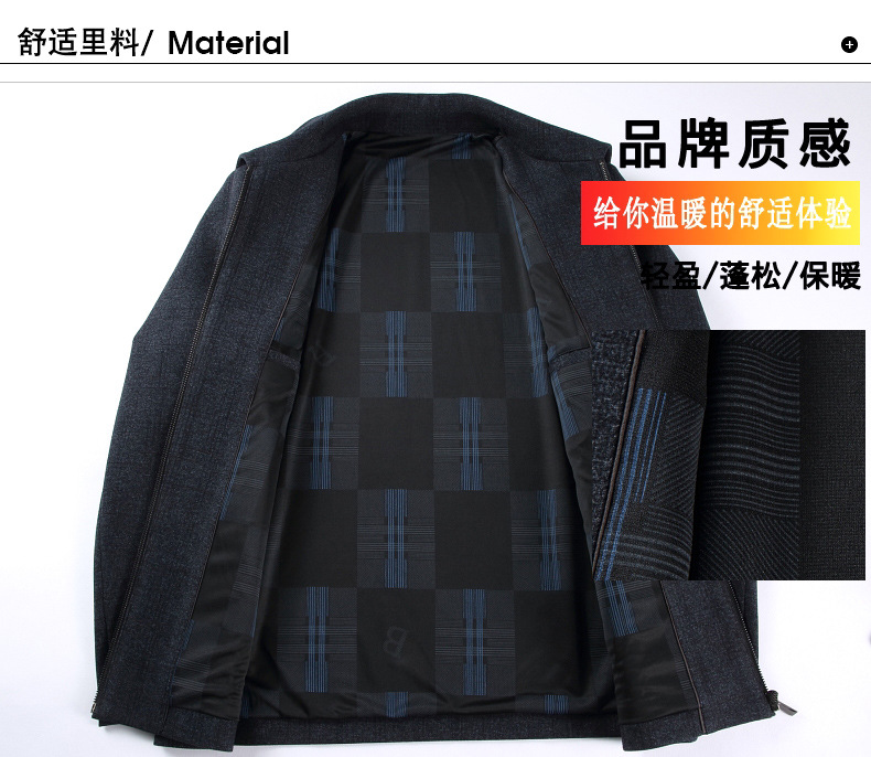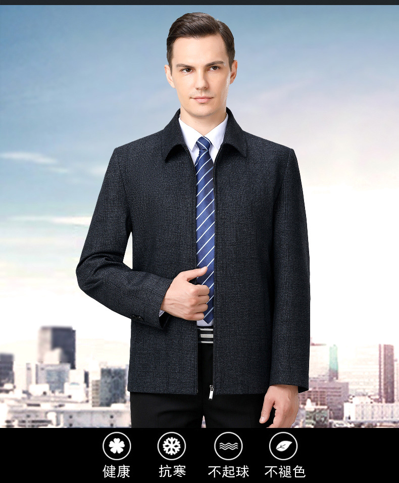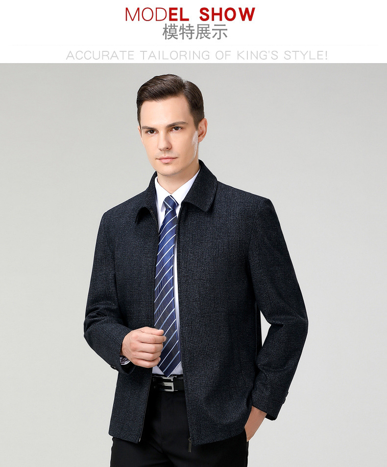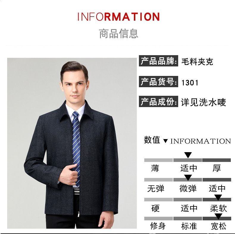 중년 아빠를위한 카운터 하이 엔드 봄 및 가을 울 자켓 남성용 비즈니스 경량 옷깃 재킷 플러스 사이즈 재킷