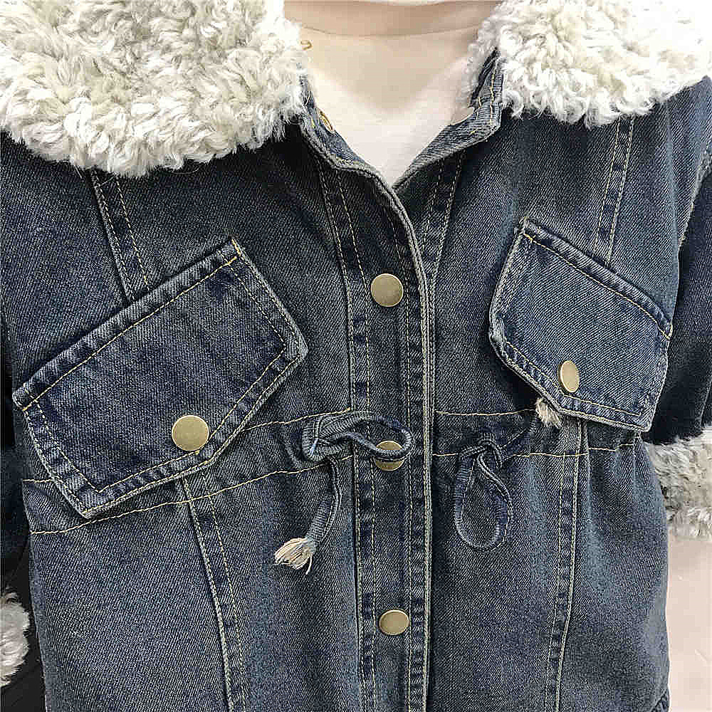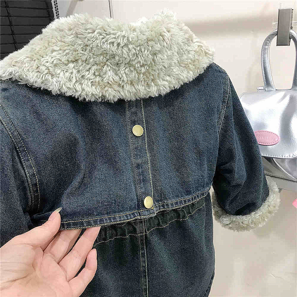 소녀 기모 데님 코트 가을과 겨울 새로운 스타일 소녀 아기 겨울 두꺼운 양고기 양털 탑스토어 가기