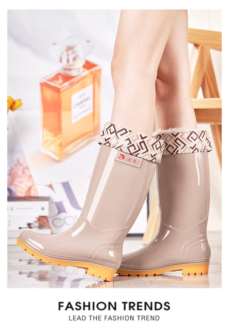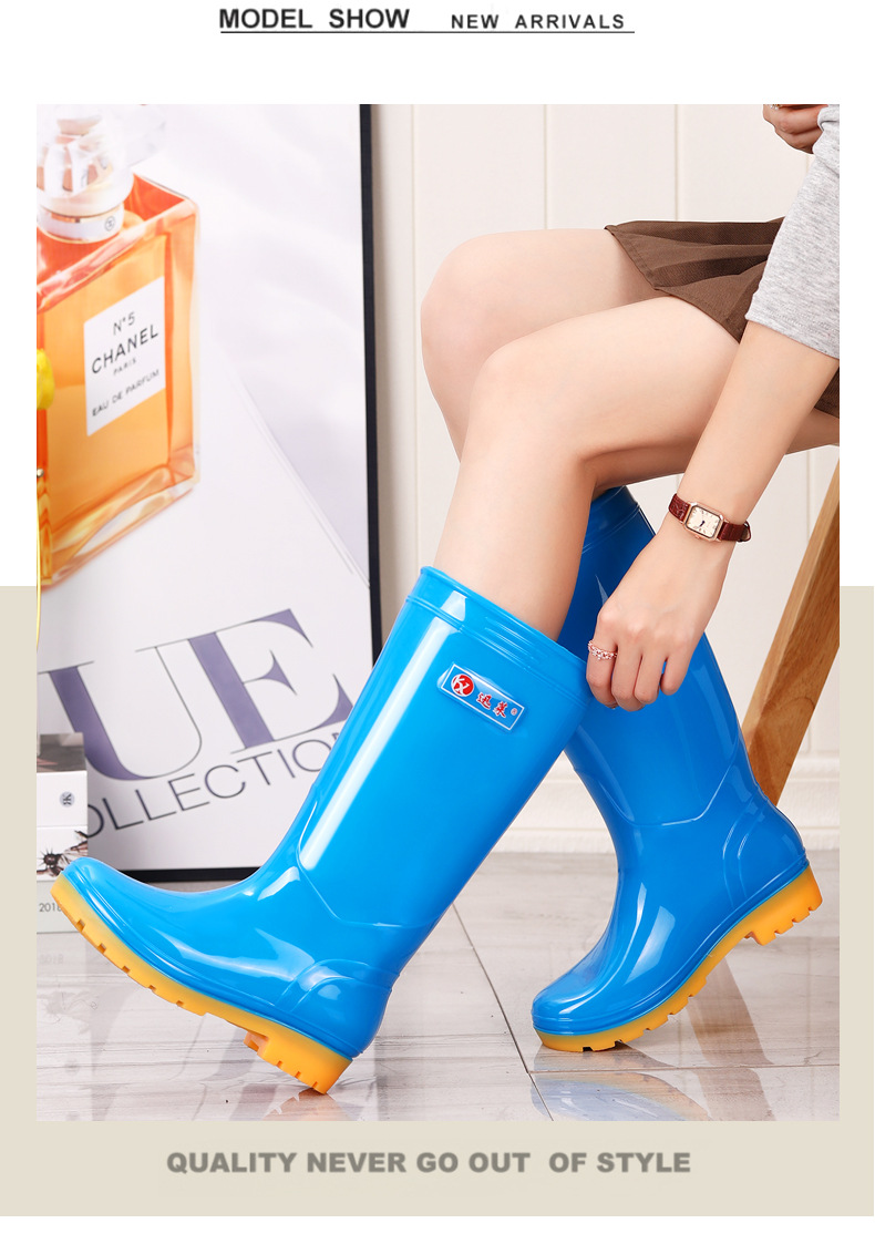 봄과 가을 새로운 숙녀 높은 배럴 장화 주방 청소 미끄럼 방지 작업 고무 신발 소매 성인 장화 재고 도매스토어 가기