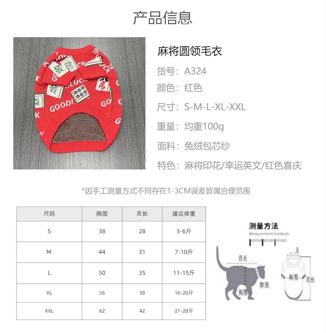 애완견 니트 스웨터 고양이 옷 테디 파두 가을과 겨울 의류 중국 바람 마작 의류 공장 재고스토어 가기