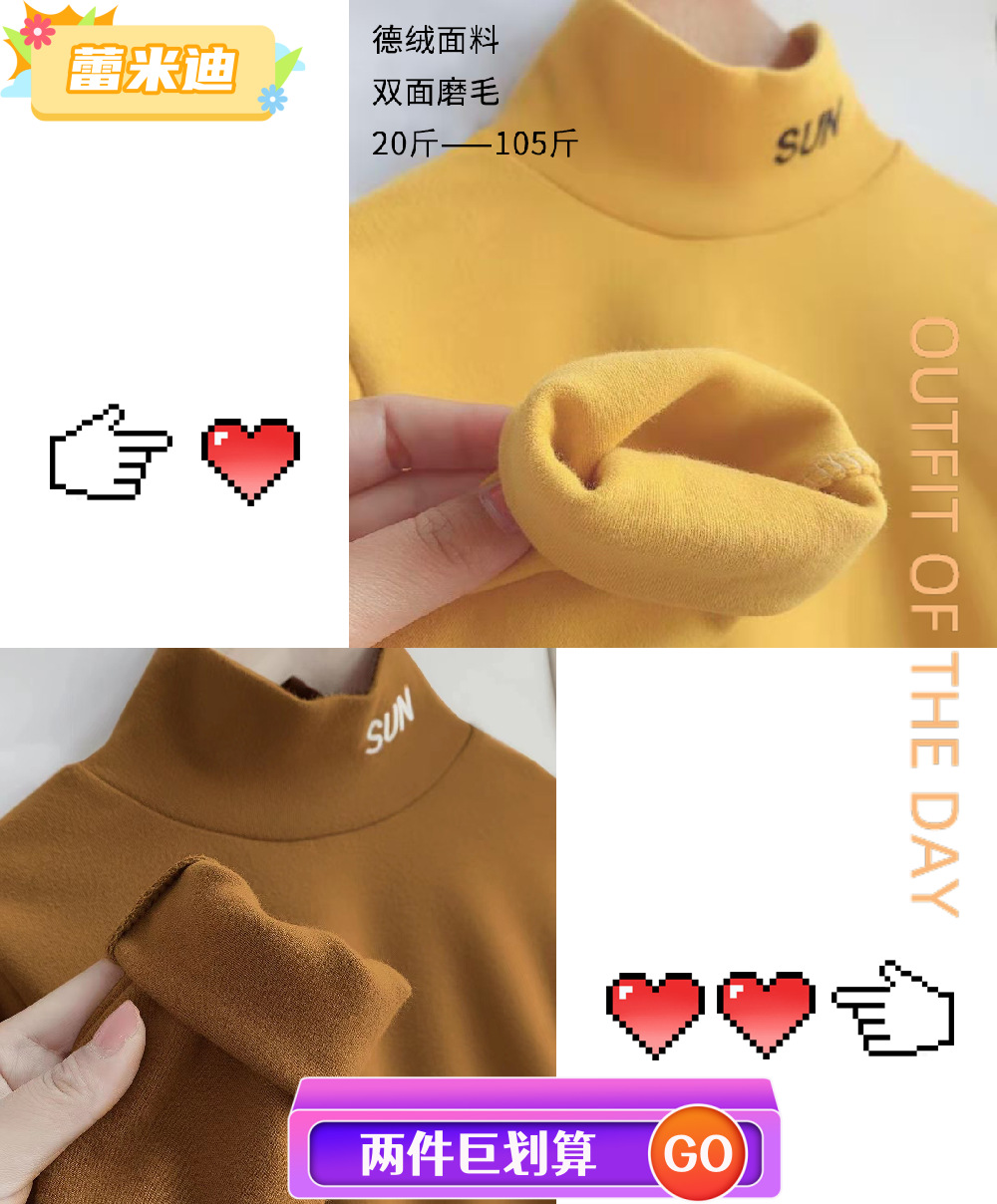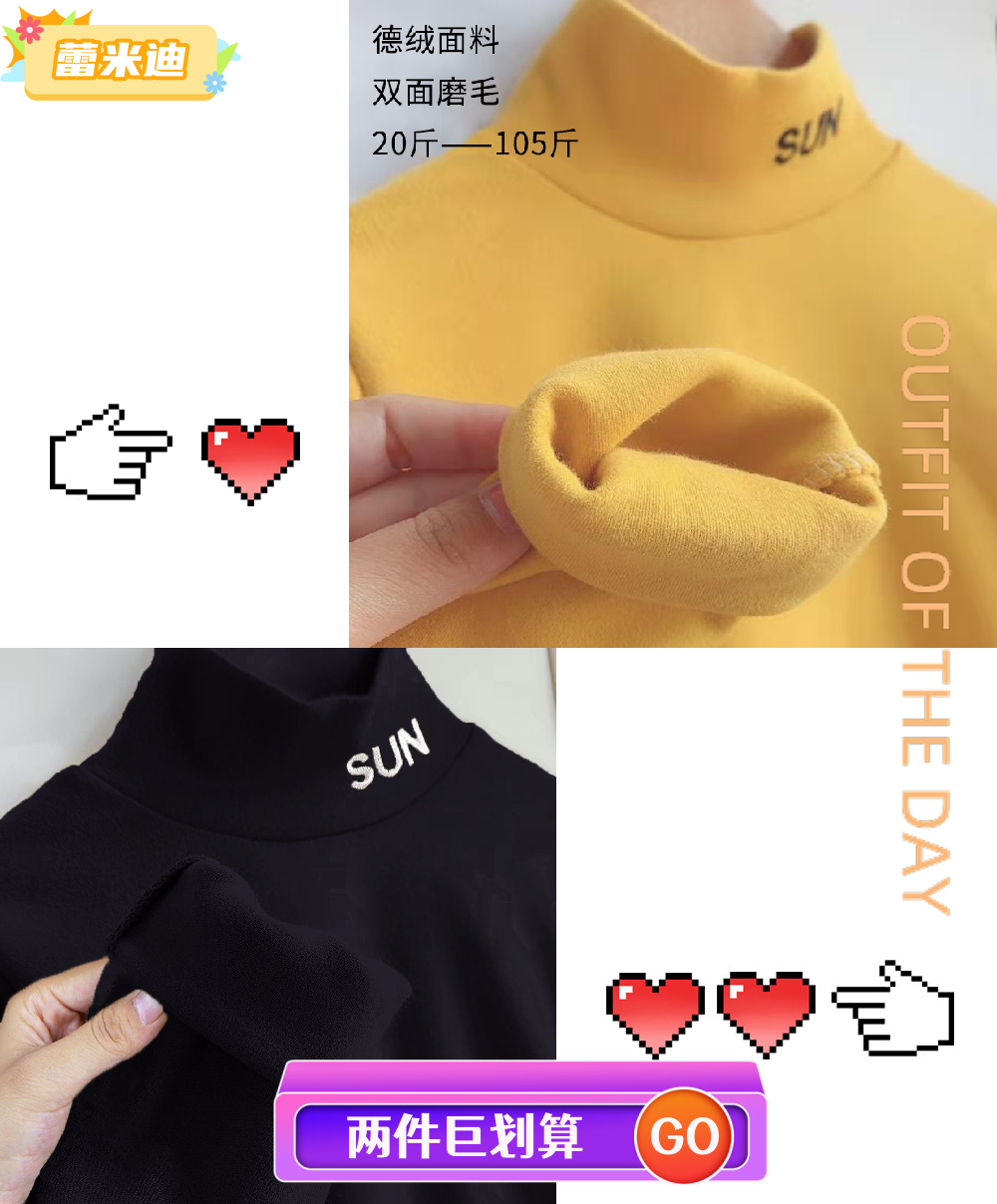 소년과 소녀 두꺼운 바닥 셔츠 어린이 하프 터틀넥 가을, 겨울 벨벳 따뜻한 속옷 아동 의류 긴팔 티셔츠스토어 가기