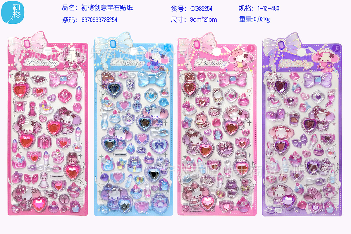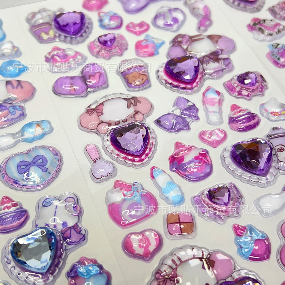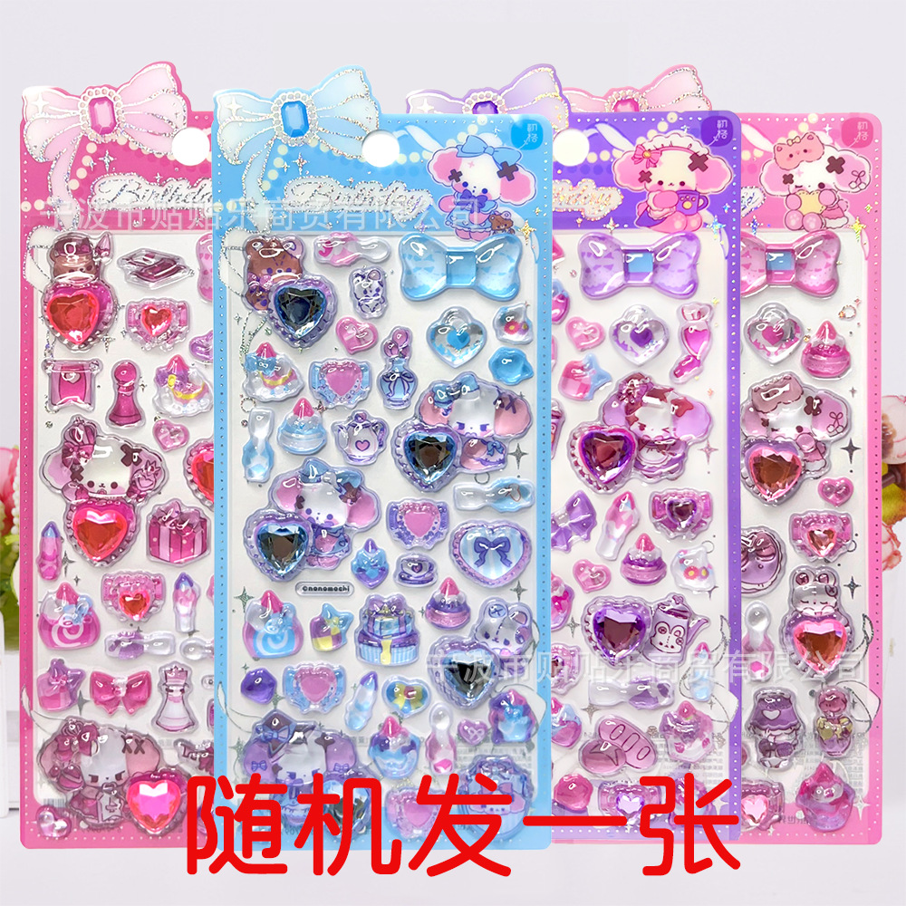 초기 그리드 릴리프 다이아몬드 3 차원 크리스탈 스티커 사랑 보석 스티커 만화 창조적 인 어린이 소녀 교육 장난감스토어 가기
