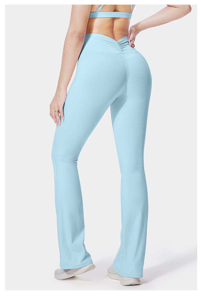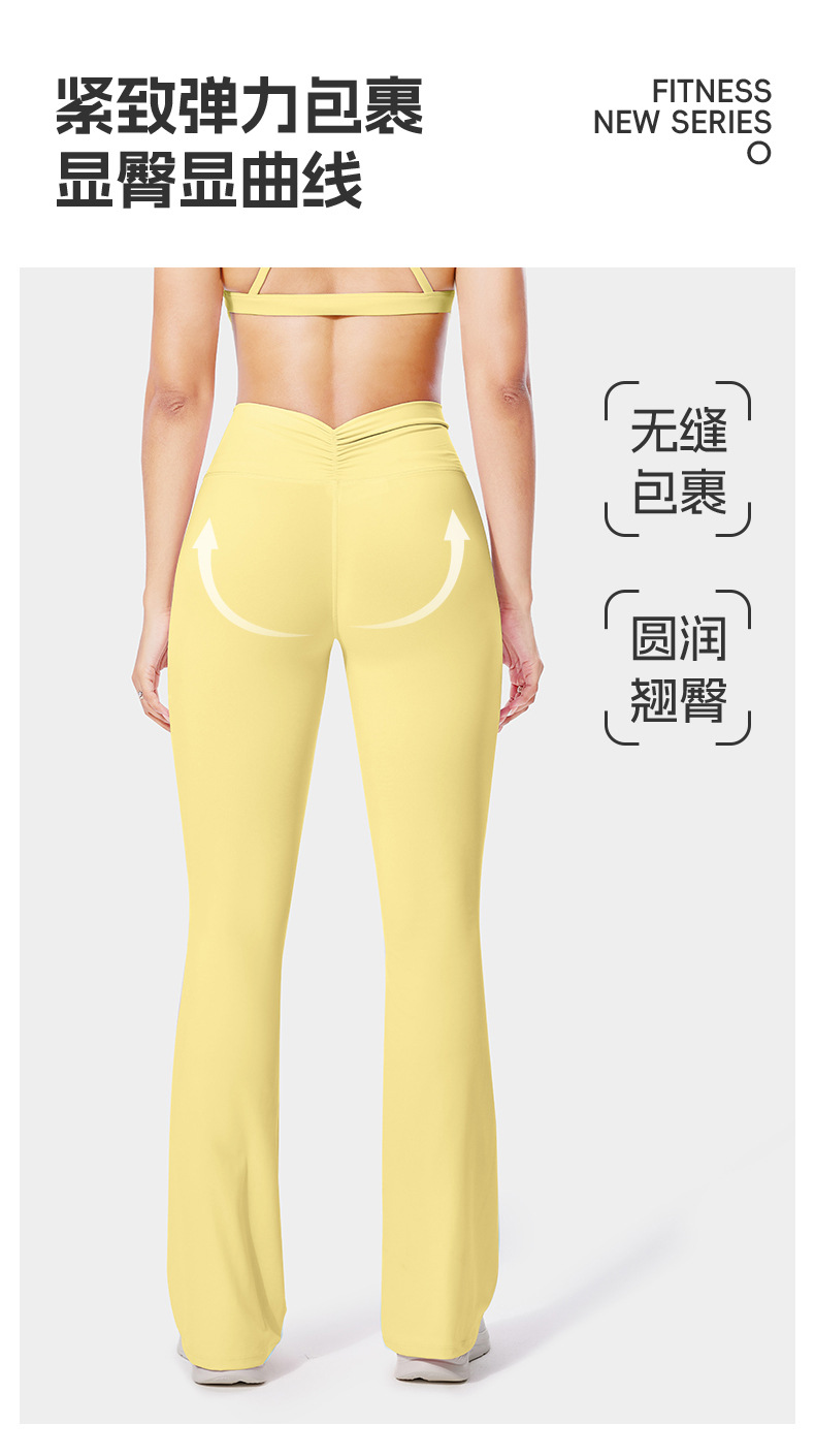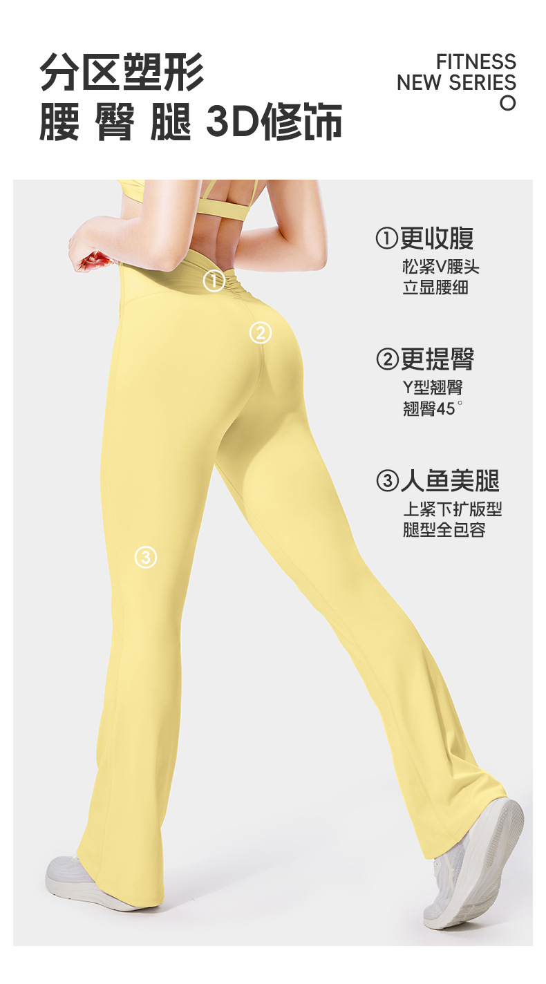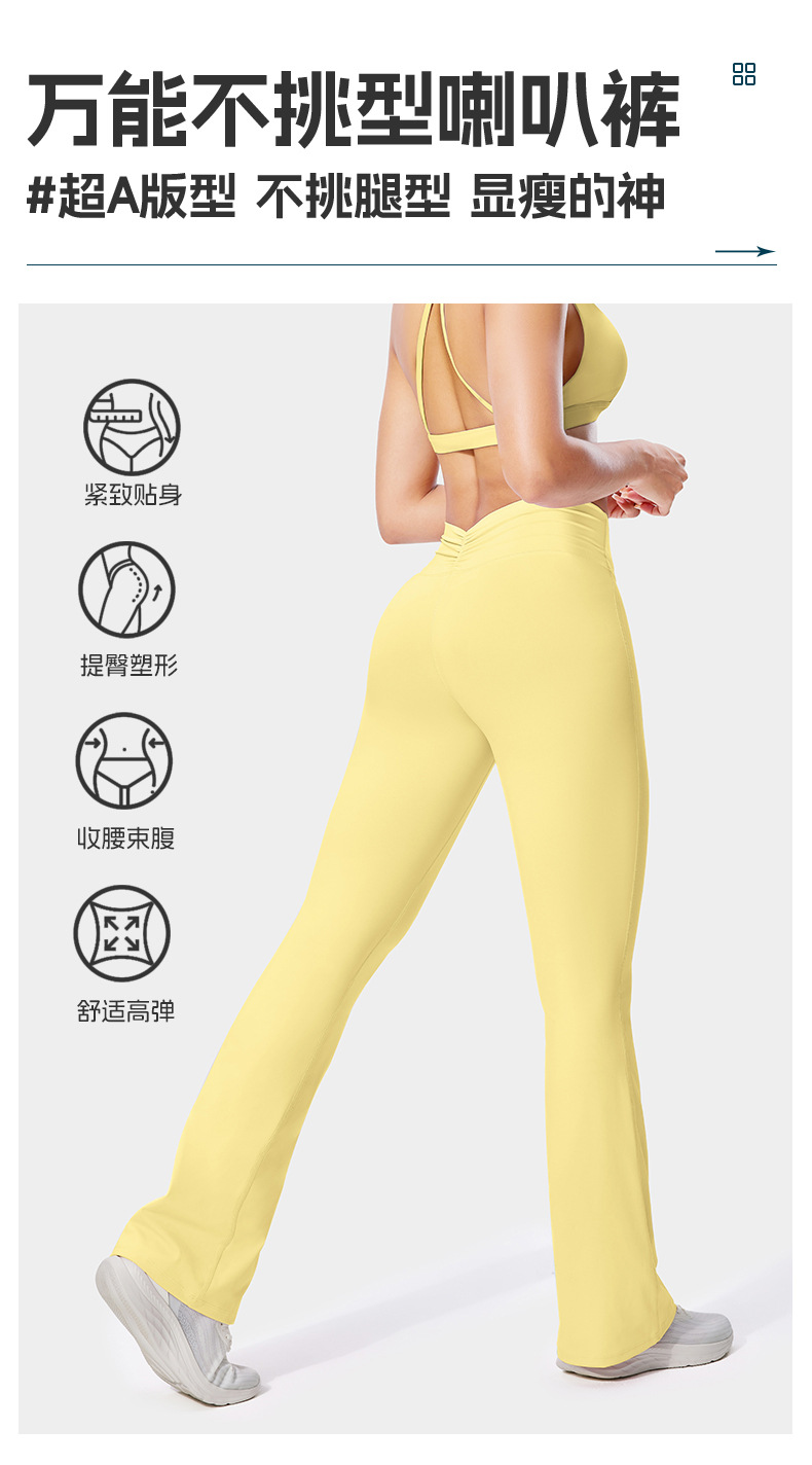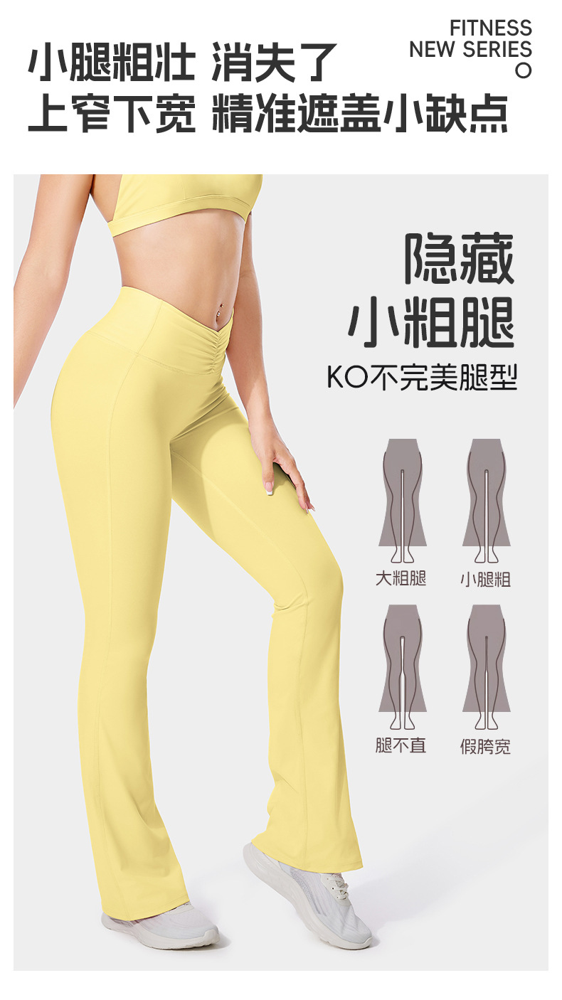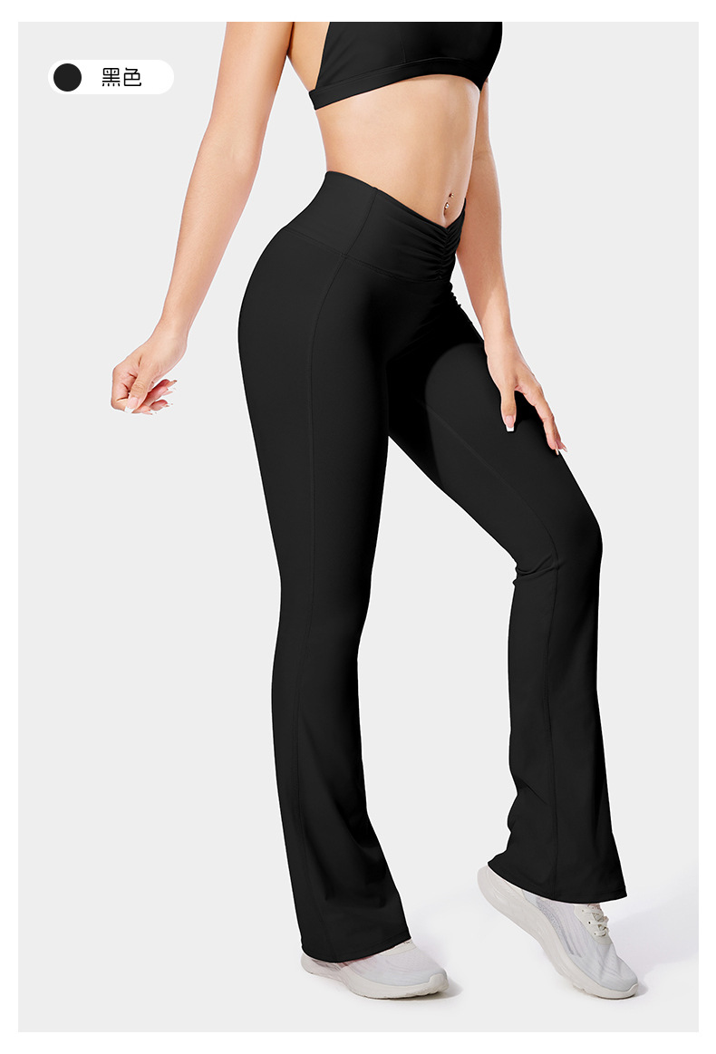 V-허리 복숭아 엉덩이 피트니스 바지 여성용 비 황폐 라인 스트레치 요가 바지 꽉 땀 흡수 스포츠 바지 마이크로 플레어 바지