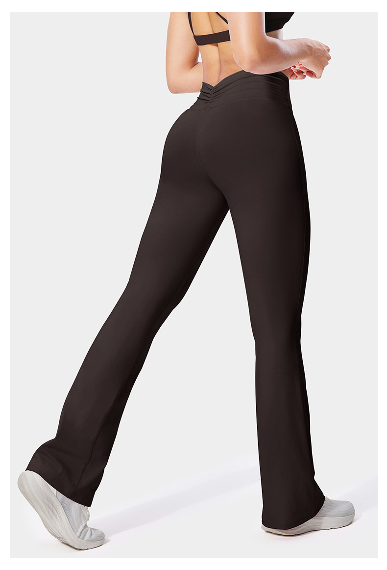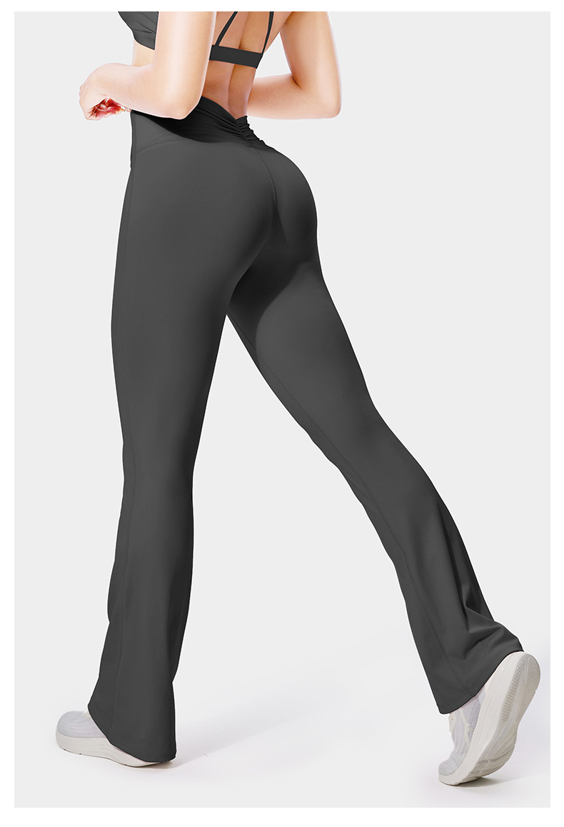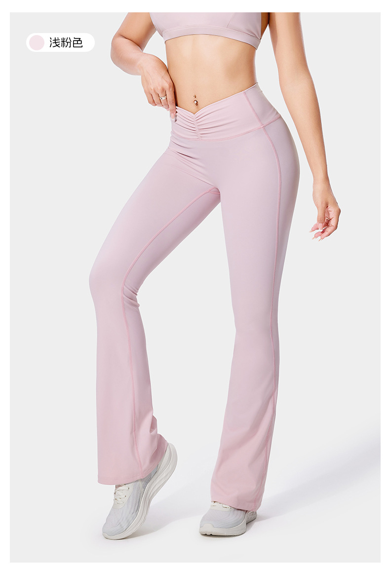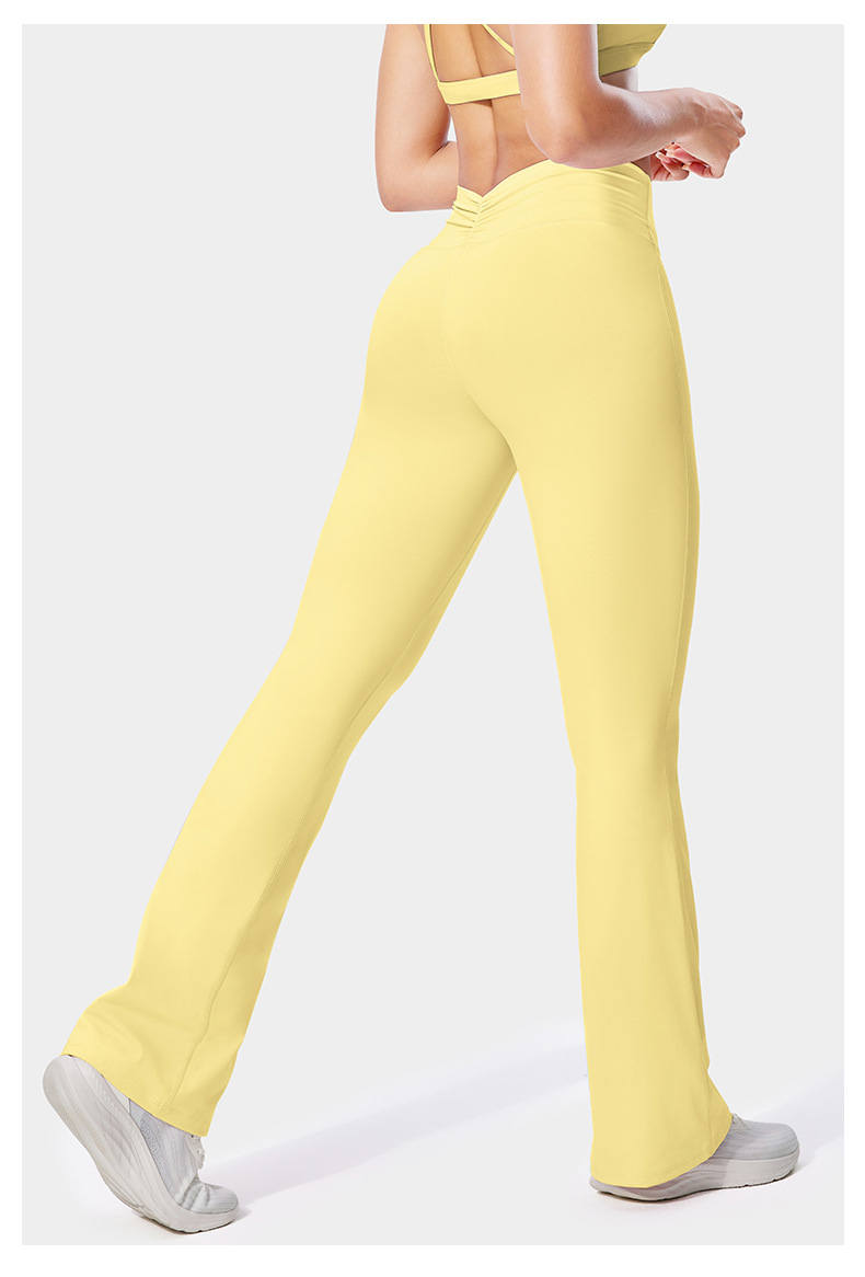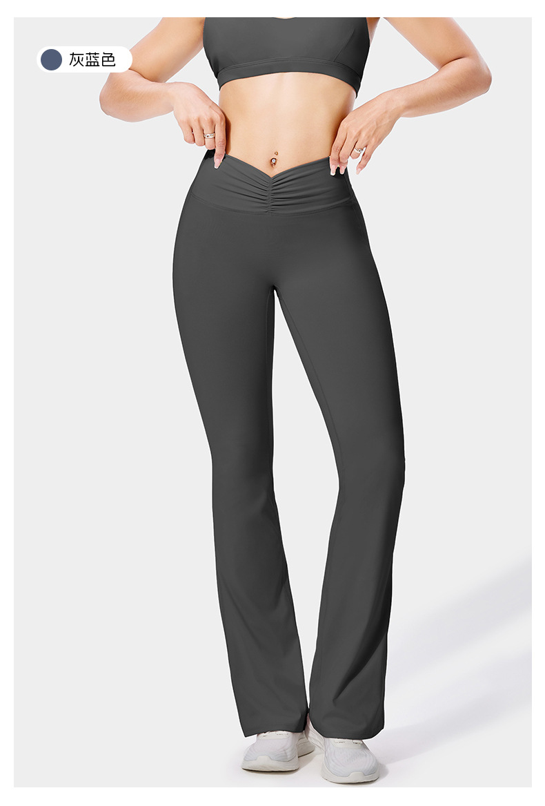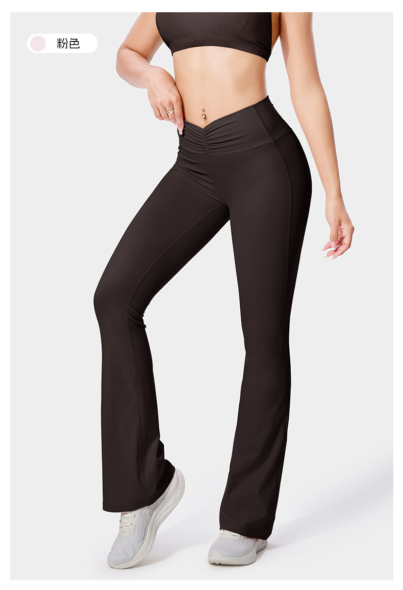 V-허리 복숭아 엉덩이 피트니스 바지 여성용 비 황폐 라인 스트레치 요가 바지 꽉 땀 흡수 스포츠 바지 마이크로 플레어 바지