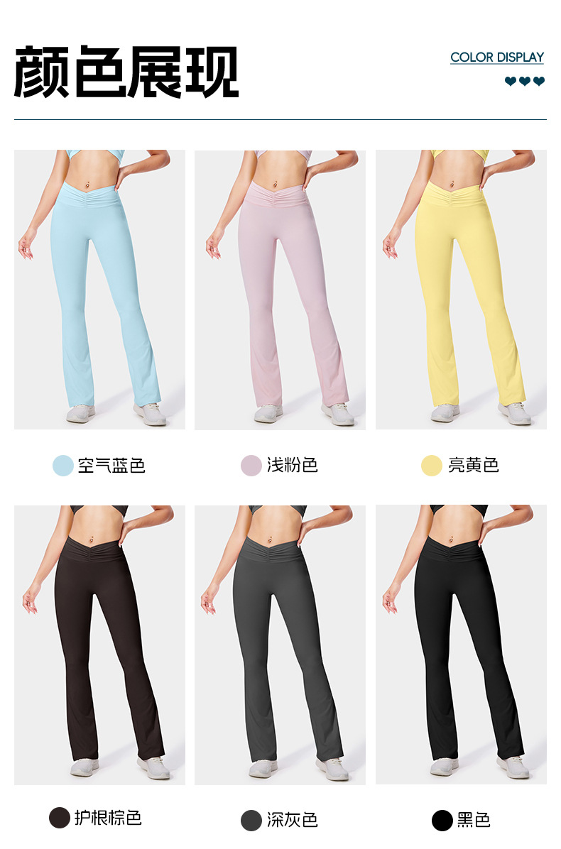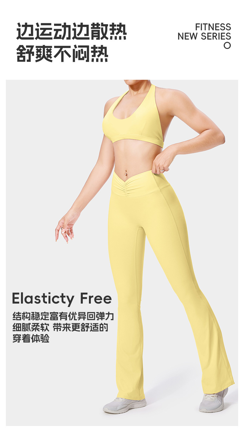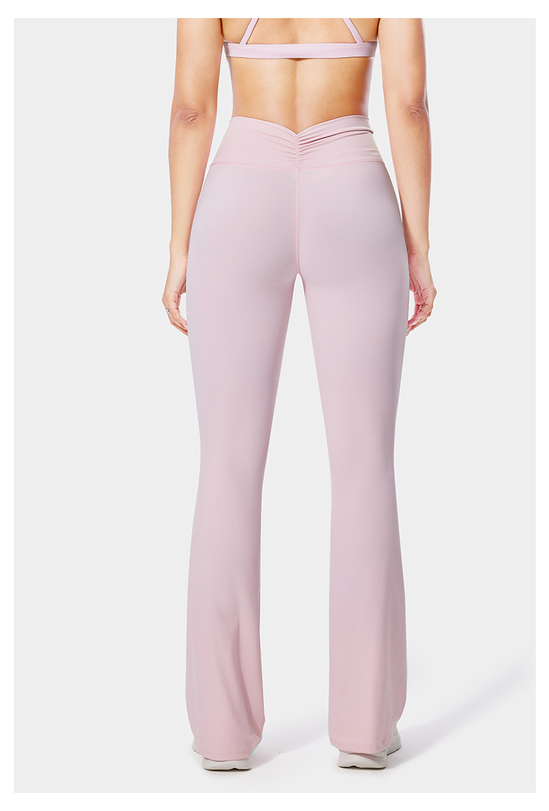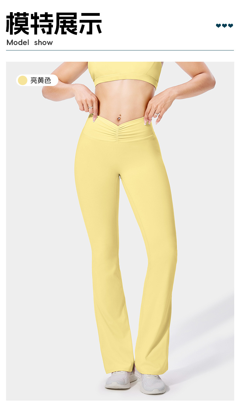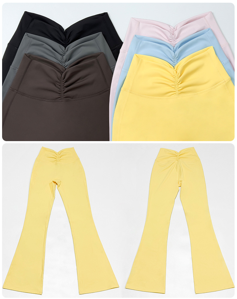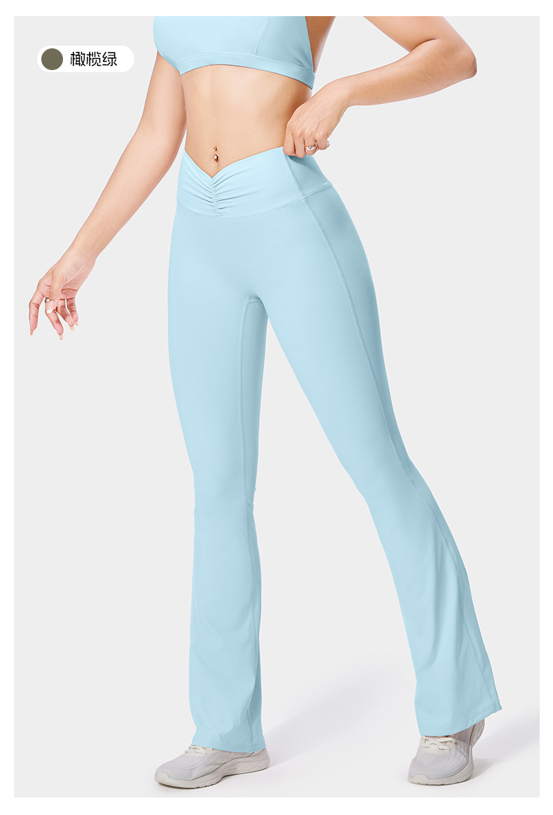 V-허리 복숭아 엉덩이 피트니스 바지 여성용 비 황폐 라인 스트레치 요가 바지 꽉 땀 흡수 스포츠 바지 마이크로 플레어 바지