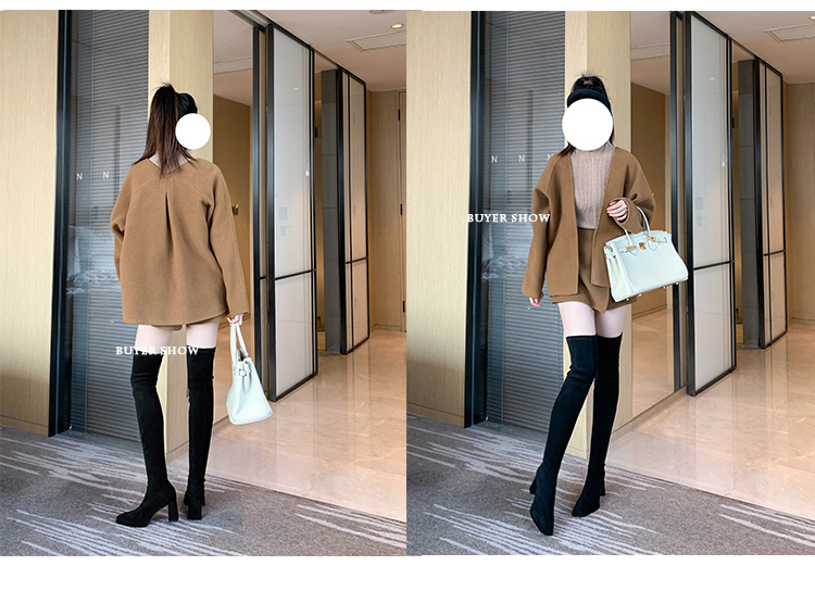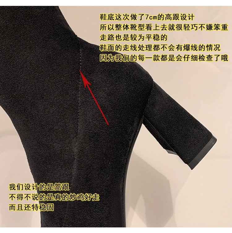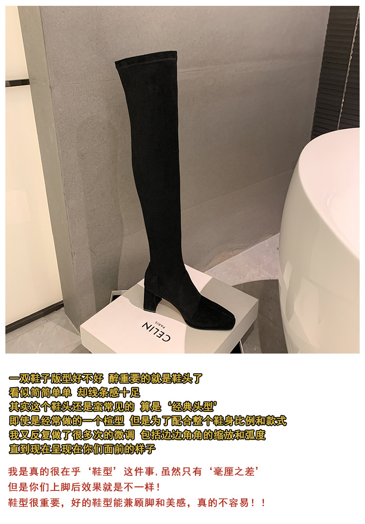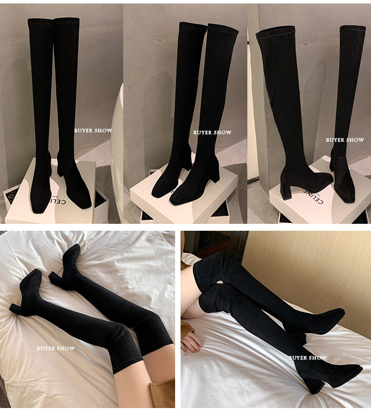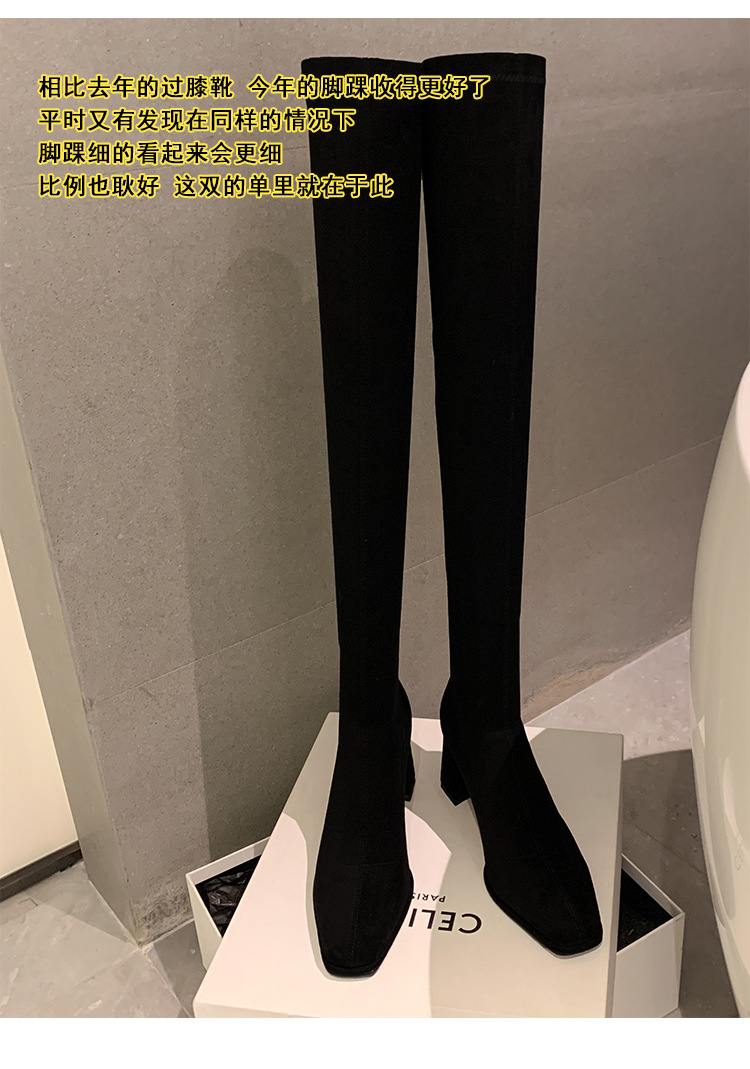 월라이아 스퀘어토 카키색 롱부츠 여성용 무릎 위 부츠 가을 겨울 신상품 플러스벨벳 하이힐 신축성 슬림 부츠 롱부츠스토어 가기