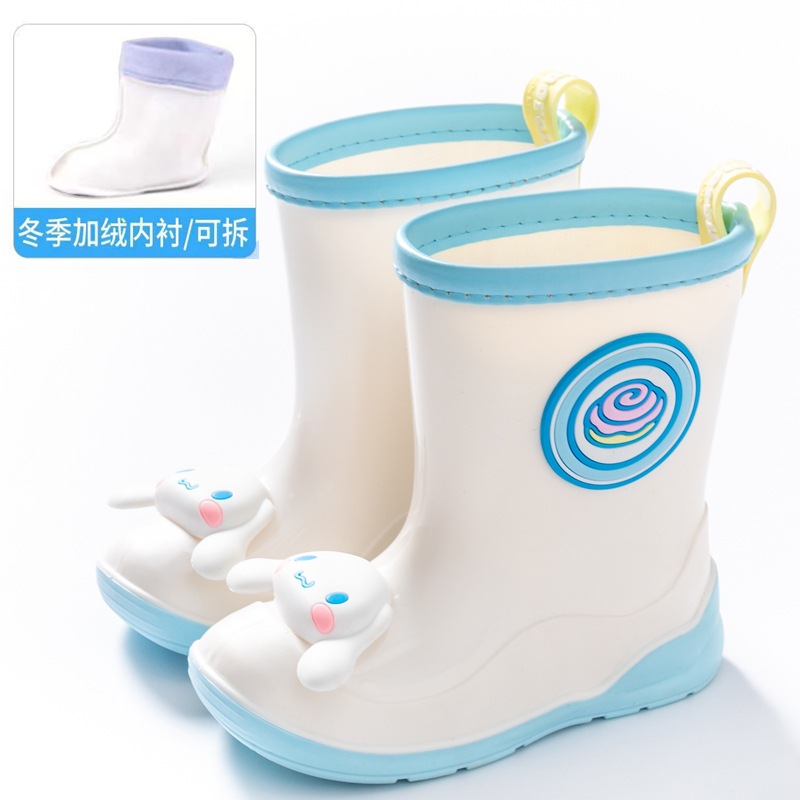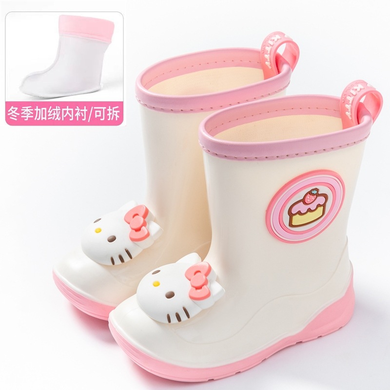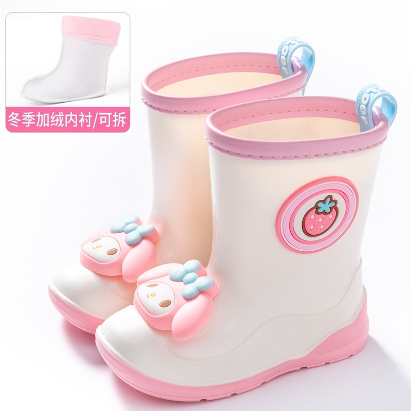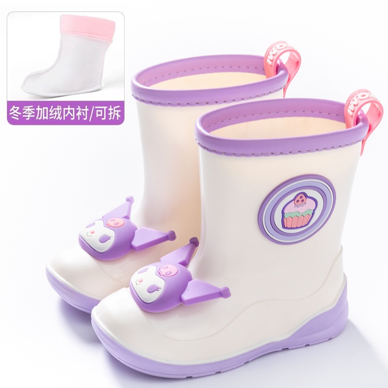 산리오 정품 아동용 레인부츠, 벨벳 안감, 만화 쿠로미 여아 레인부츠, 고무 부츠, 유아 및 어린이용스토어 가기