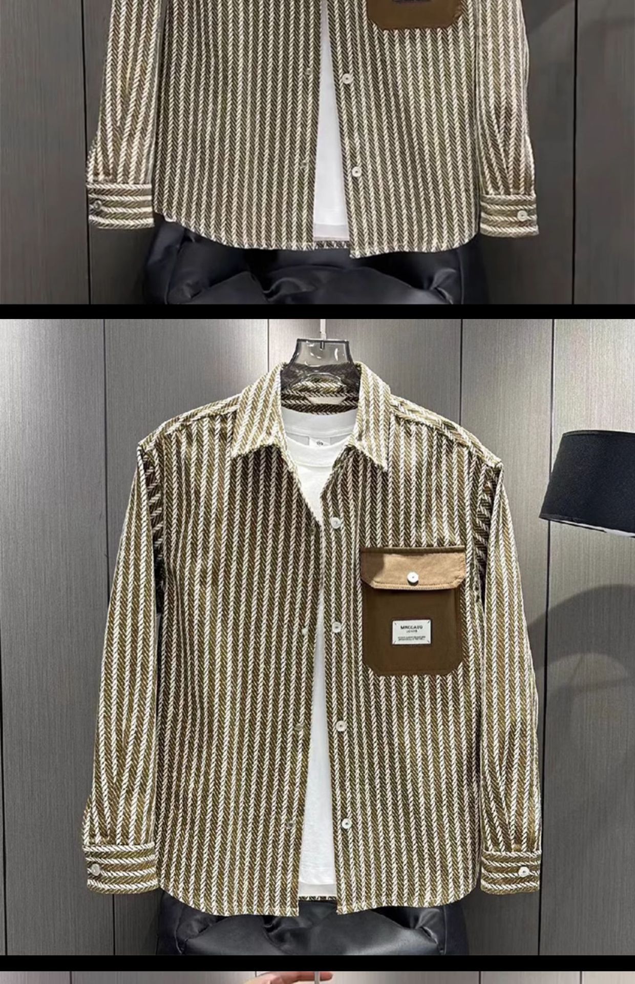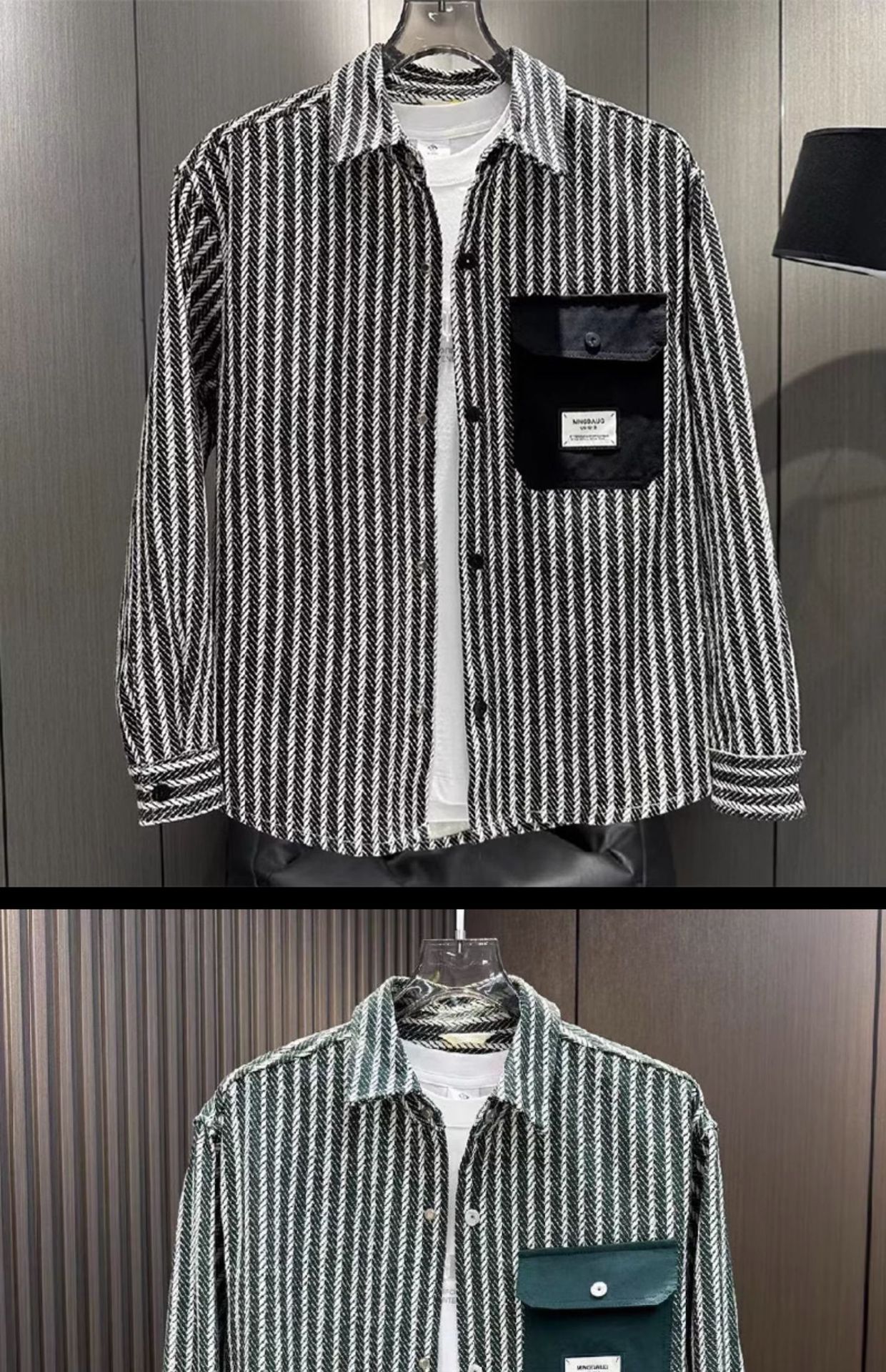 포켓 줄무늬 수제 캐주얼 올 매치 패션 탑 재킷 2024 봄 새로운 패션 브랜드 긴 소매 셔츠 남성