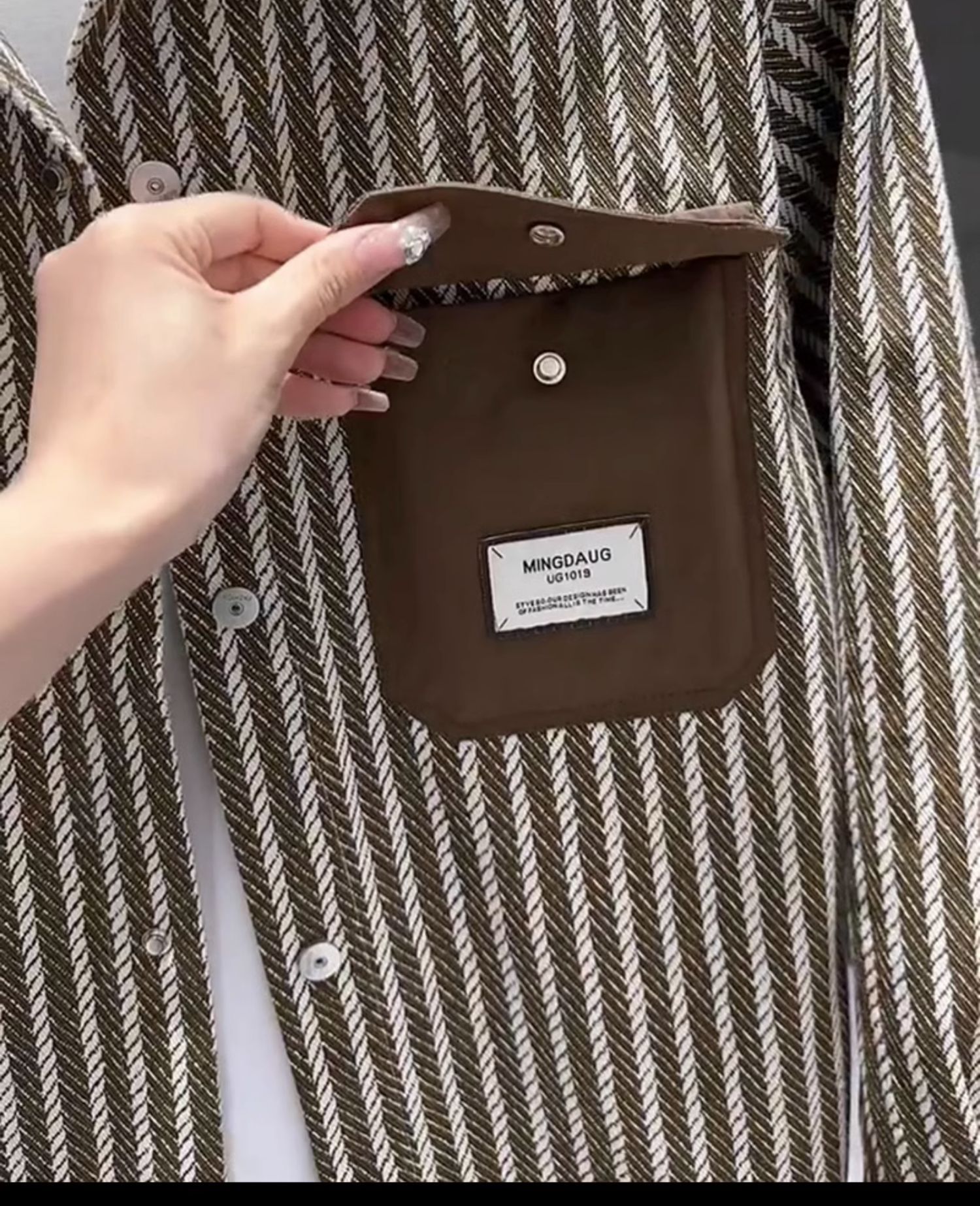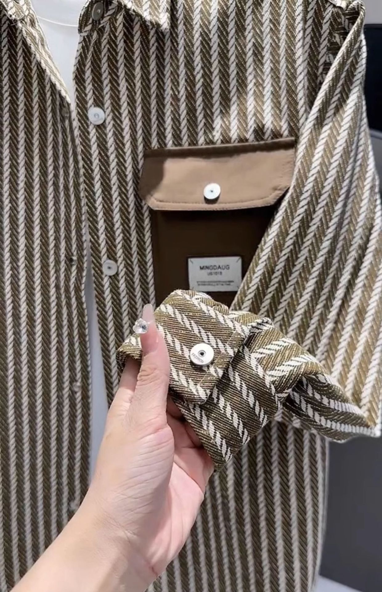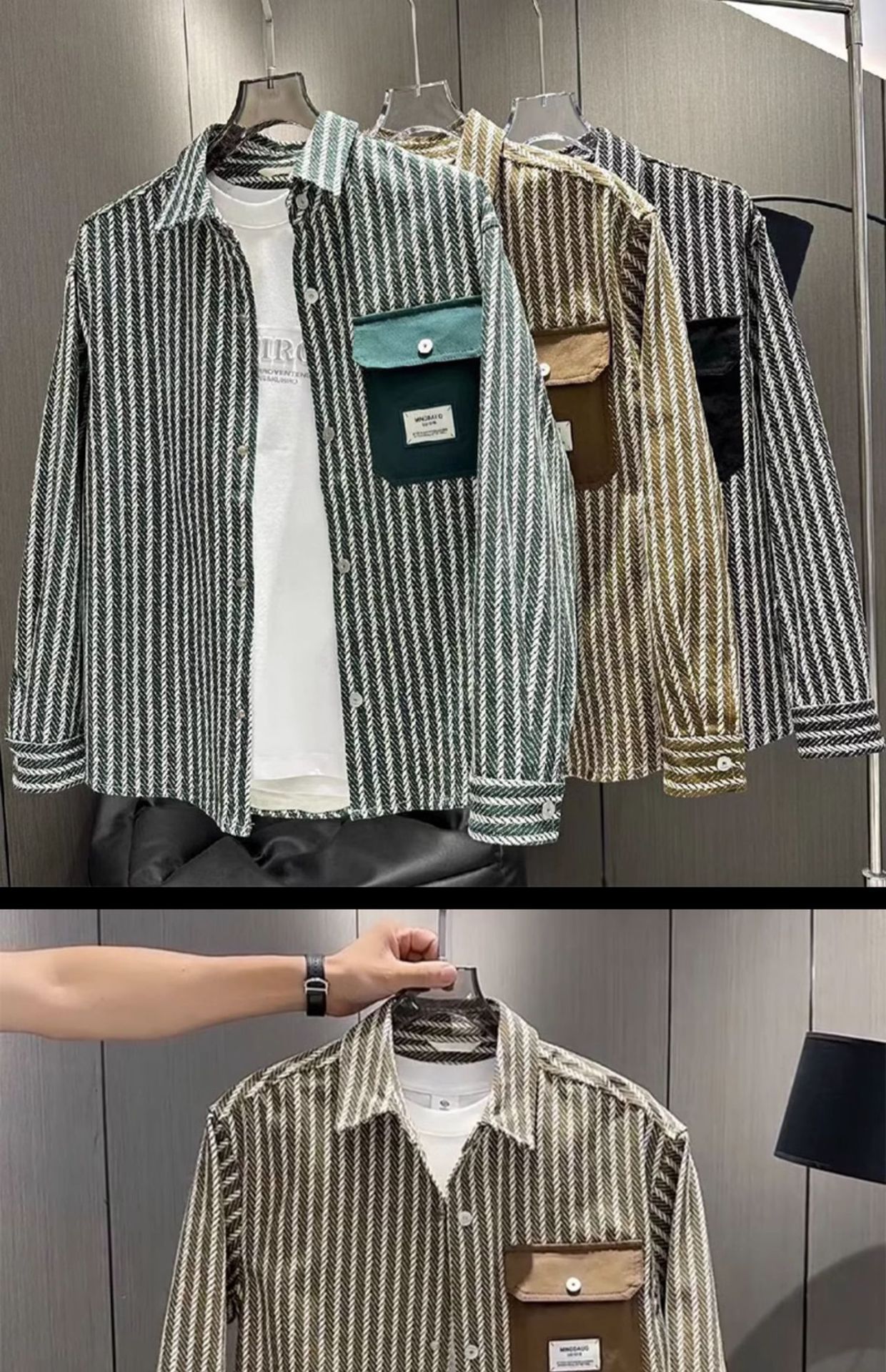 포켓 줄무늬 수제 캐주얼 올 매치 패션 탑 재킷 2024 봄 새로운 패션 브랜드 긴 소매 셔츠 남성스토어 가기