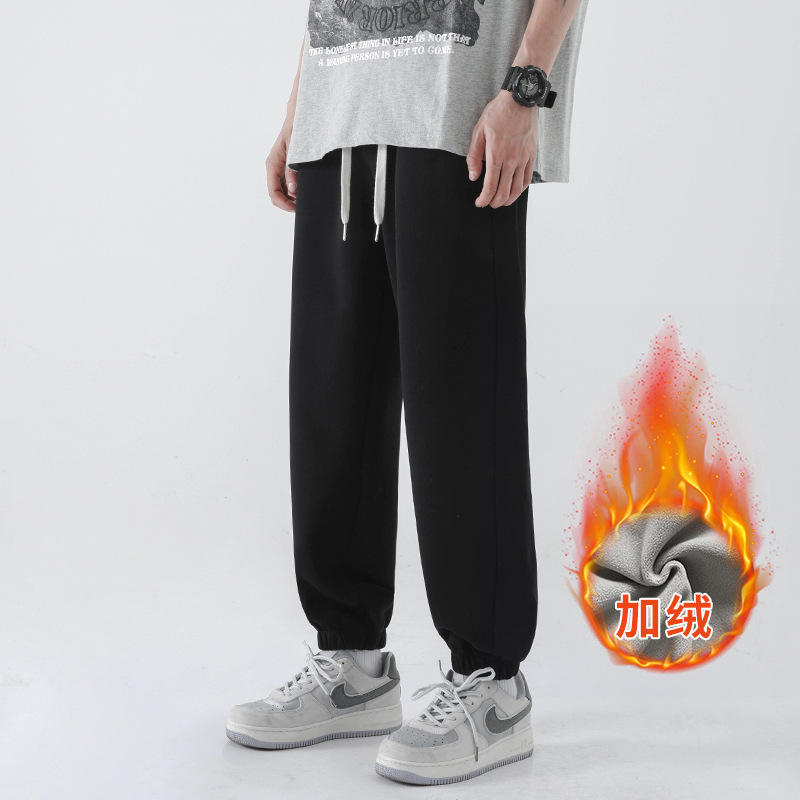 스포츠 바지 남자 겨울 기모 남자 발 바지 남자 가을 겨울 두꺼운 운동복 2024 새로운 캐주얼 바지 남자스토어 가기