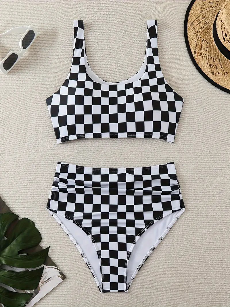 2024 국경을 넘나 드는 유럽과 미국의 섹시한 체커 보드 간단한 쪼개진 비키니 수영복 여성용 온천 물살 수영복스토어 가기
