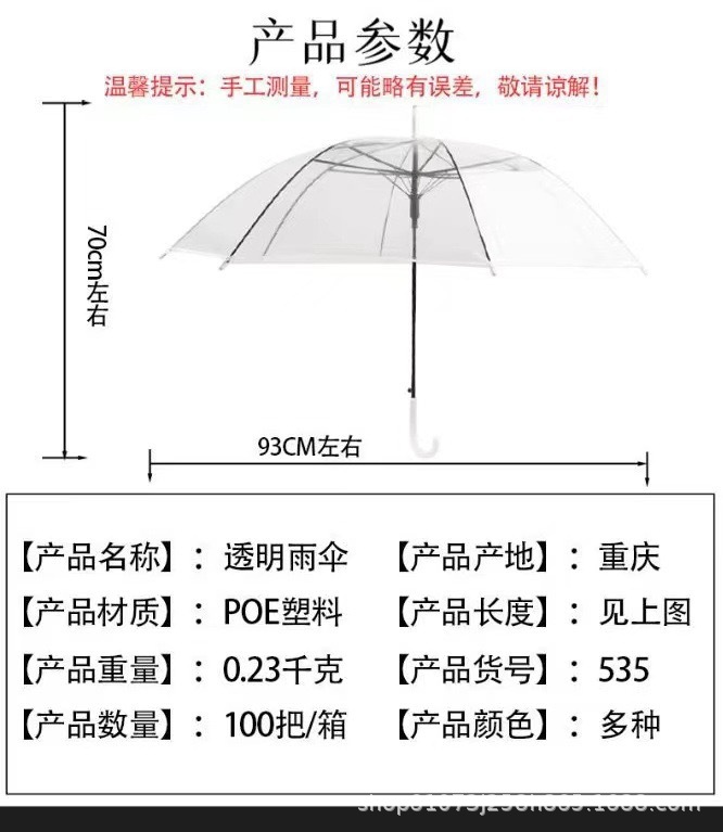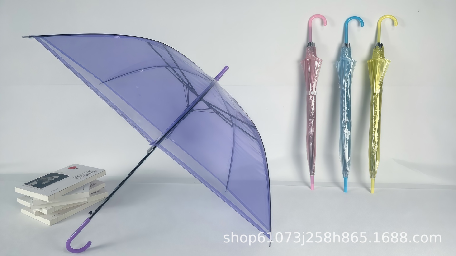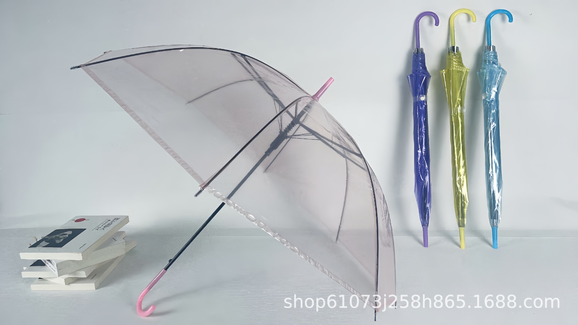 투명 우산 대형 도매 일회용 플라스틱 우산 자동 도매 투명 우산 긴 손잡이 높은 가치 써니 우산스토어 가기
