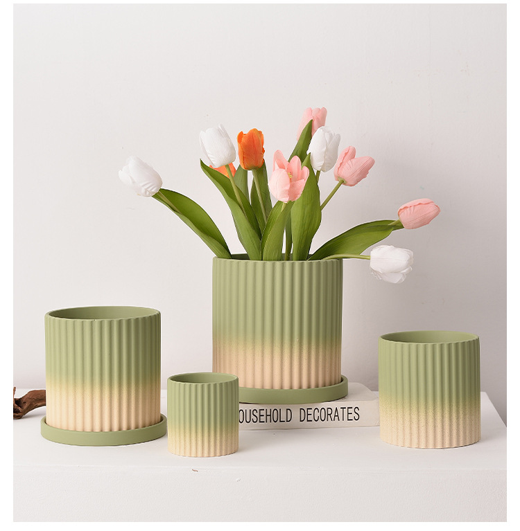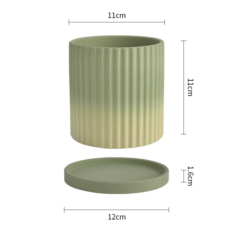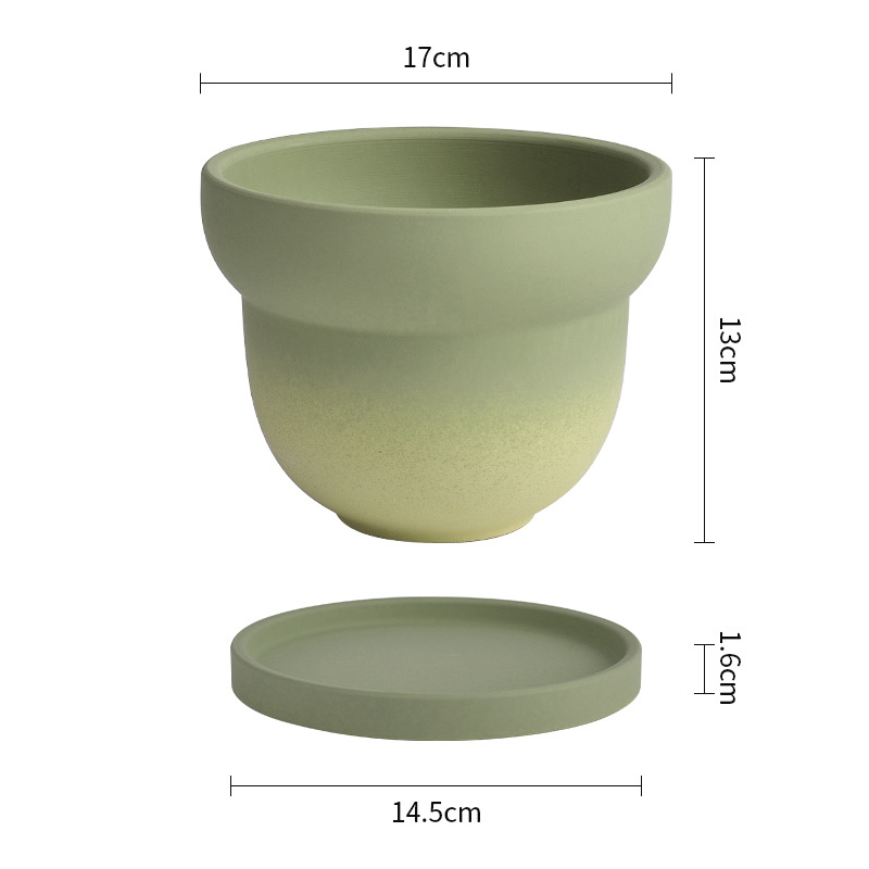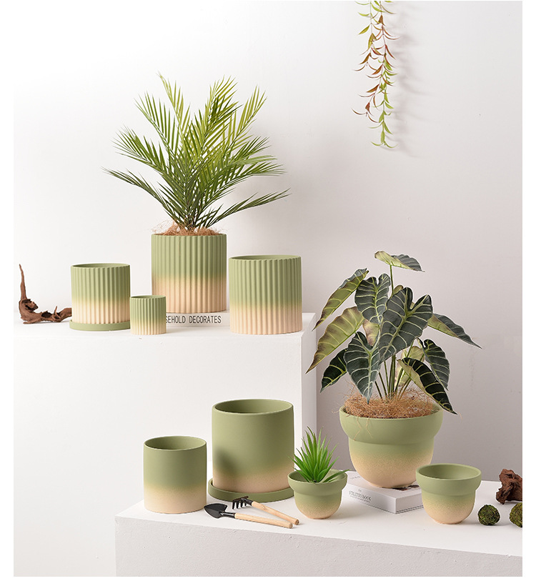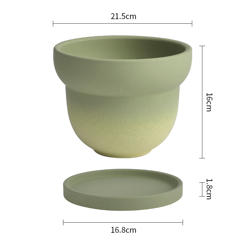북유럽 그라디언트 올리브 그린 세라믹 찐 꽃 냄비 트레이 흡수성 통기성 녹색 식물 꽃 호랑이 껍질 난초