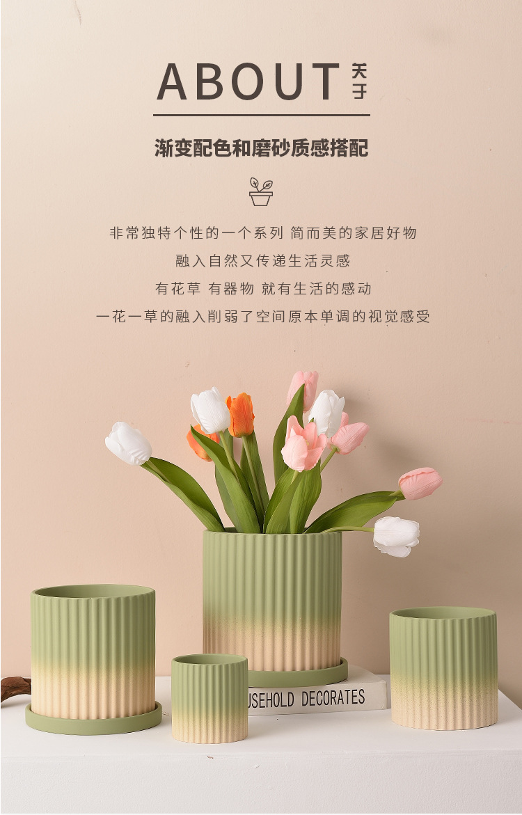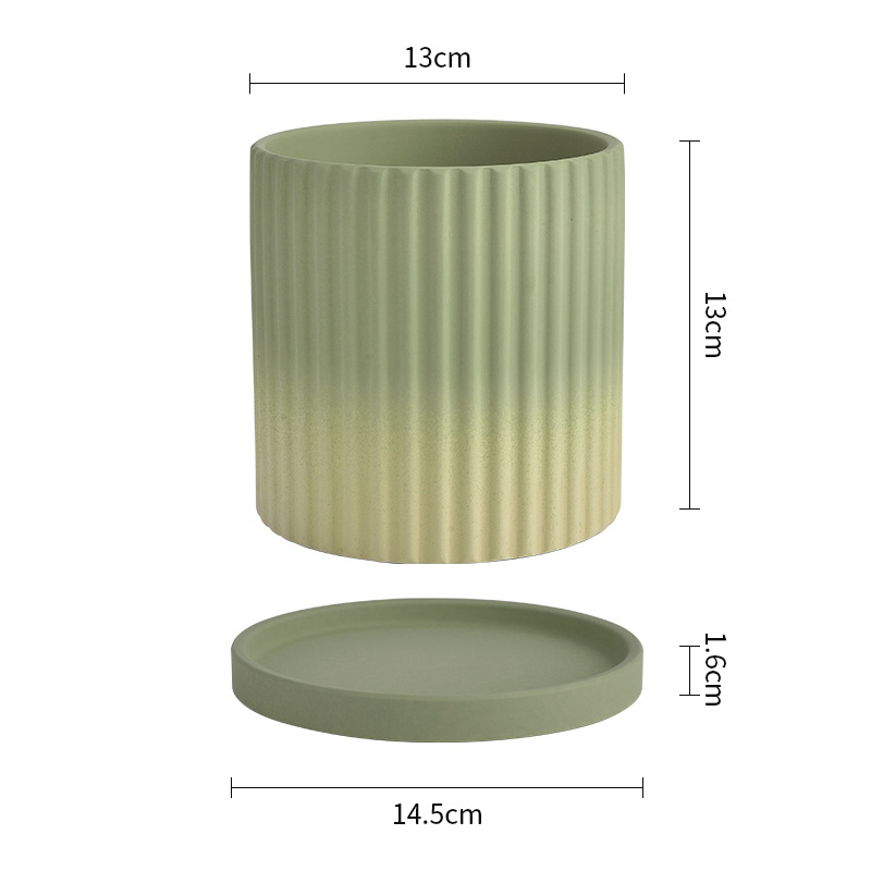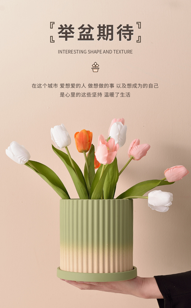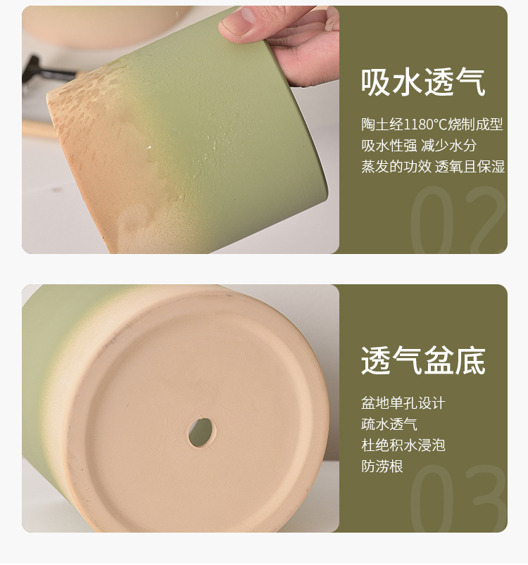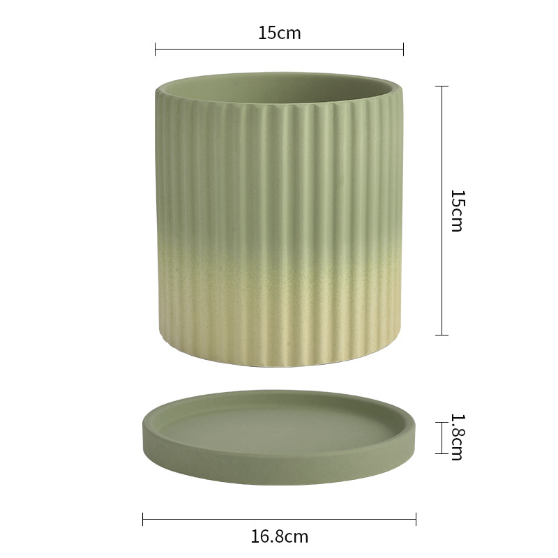 북유럽 그라디언트 올리브 그린 세라믹 찐 꽃 냄비 트레이 흡수성 통기성 녹색 식물 꽃 호랑이 껍질 난초