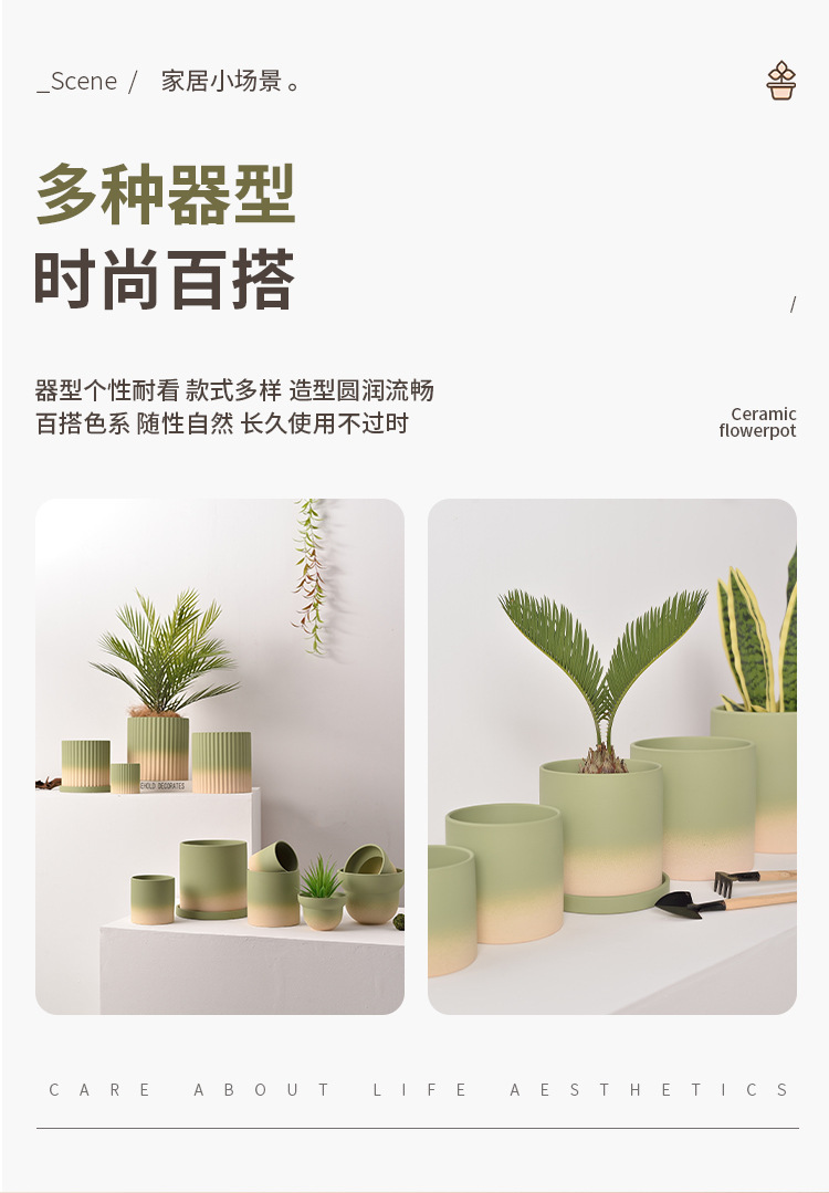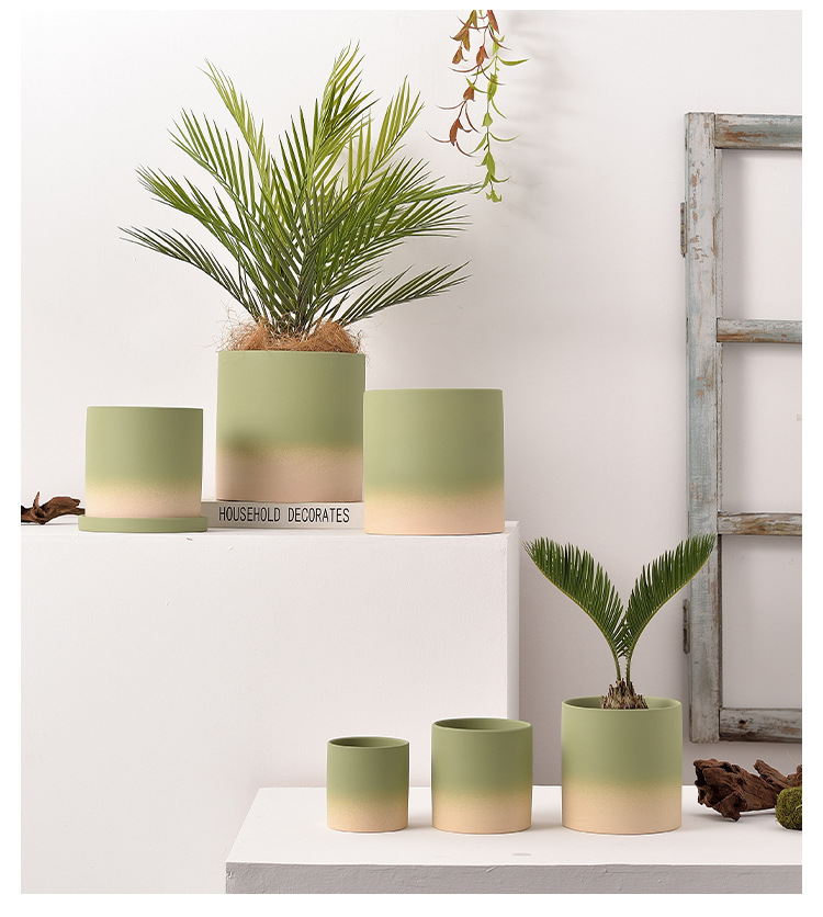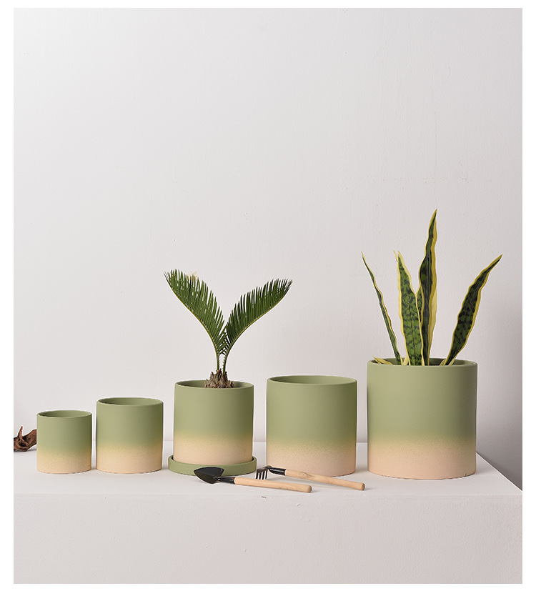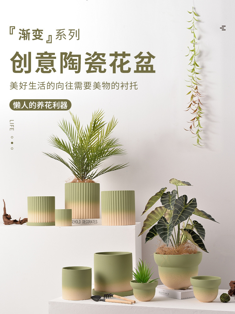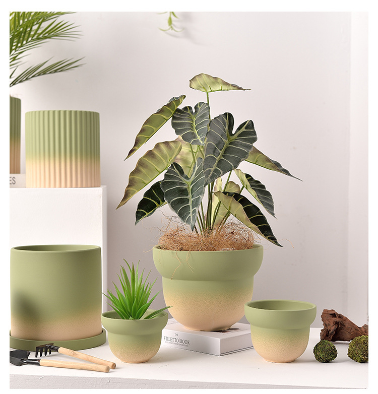 북유럽 그라디언트 올리브 그린 세라믹 찐 꽃 냄비 트레이 흡수성 통기성 녹색 식물 꽃 호랑이 껍질 난초스토어 가기
