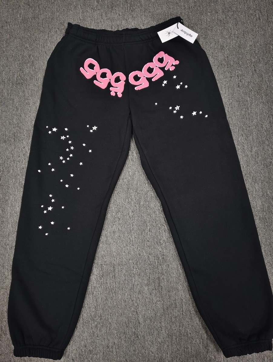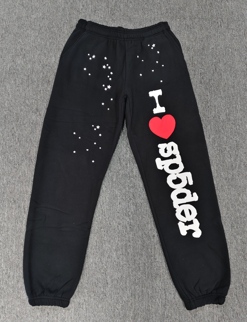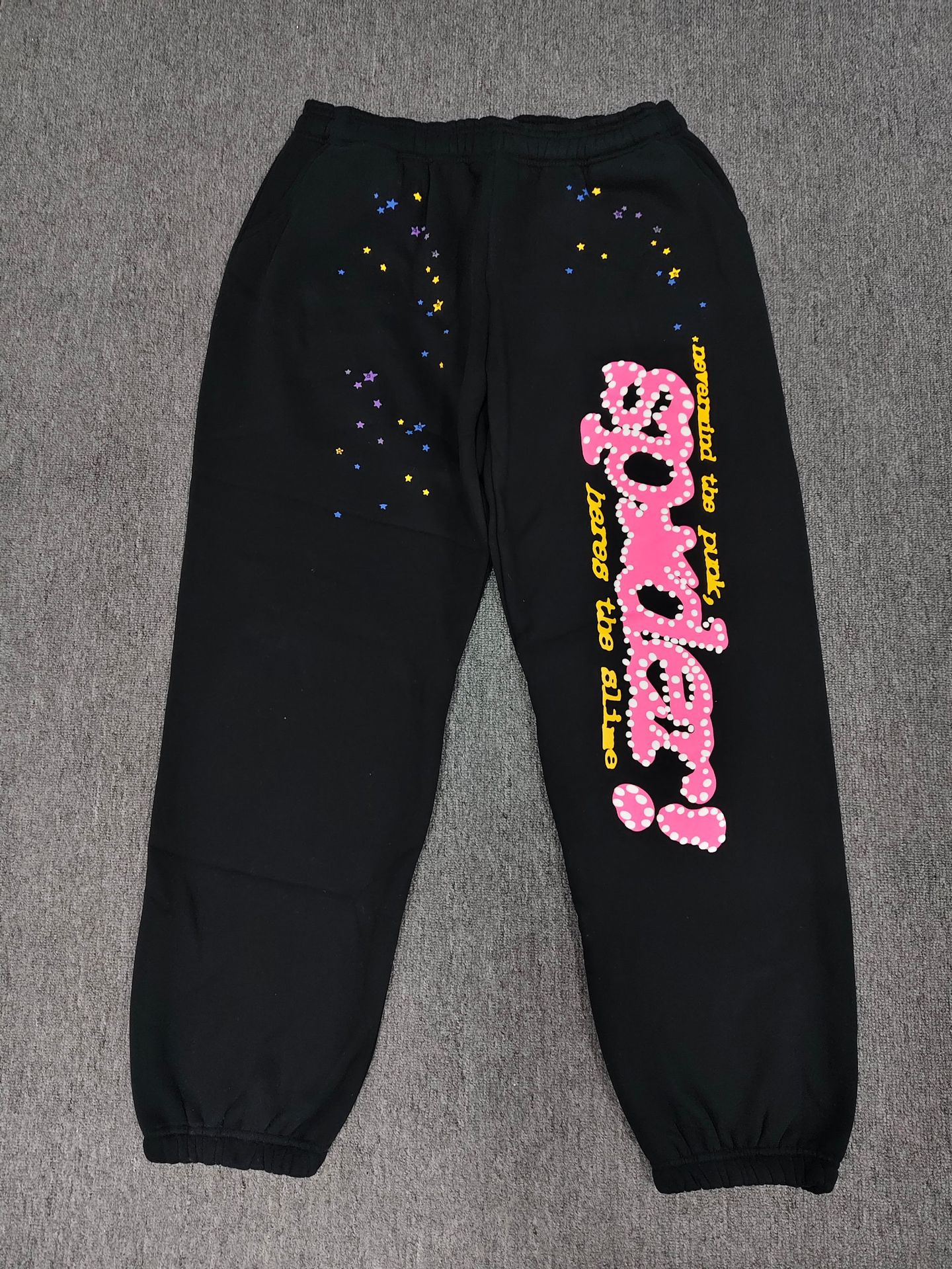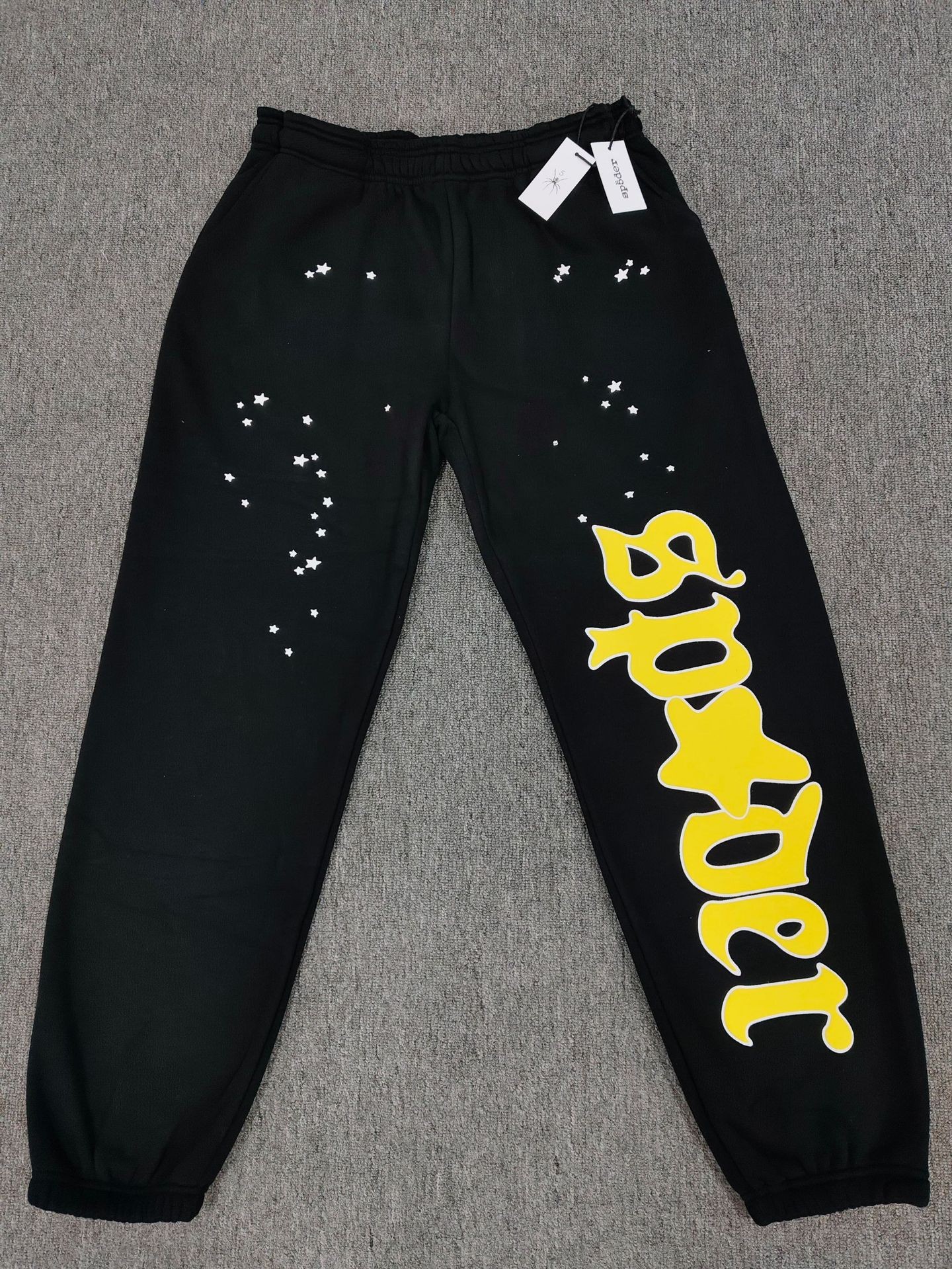 젊은 깡패 미국 패션 브랜드 Sp5DER 555555 스파이더 웹 폼 인쇄 캐주얼 남성과 여성의 땀 바지