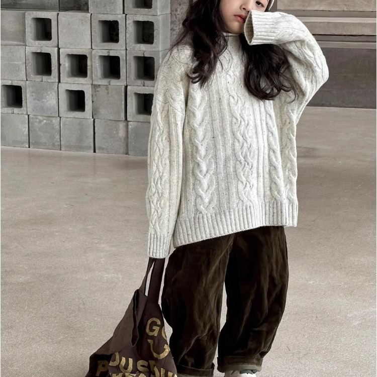 여자 스웨터 겨울 2024 새로운 소녀 풀오버 탑 두꺼운 트위스트 스웨터 어린이 서양식 니트웨어스토어 가기