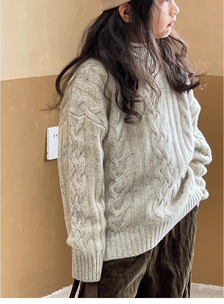 여자 스웨터 겨울 2024 새로운 소녀 풀오버 탑 두꺼운 트위스트 스웨터 어린이 서양식 니트웨어