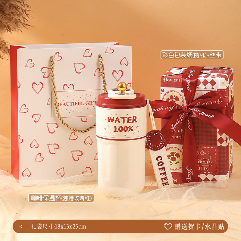 • 레드 선물 상자 모델 [독특한 로즈 레드 스마트 온도 디스플레이 컵] + 커피 + 핸드 워머 + 핸드 크림