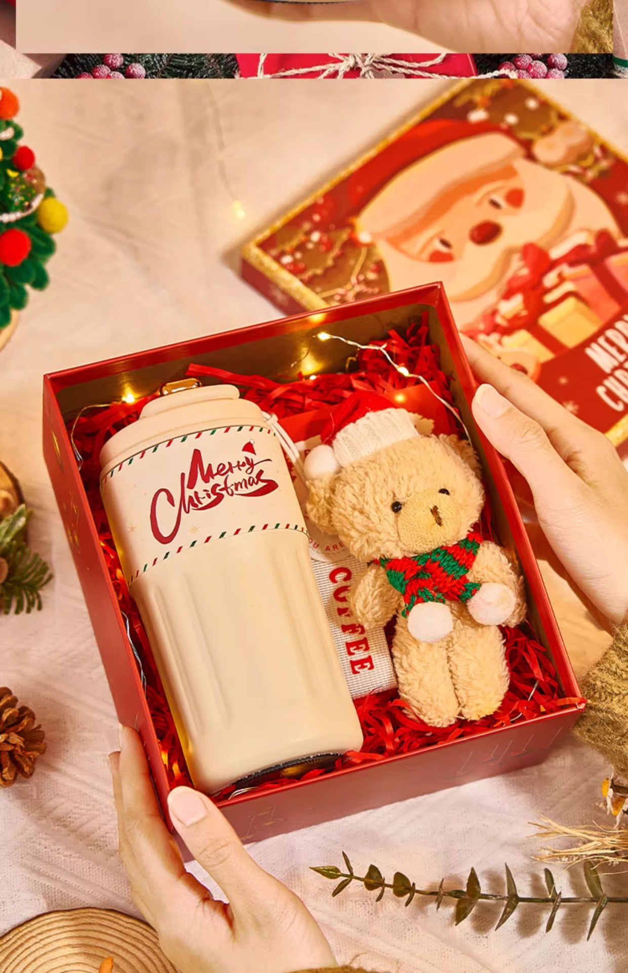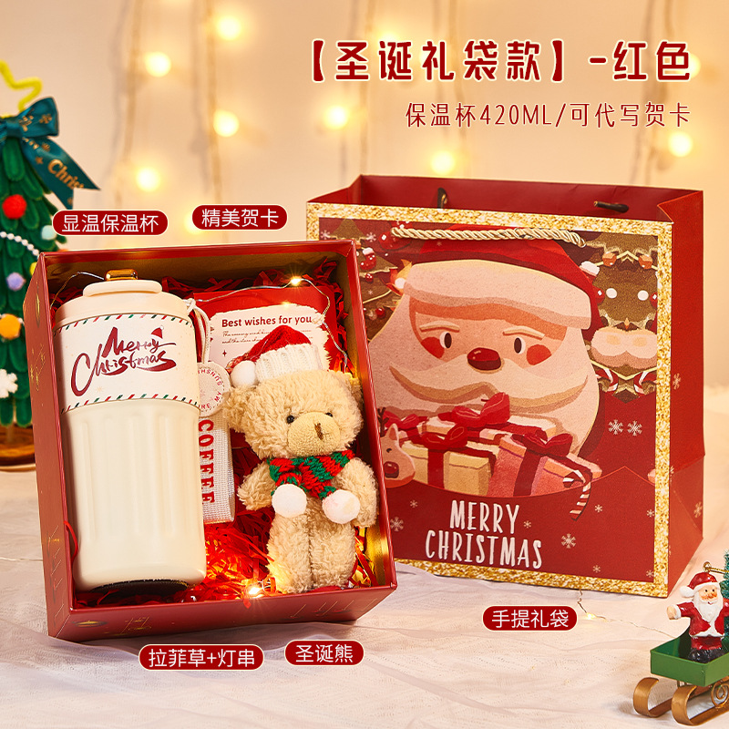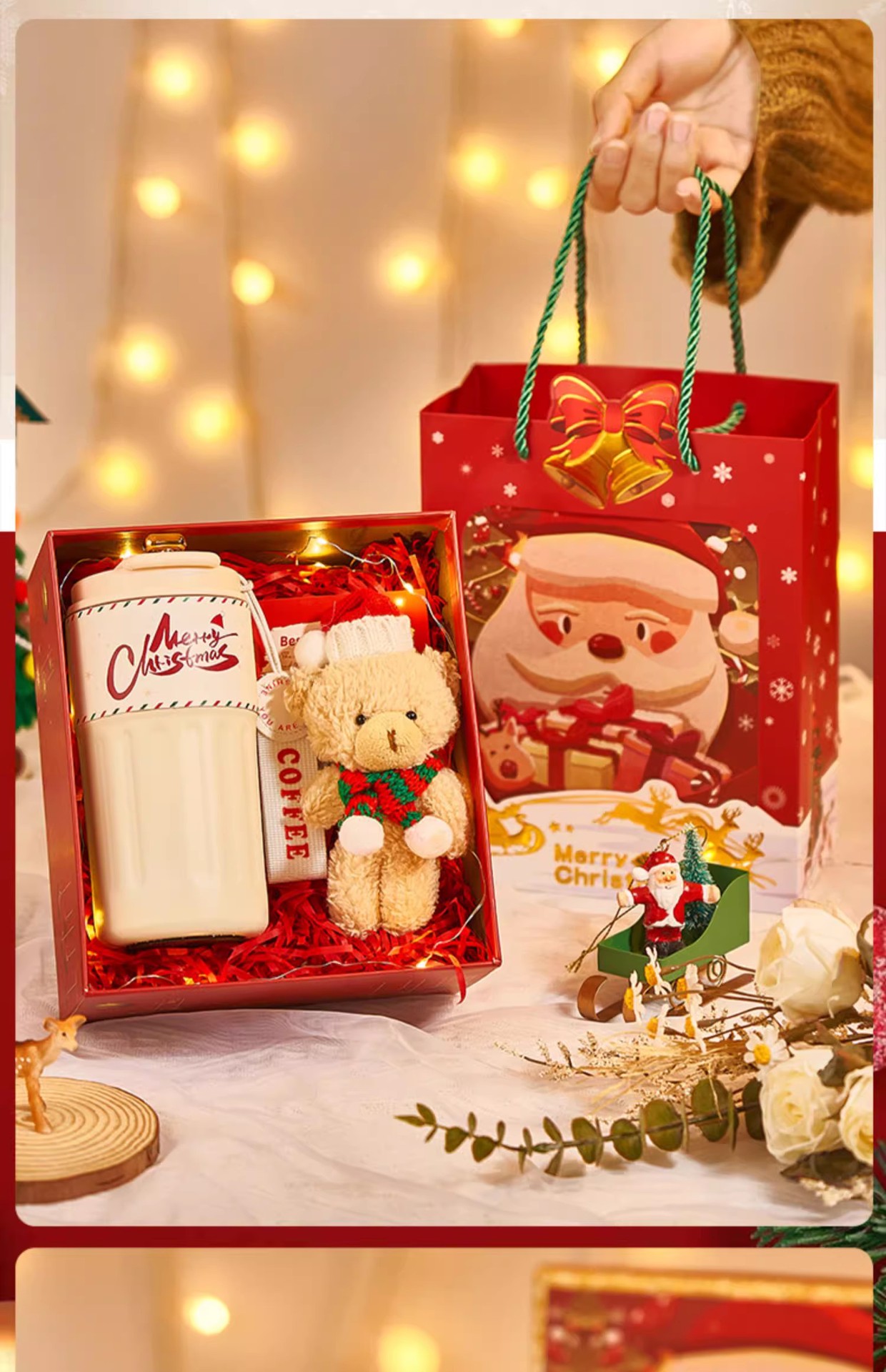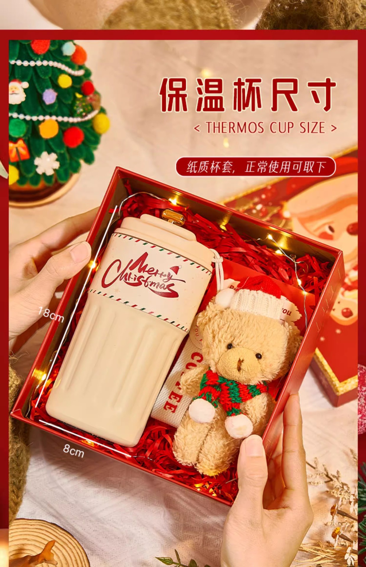 • 크리스마스 선물 상자 선물 가방 + 인형 + 축하 카드 [우아한 흰색 보온병 컵]