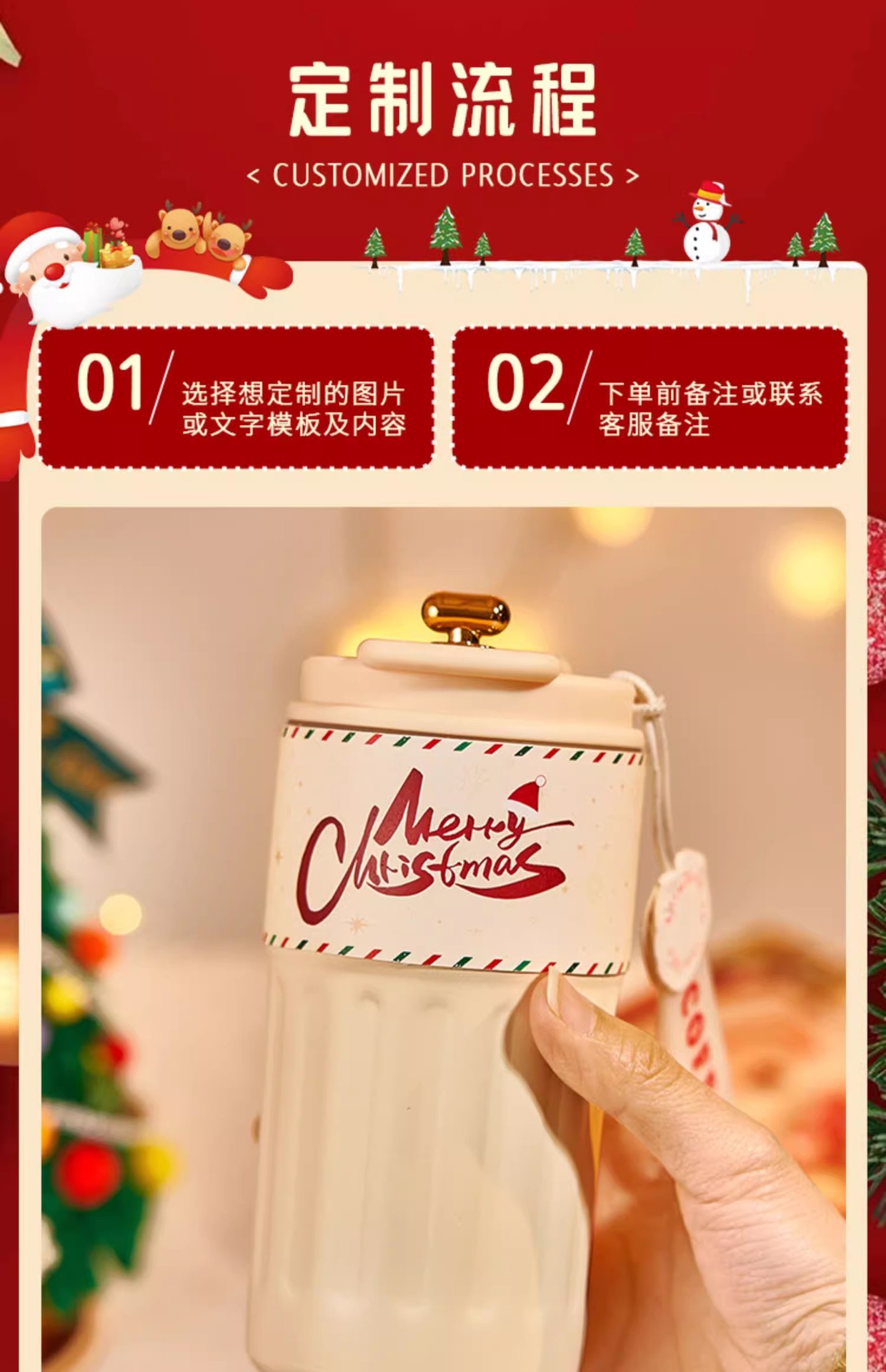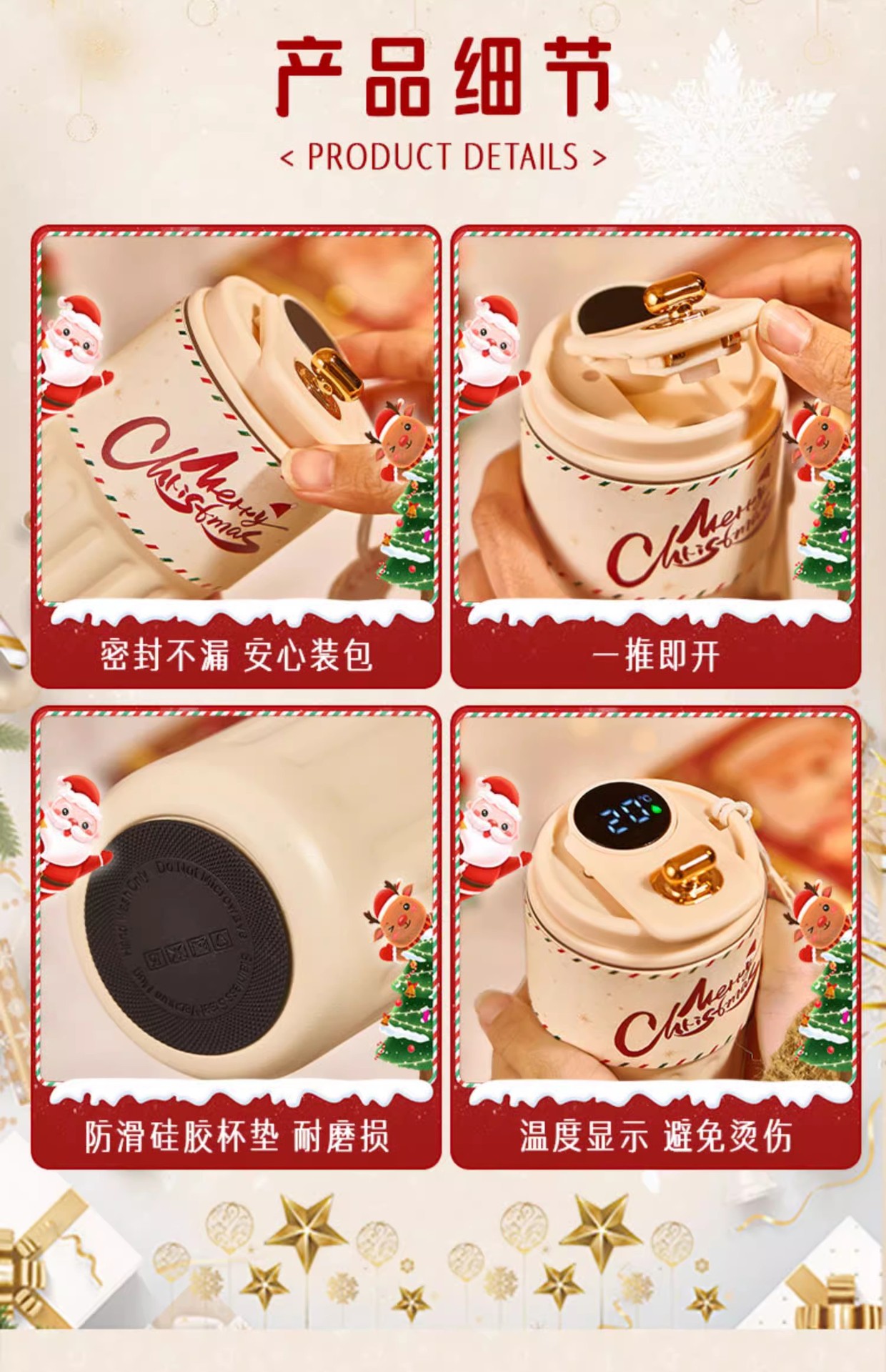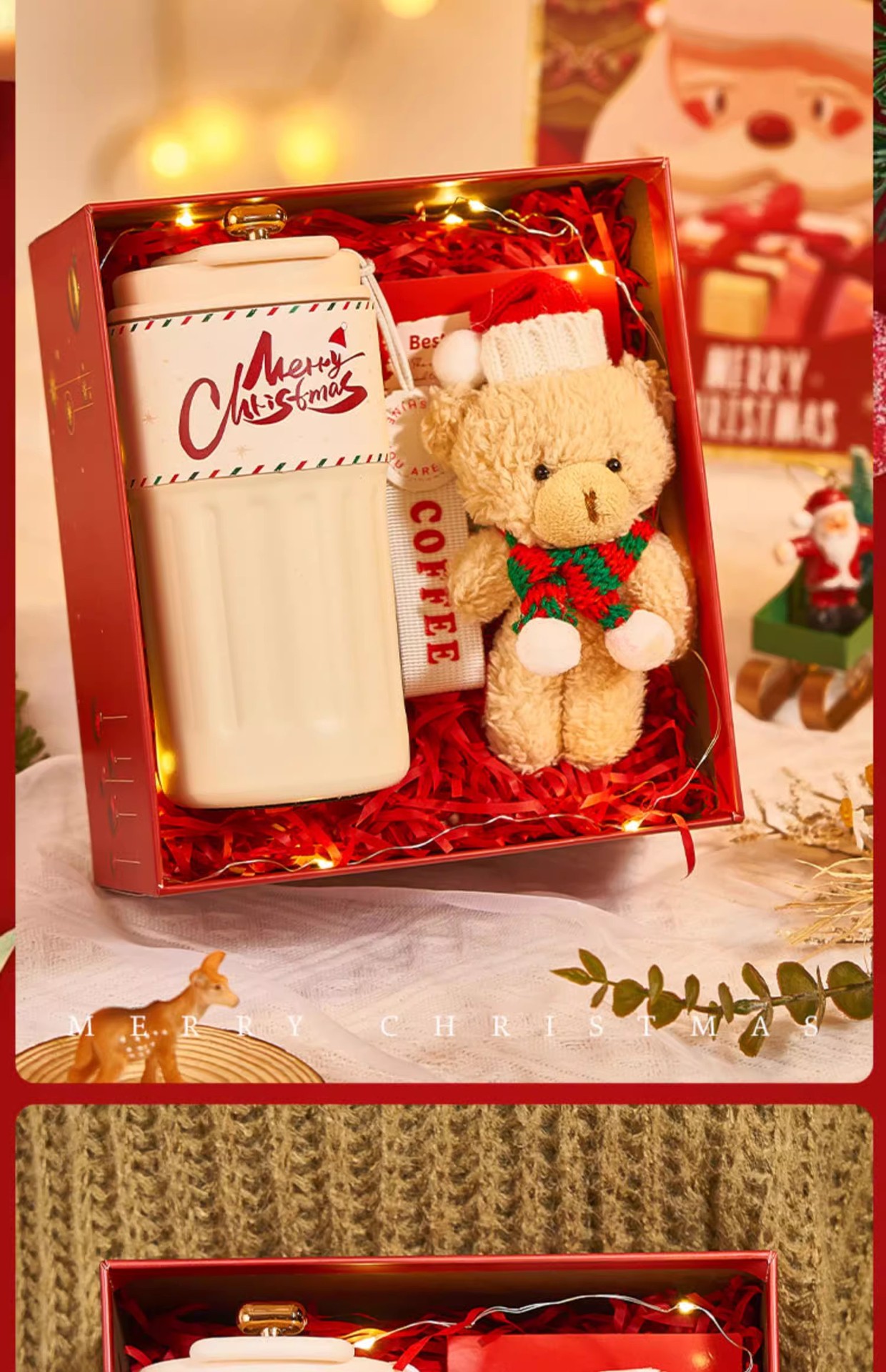 • 크리스마스 선물 상자 선물 가방 + 인형 + 축하 카드 [우아한 흰색 보온병 컵]