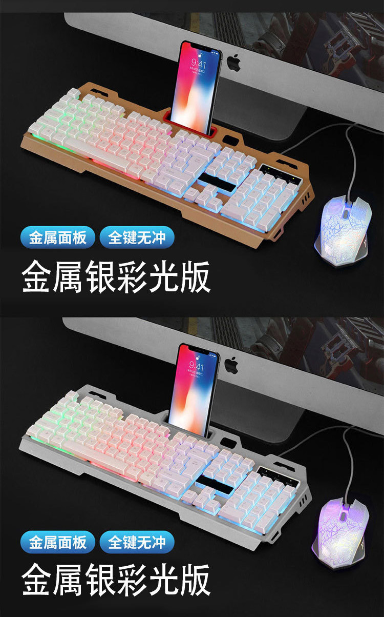 재고 직접 판매 키보드 및 마우스 세트 발광 키보드 전자 스포츠 키 게임 마우스 USB 기계적 느낌 키 캡