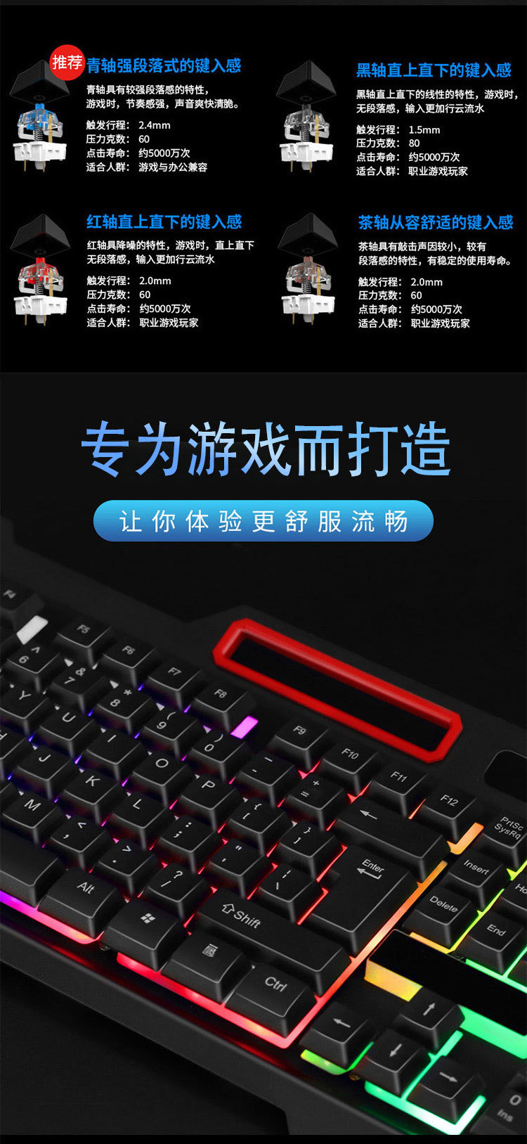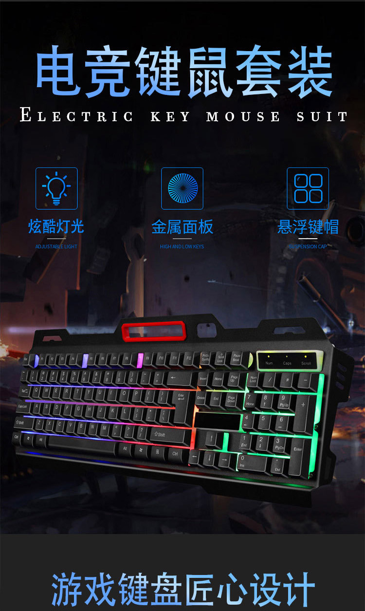 재고 직접 판매 키보드 및 마우스 세트 발광 키보드 전자 스포츠 키 게임 마우스 USB 기계적 느낌 키 캡스토어 가기