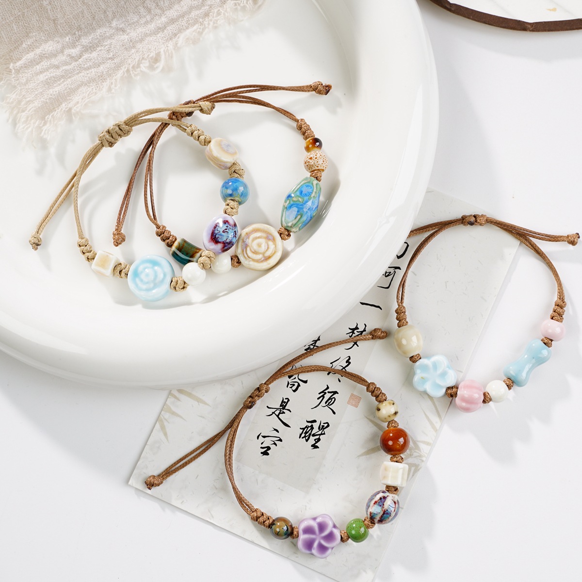 도자기 세트 세라믹 손 로프 문학과 예술 국가 스타일 고대 스타일 손으로 짠 조커 새로운 중국 팔찌 도매스토어 가기