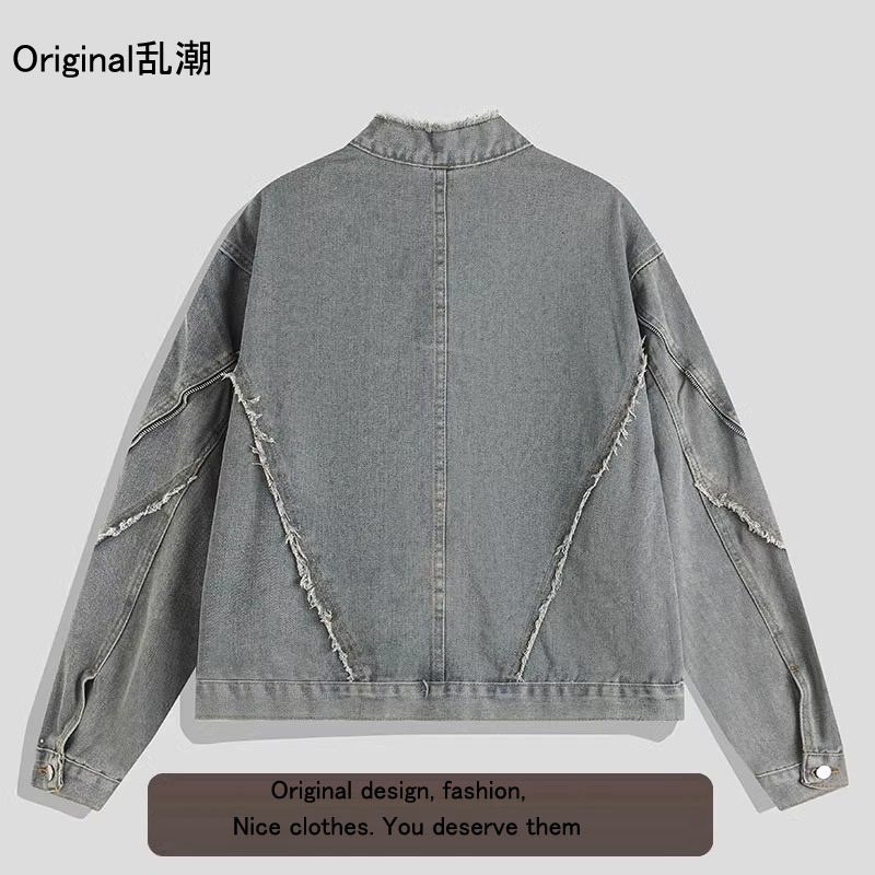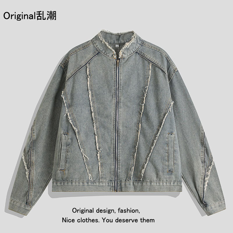 아메리칸 스타일 빈티지 녹 씻기 데님 재킷 남자 봄과 가을 짧은 오토바이 스타일 무대 칼라 핸섬 자켓 트렌디스토어 가기