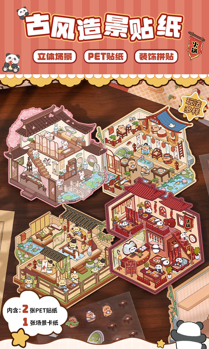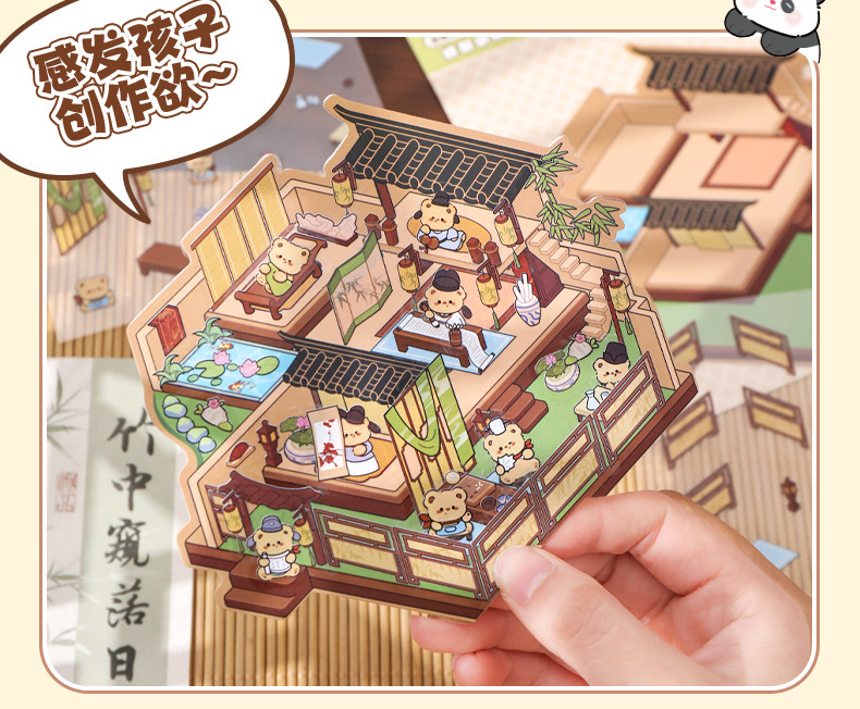 크리 에이 티브 고대 스타일 조경 스티커 미니어처 장면 3D 입체 오두막 재미있는 diy 퍼즐 스토리지 핸드북 스티커 도서