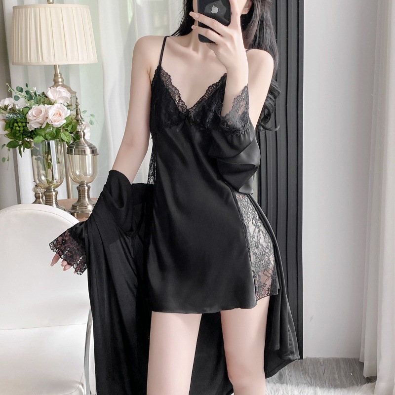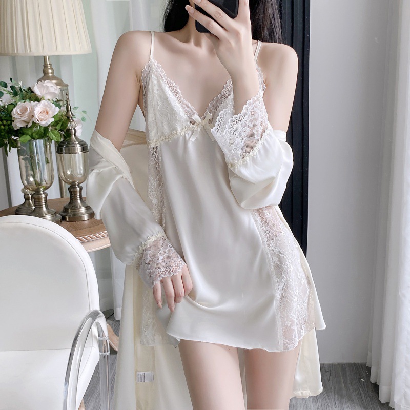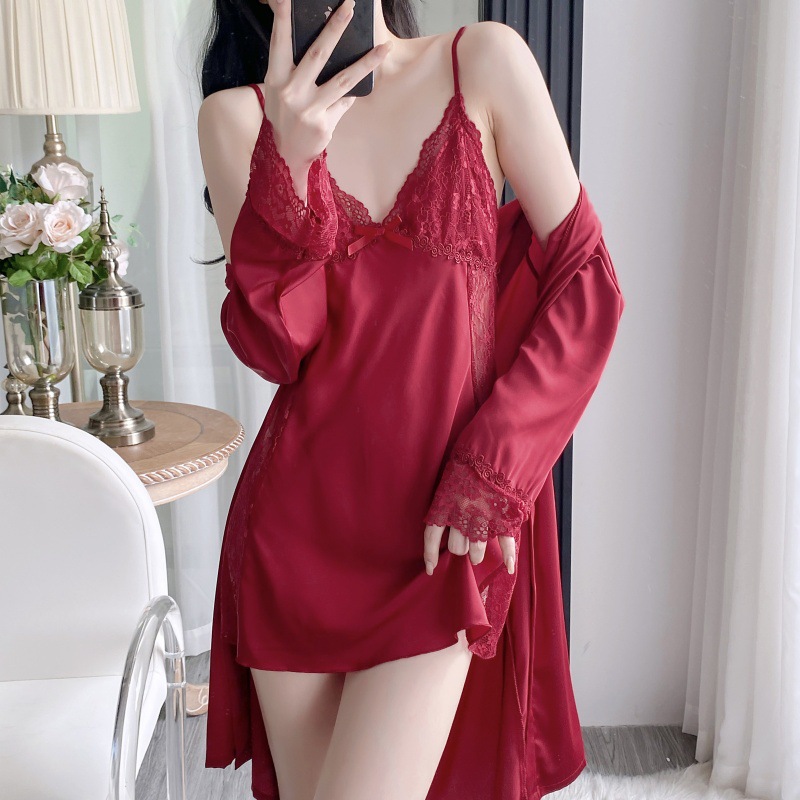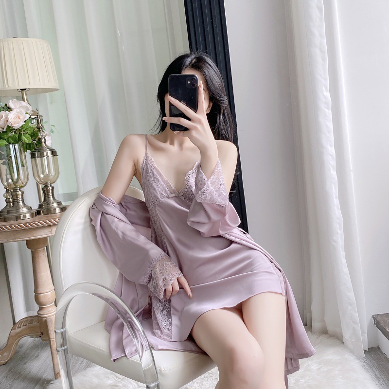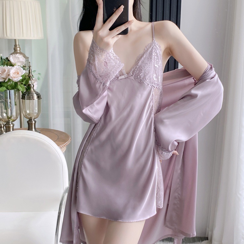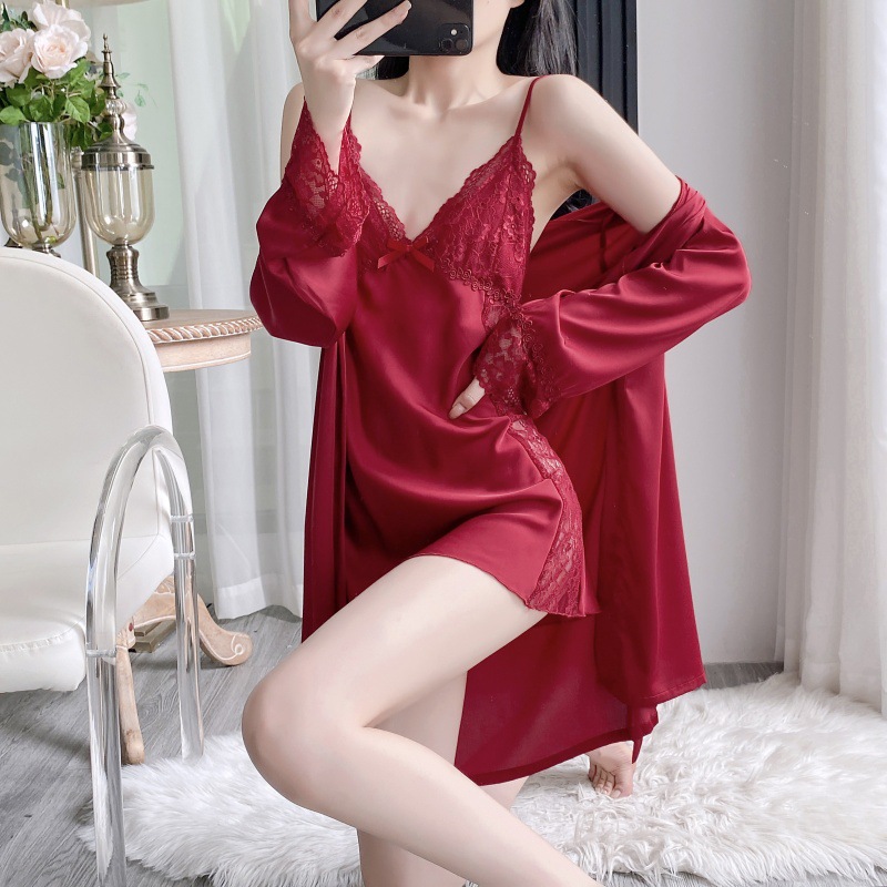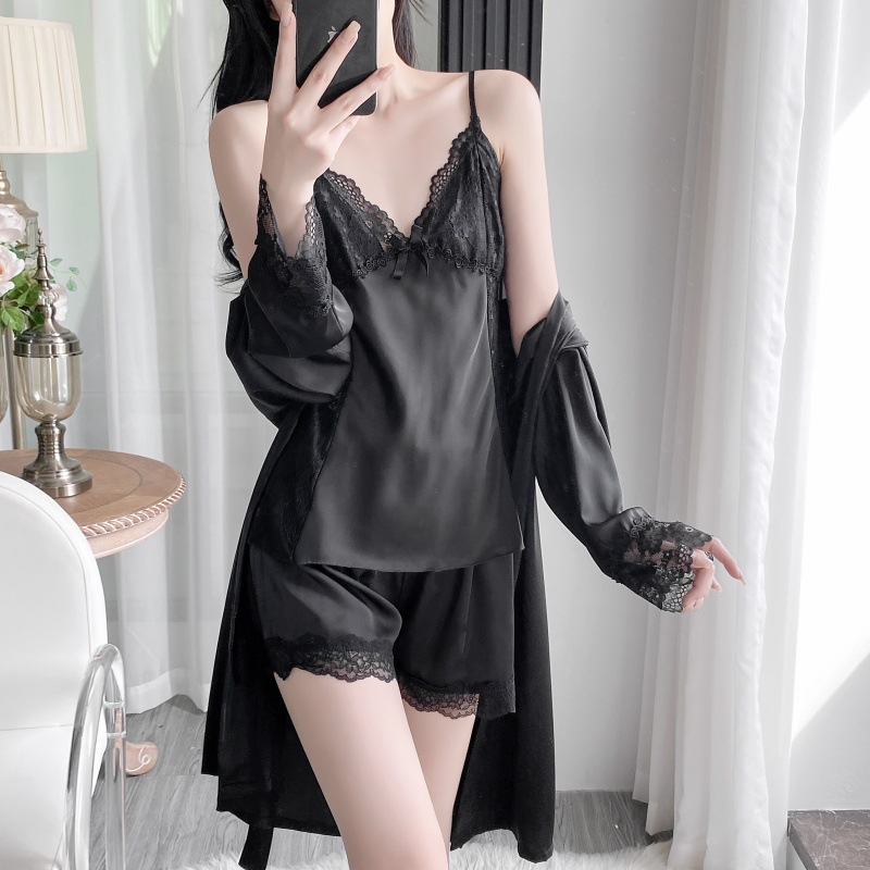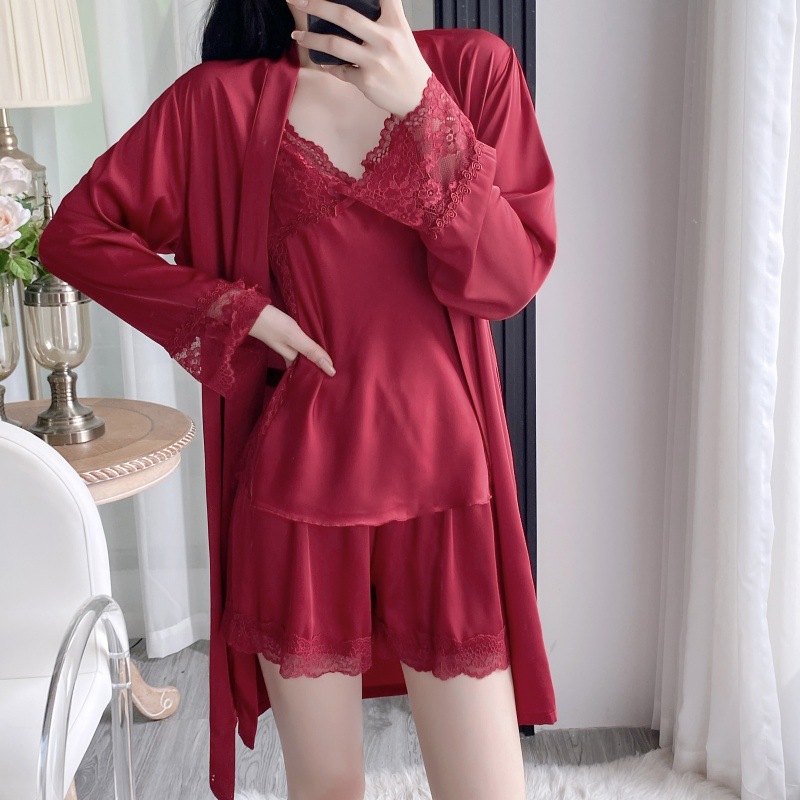 공장 도매 잠옷 여성 여름 얇은 유방 패드 아이스 실크 모조 실크 잠옷 여성 멜빵 4 피스 홈 의류스토어 가기