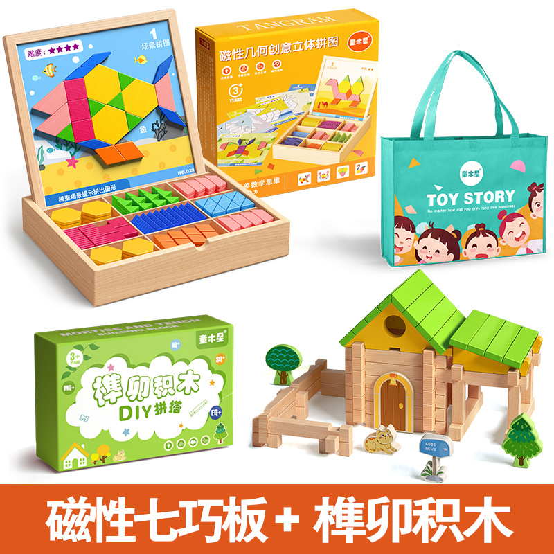 • 자석 칠교놀이 + 장붓구멍과 장부 빌딩 블록 하우스/선물 가방