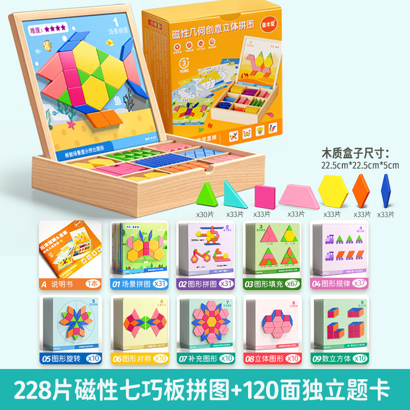 • 자기 칠교판 퍼즐 [228개의 조각으로 2800개 이상의 그래픽 조립 가능 + 120페이지의 질문 카드 + 창의적인 조립 질문 책]