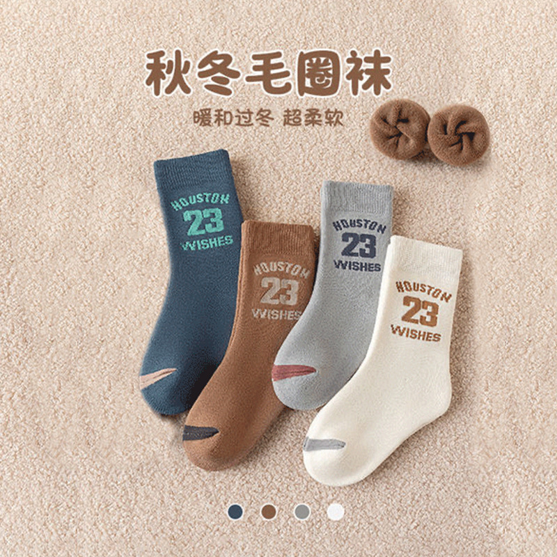 소년 양말 겨울 기모 두꺼운 미드 튜브 양말 대형 어린이 영어 디지털 다크 브라운 단색 따뜻한 양말스토어 가기