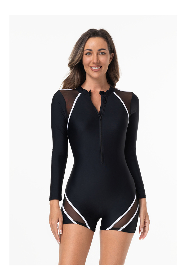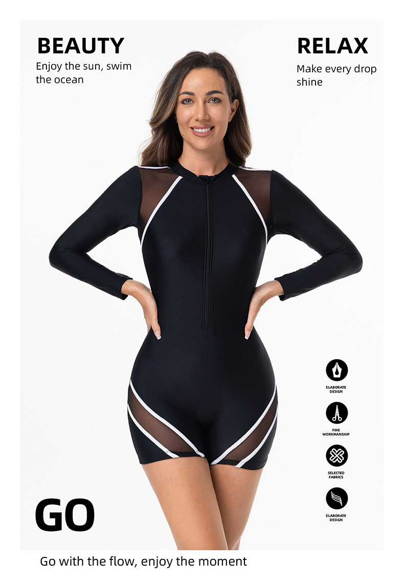 유럽과 미국의 원피스 수영복 여성 대외 무역 긴 소매 서핑 세트 지퍼 플랫 앵글 다이빙 세트 스포츠 수영복 레이스 접합