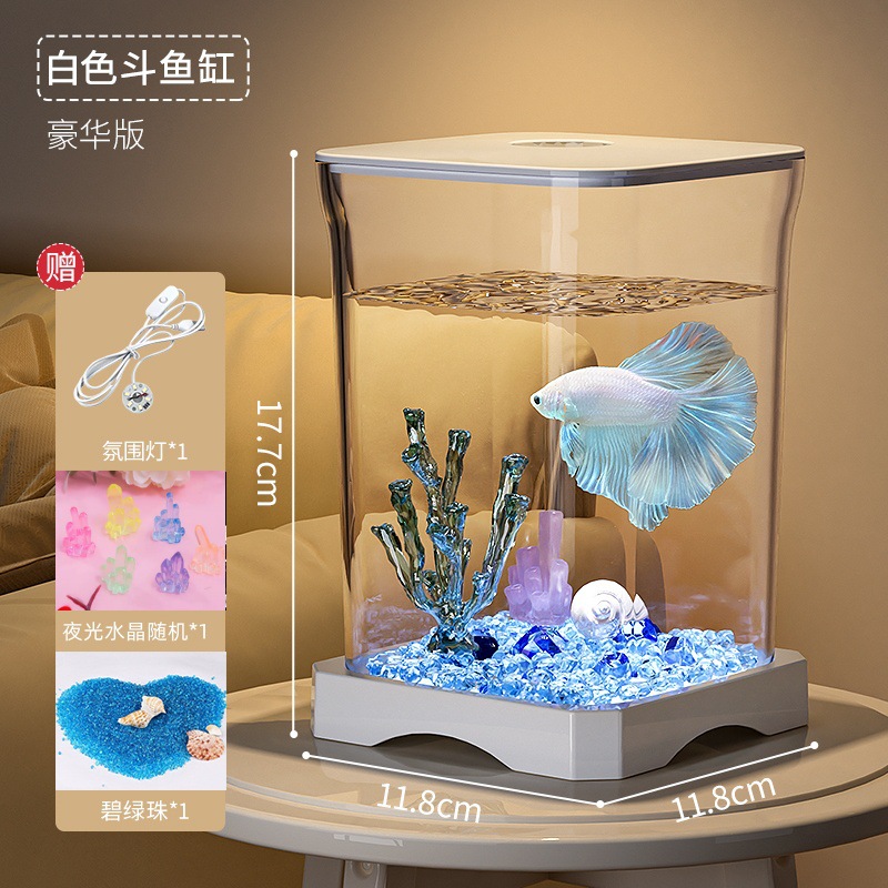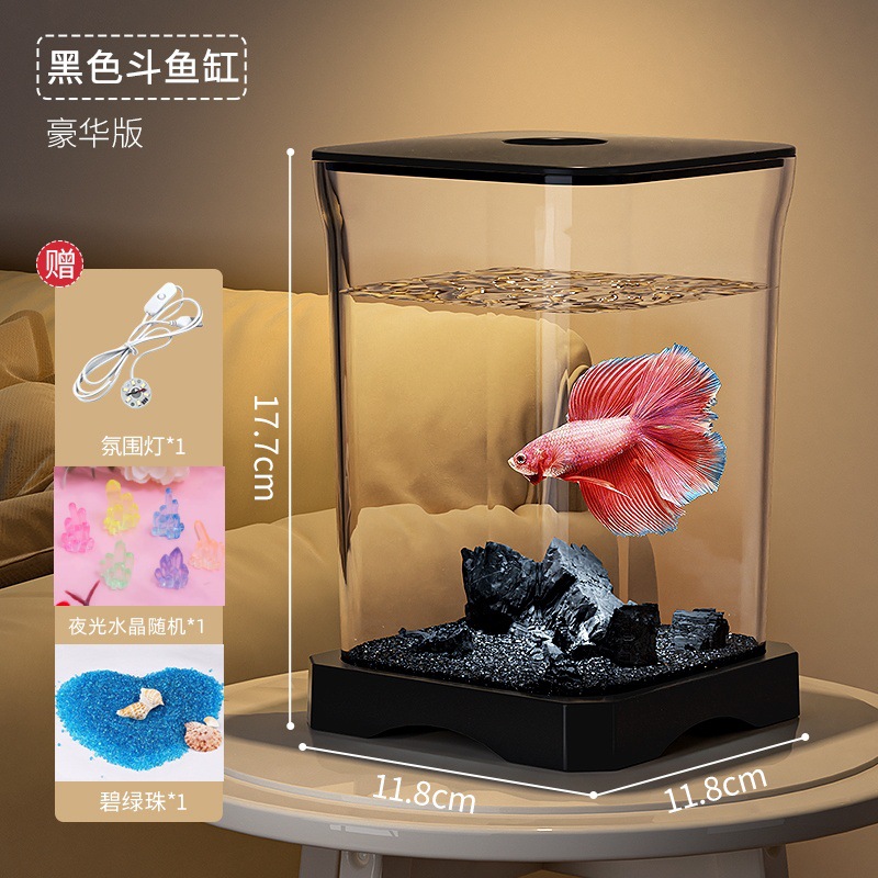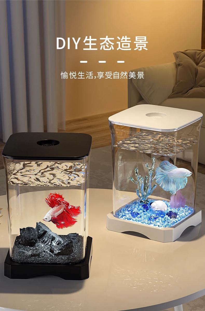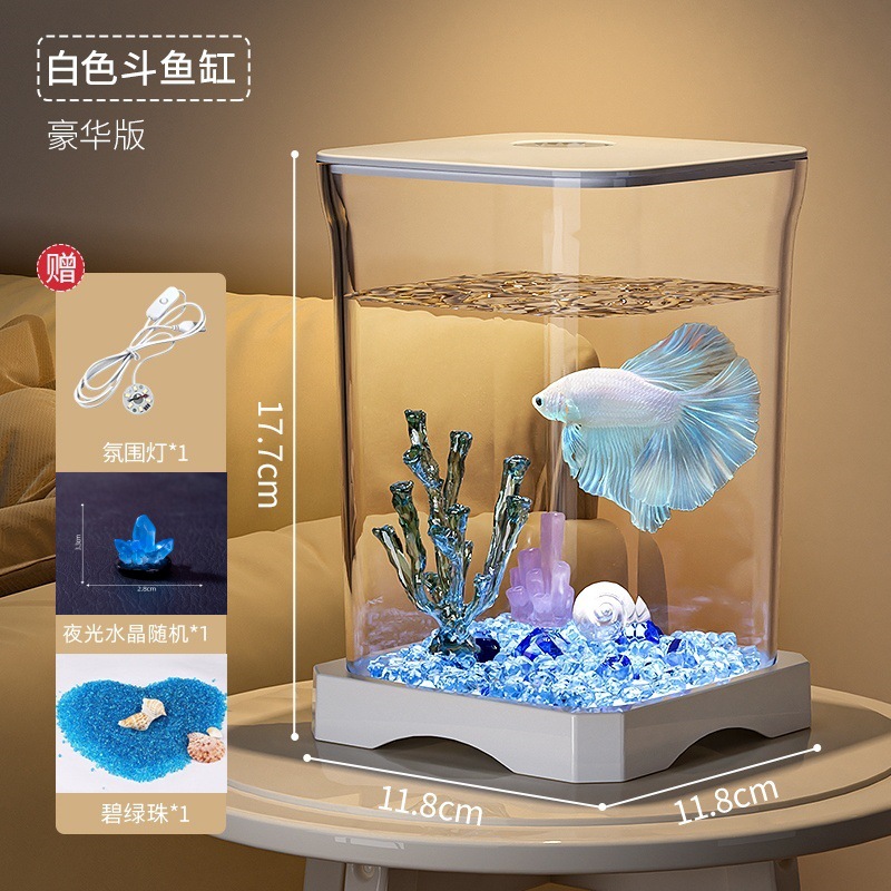 창조적 인 betta 생태 물고기 문화 탱크 작은 온라인 유명 인사 조경 데스크톱 보기 밤 빛 장식 유리 탱크