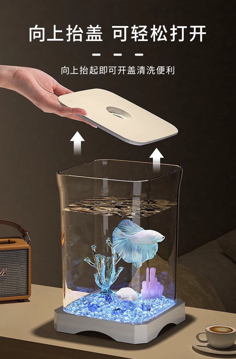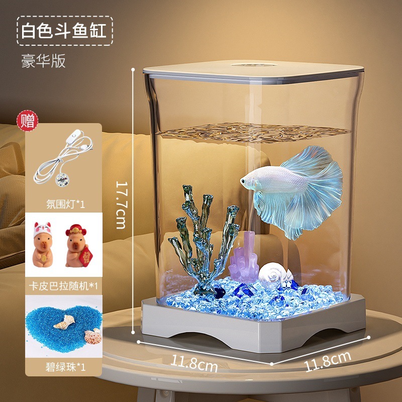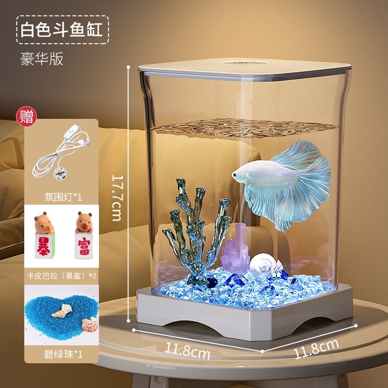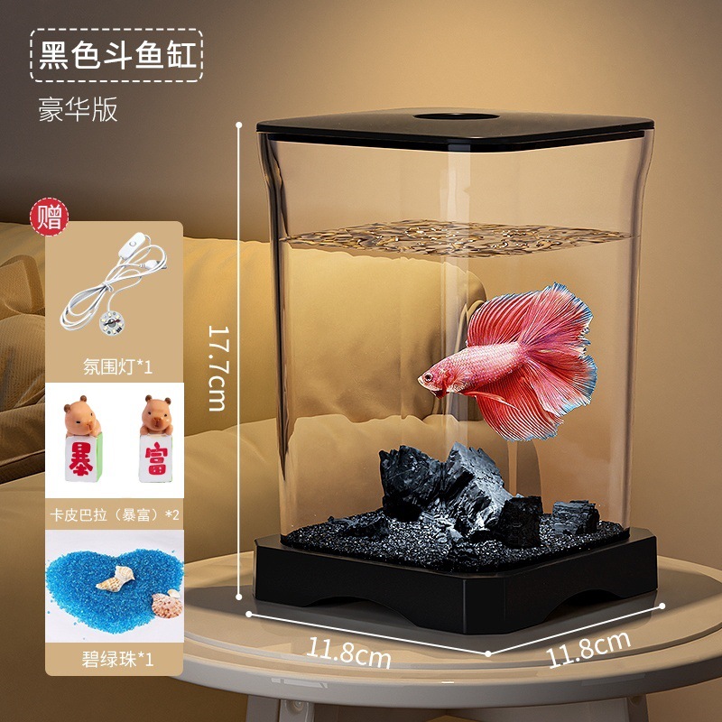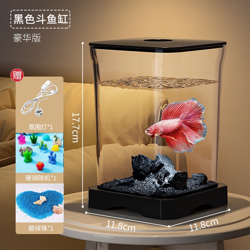 창조적 인 betta 생태 물고기 문화 탱크 작은 온라인 유명 인사 조경 데스크톱 보기 밤 빛 장식 유리 탱크