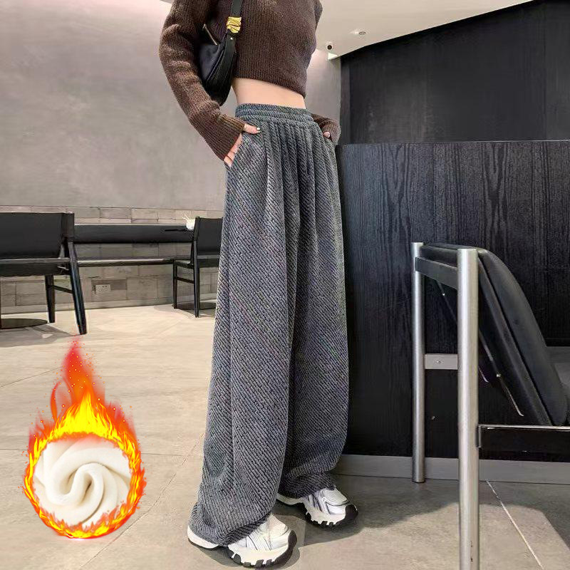 2024 가을과 겨울 벨벳 스타일 작은 향수 스타일 게으른 느슨한 디자인 센스 바지 가을과 겨울 넓은 다리 바지 두꺼운 드롭 감각 루즈