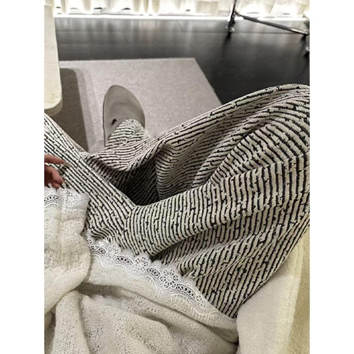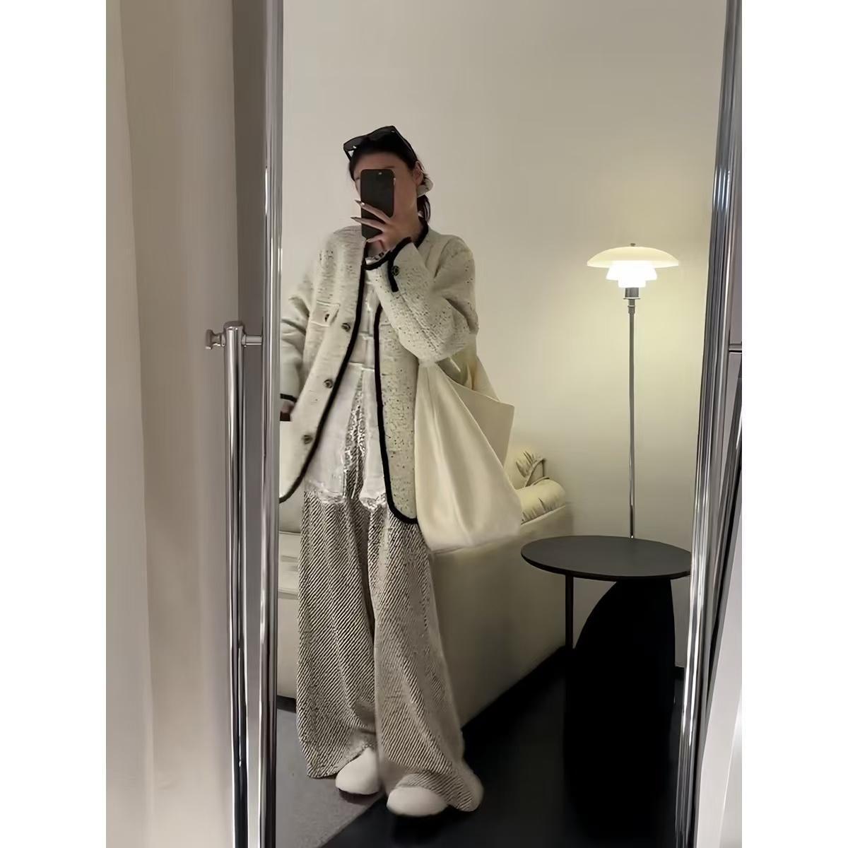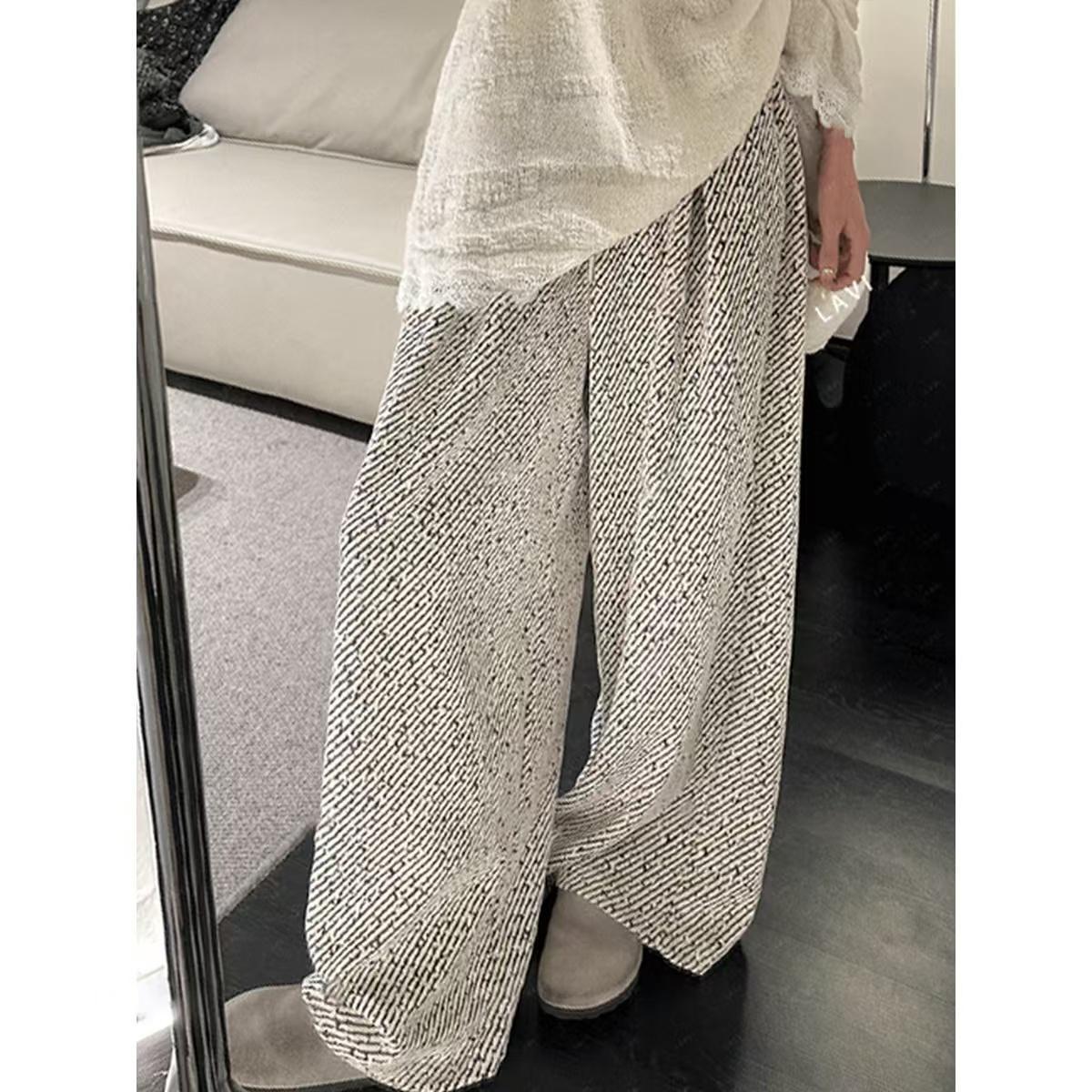 2024 가을과 겨울 벨벳 스타일 작은 향수 스타일 게으른 느슨한 디자인 센스 바지 가을과 겨울 넓은 다리 바지 두꺼운 드롭 감각 루즈스토어 가기