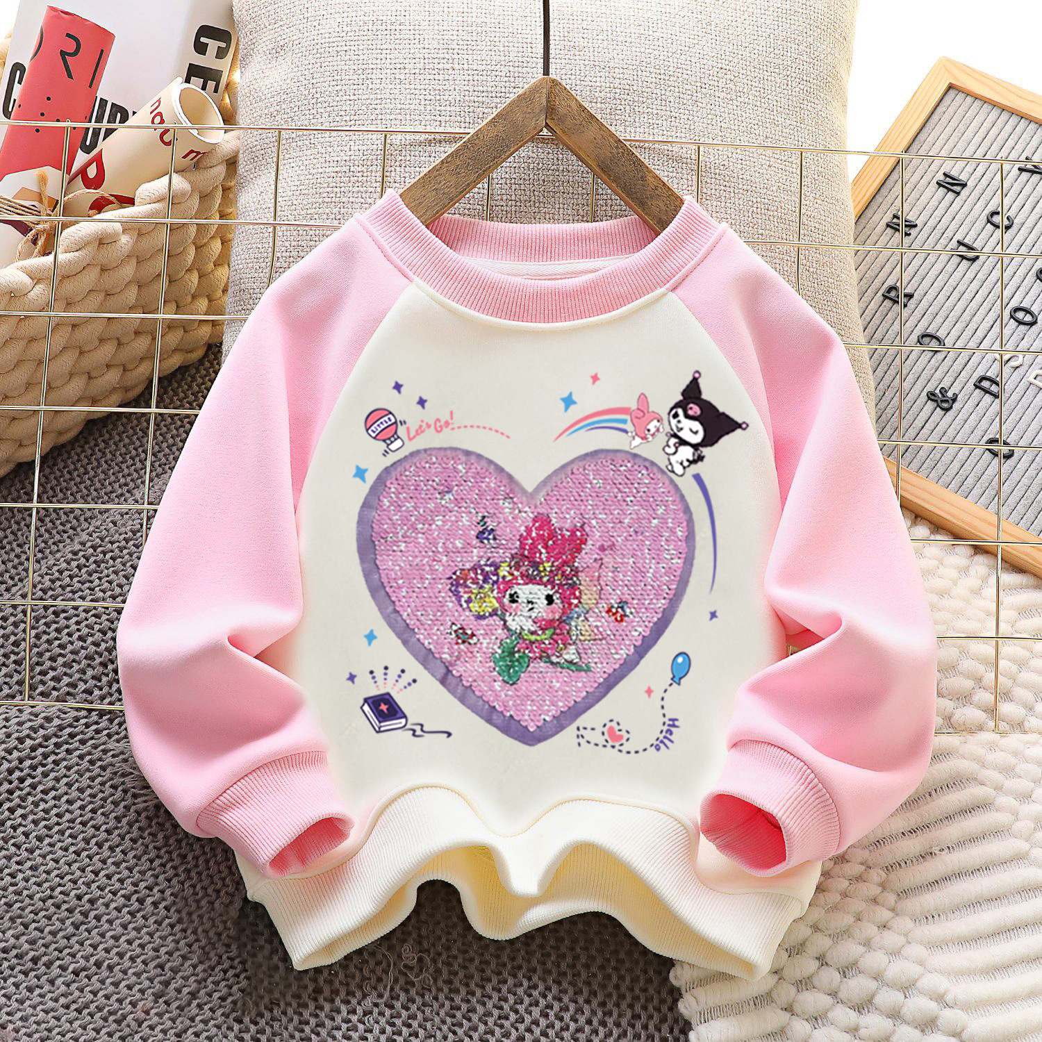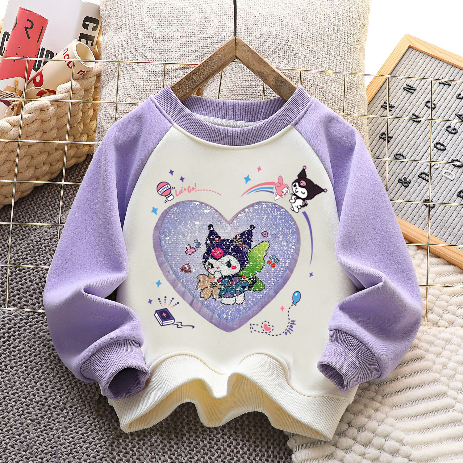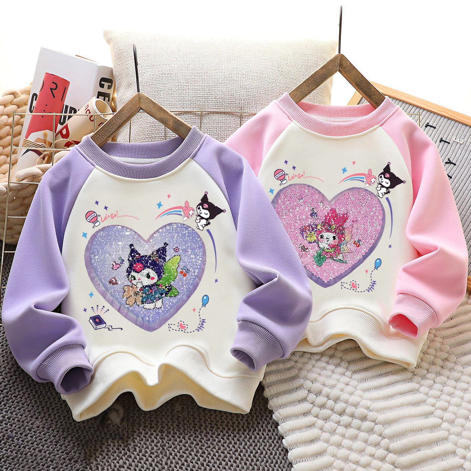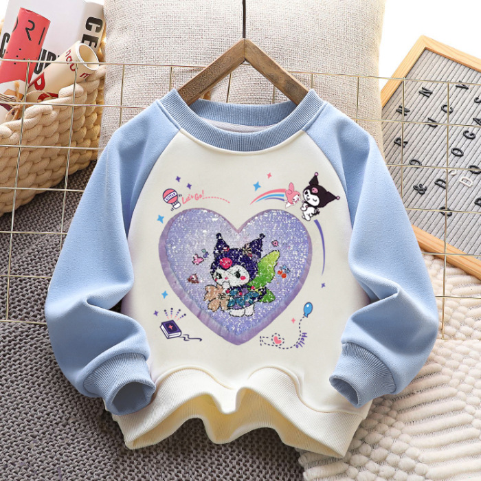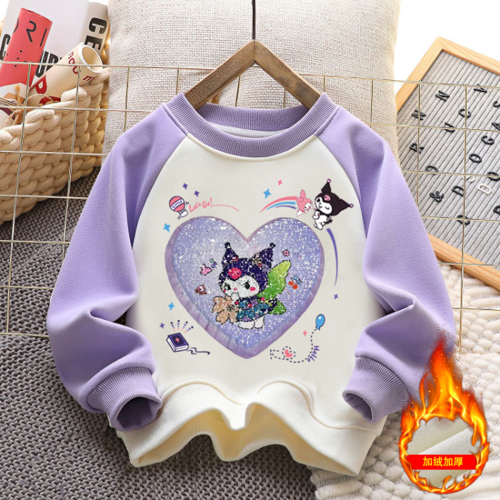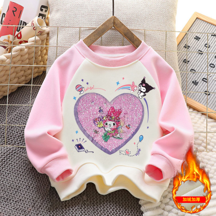 가을과 겨울 새 여아 기모 따뜻한 어깨 둥근 목 탑 캐주얼 한국 스타일 만화 색상 변경 속옷 트렌디스토어 가기